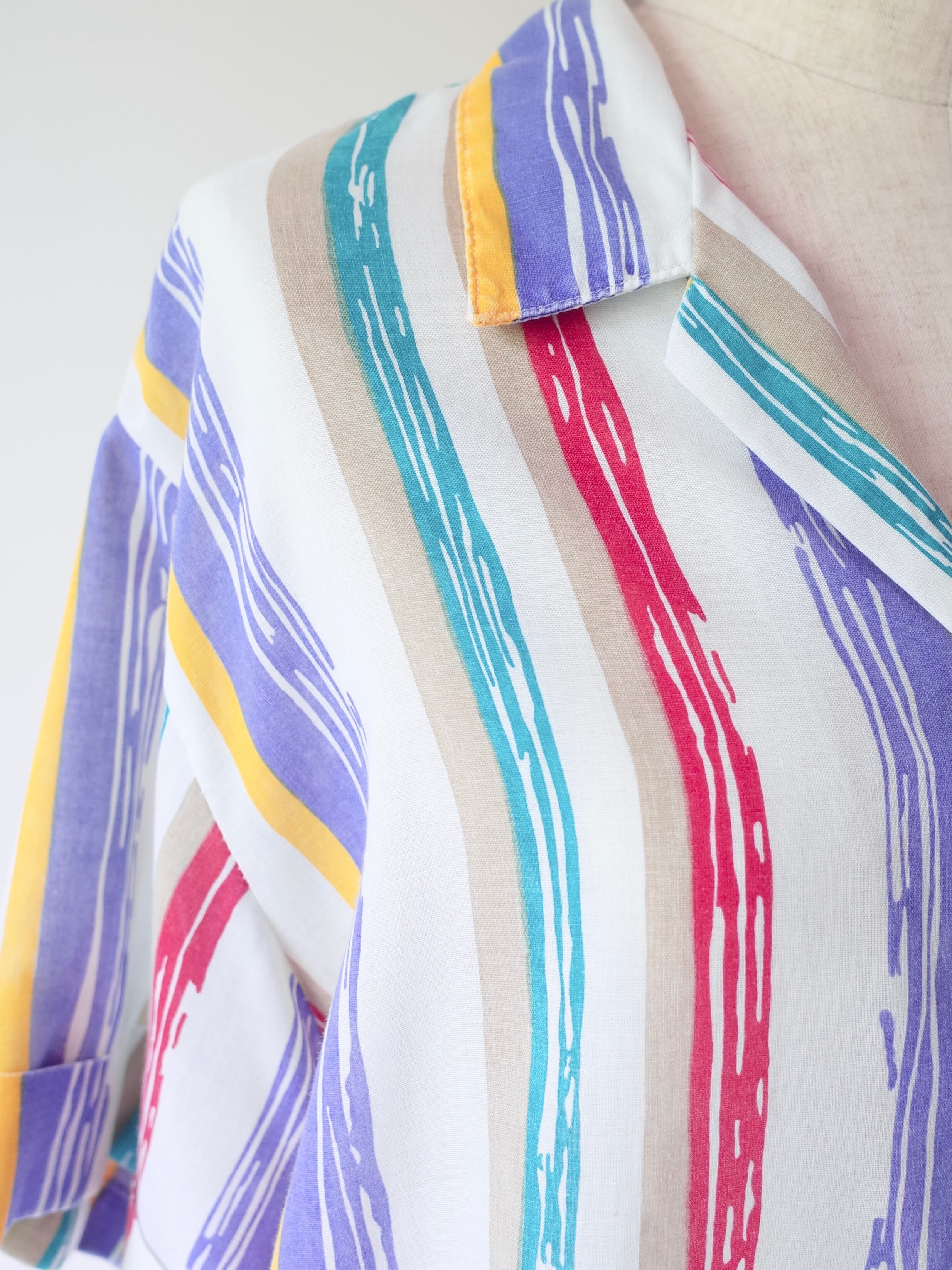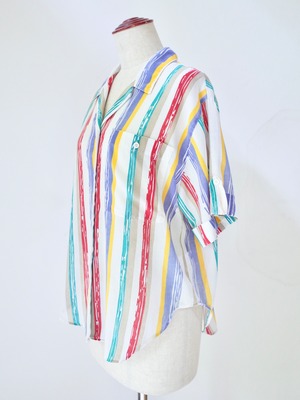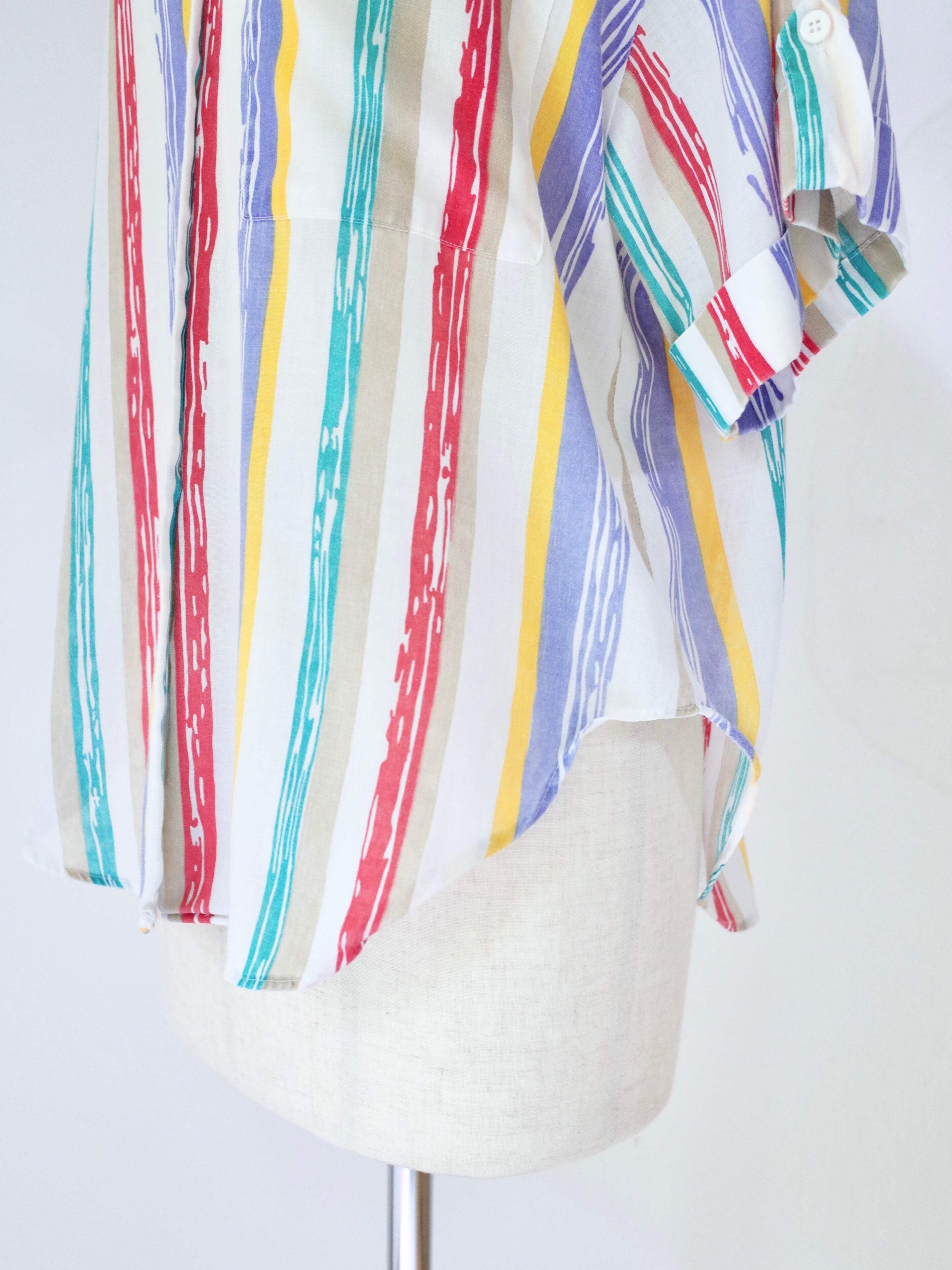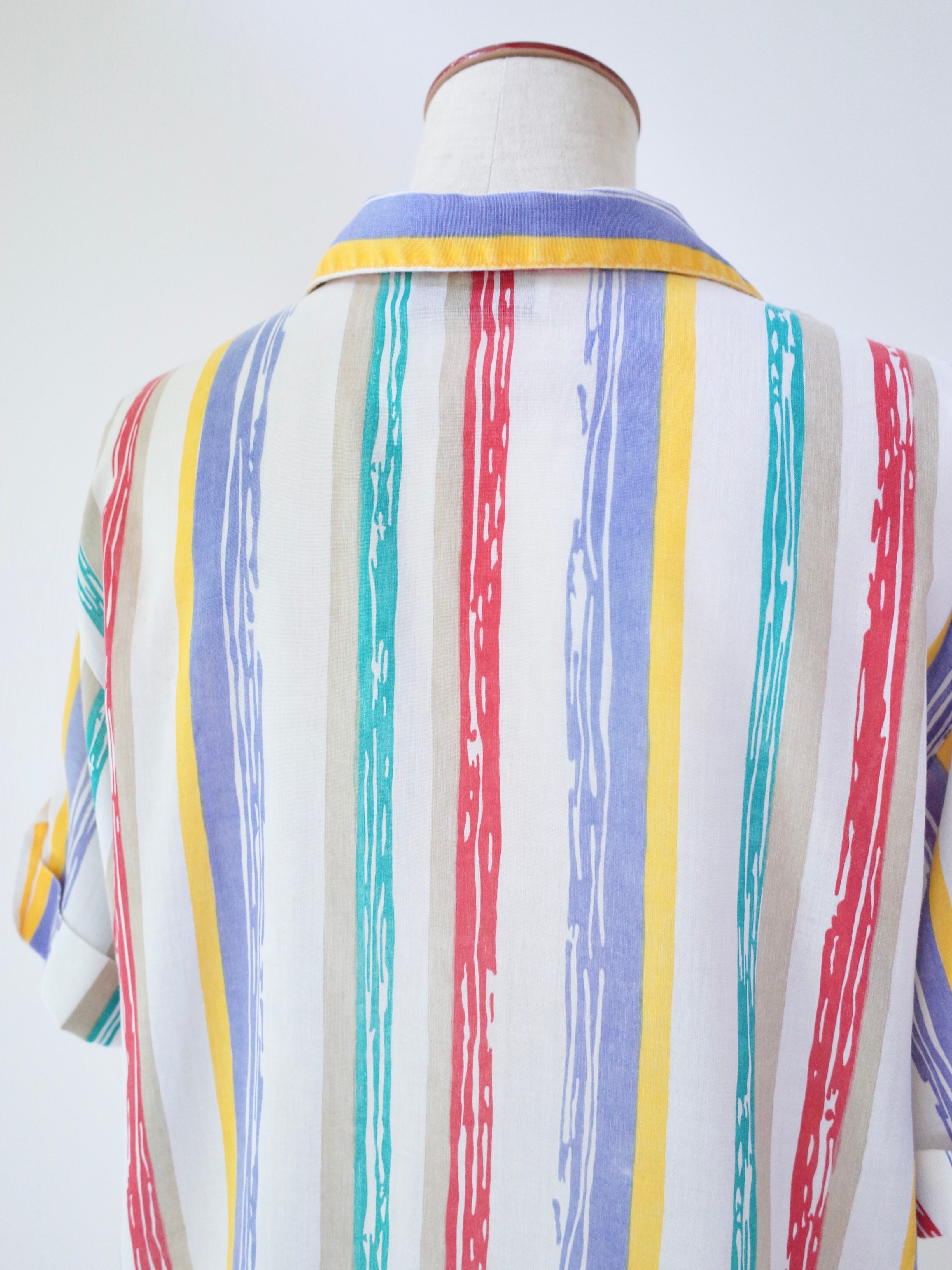 80年代アメリカ製の独特なストライプ柄が可愛い半袖シャツ。薄手の生地感で、涼しく着用出来る一枚です。