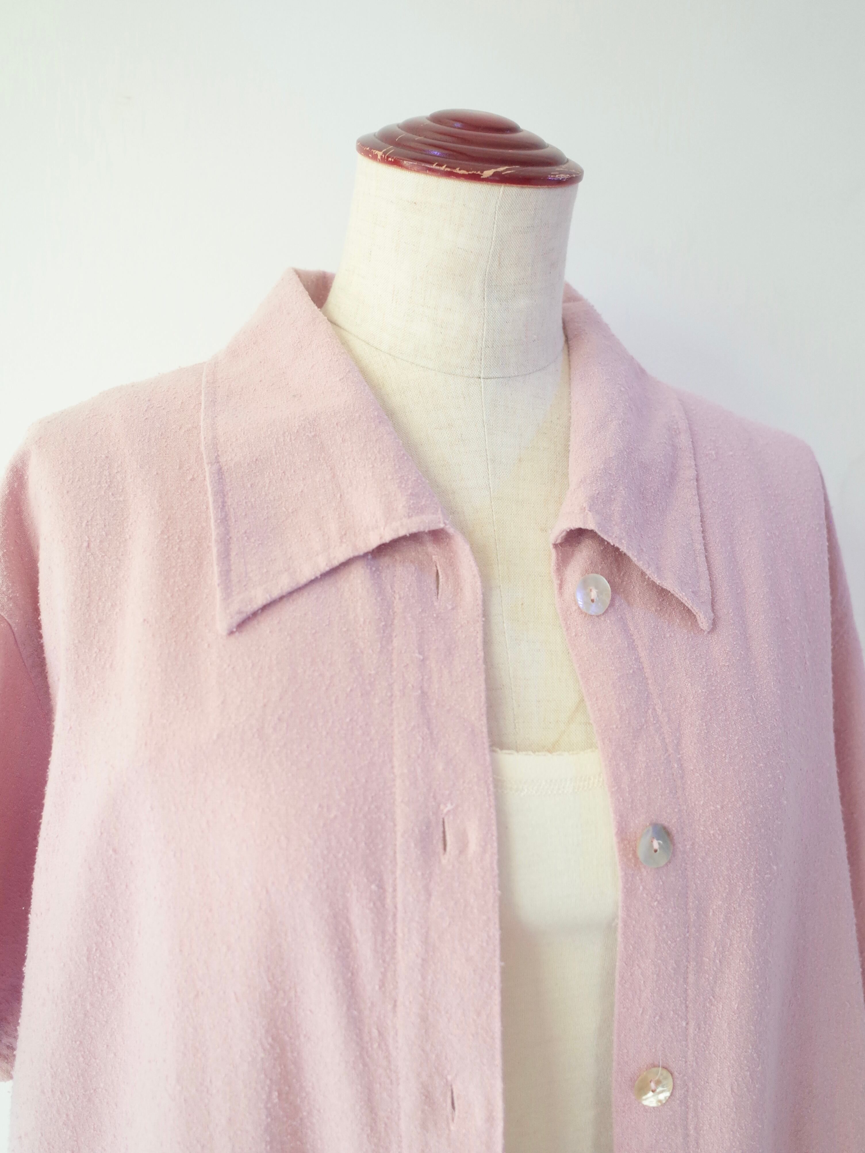 ・光沢のある薄手のシルクではなく、リネンのような凹凸のあるローシルクの素材感