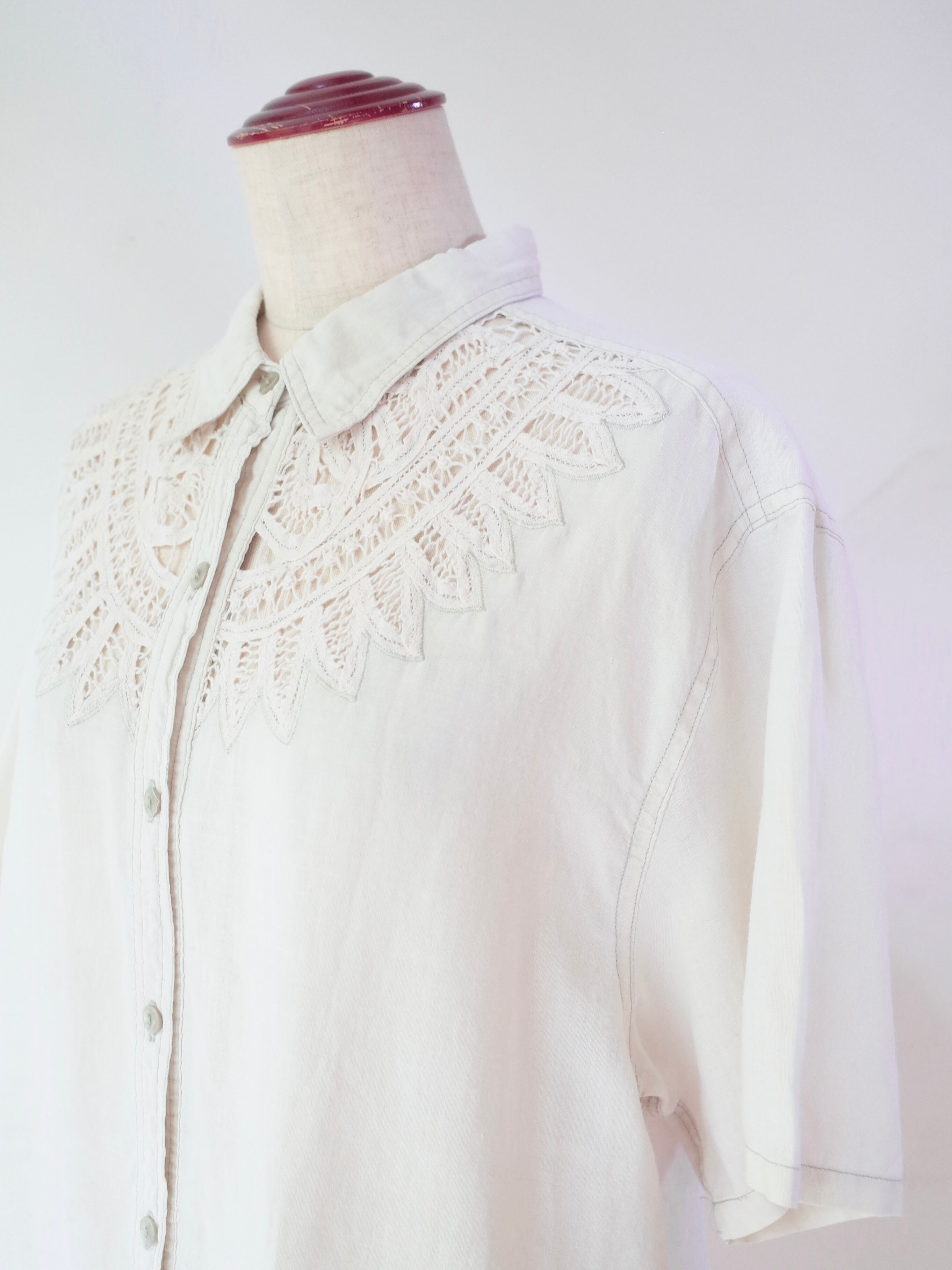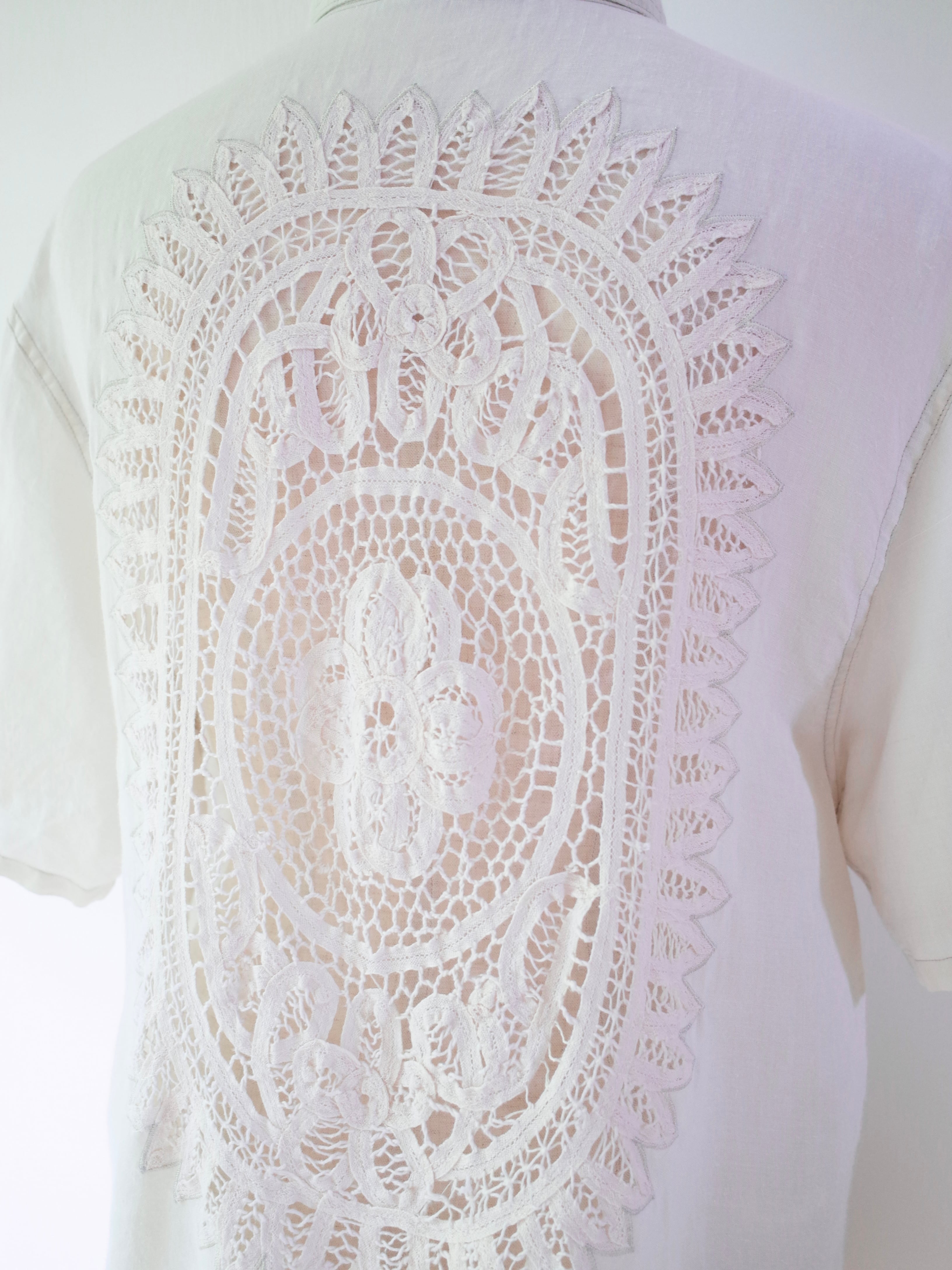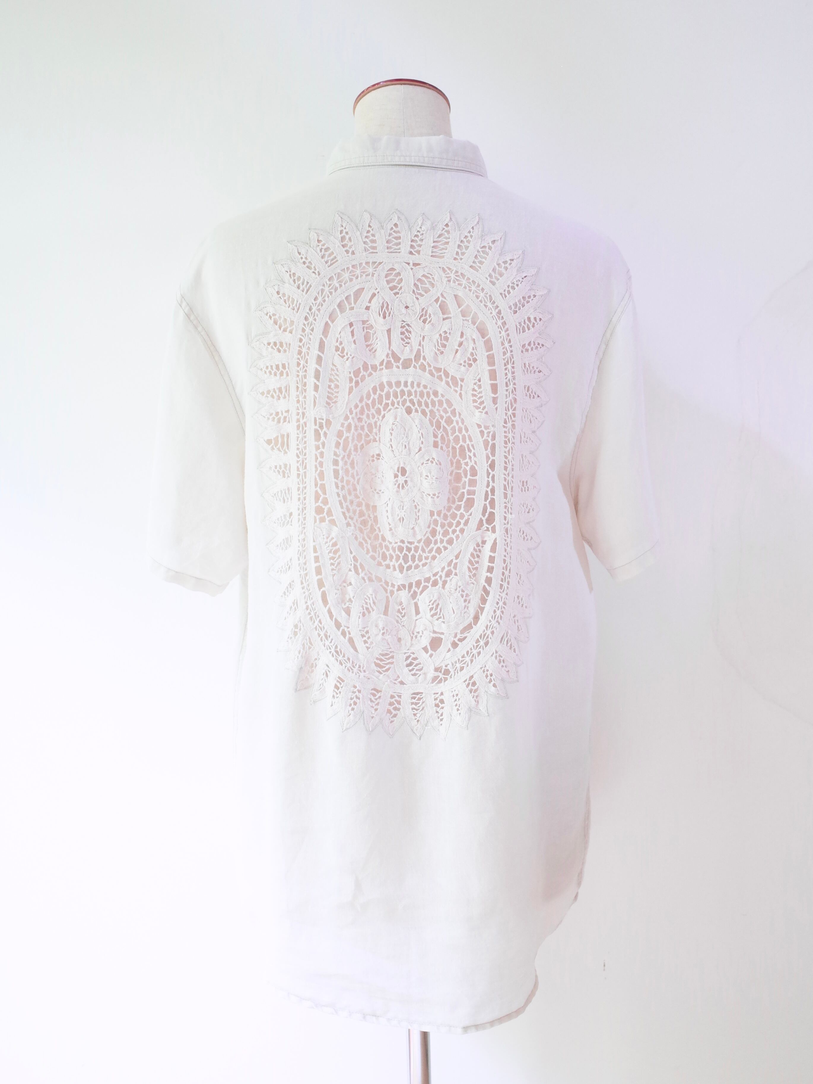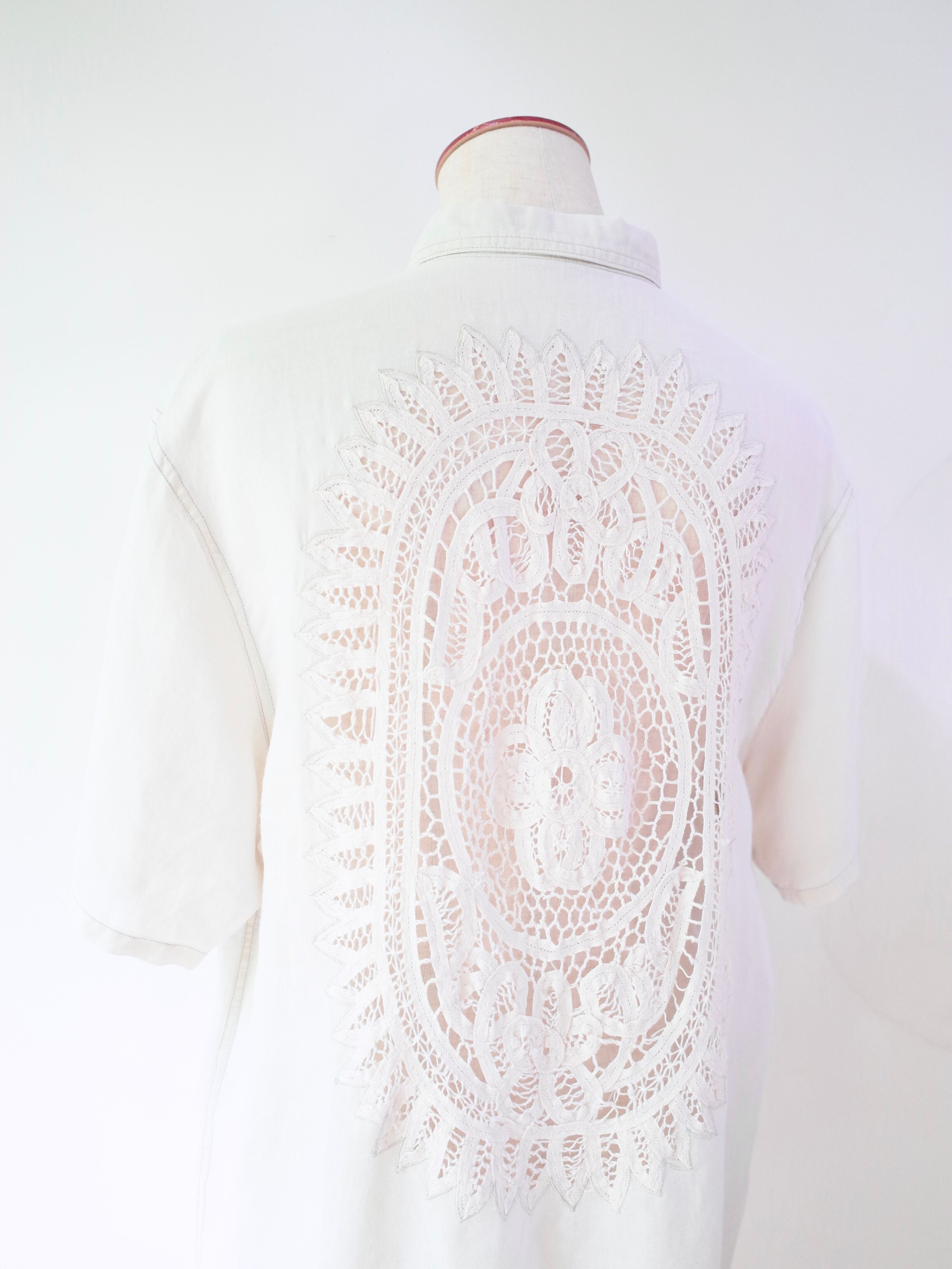・デコルテとバックの透かし編みの刺繍が涼しげなデザイン