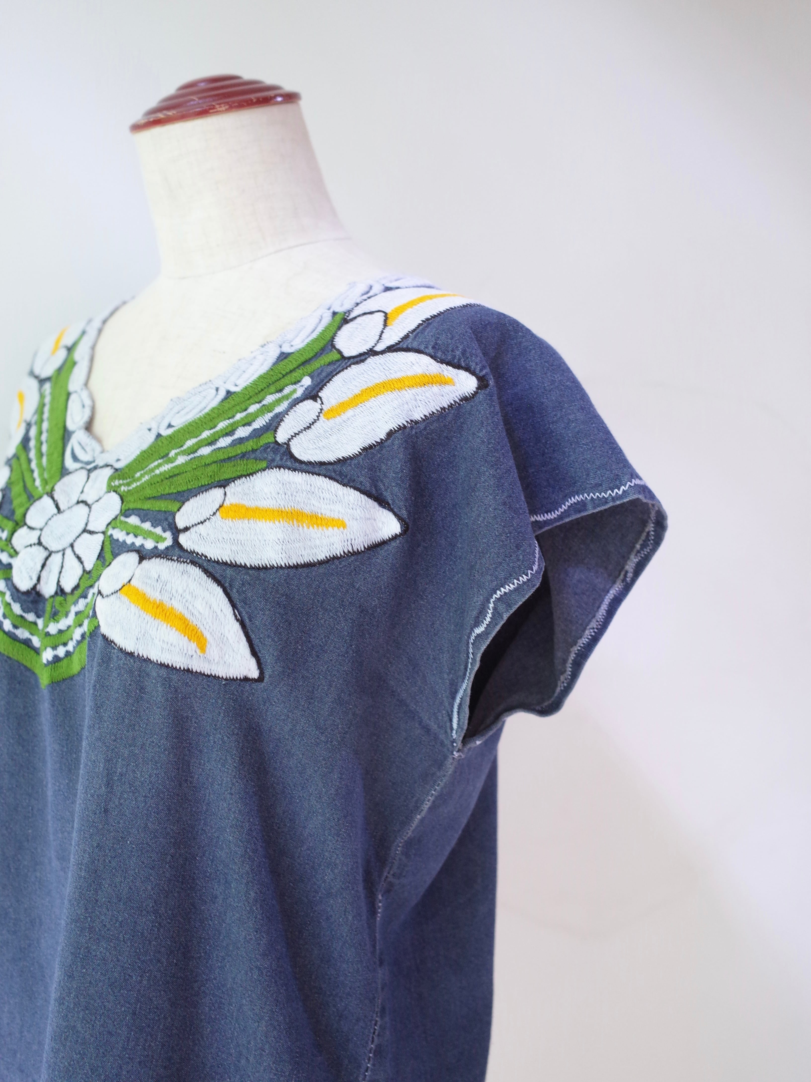 ・スパティフィラムの刺繍が施されたメキシコのウイピル ブラウス