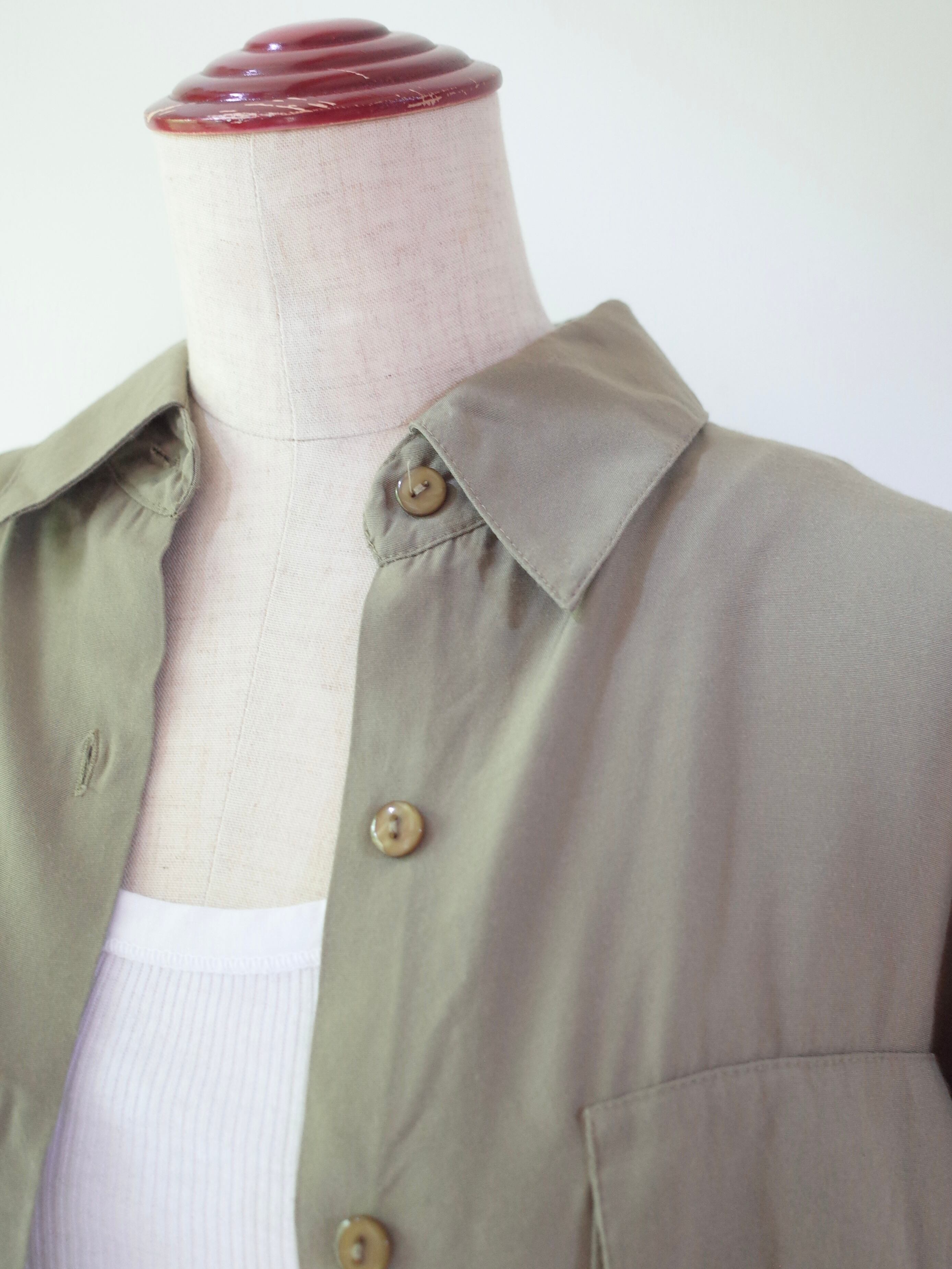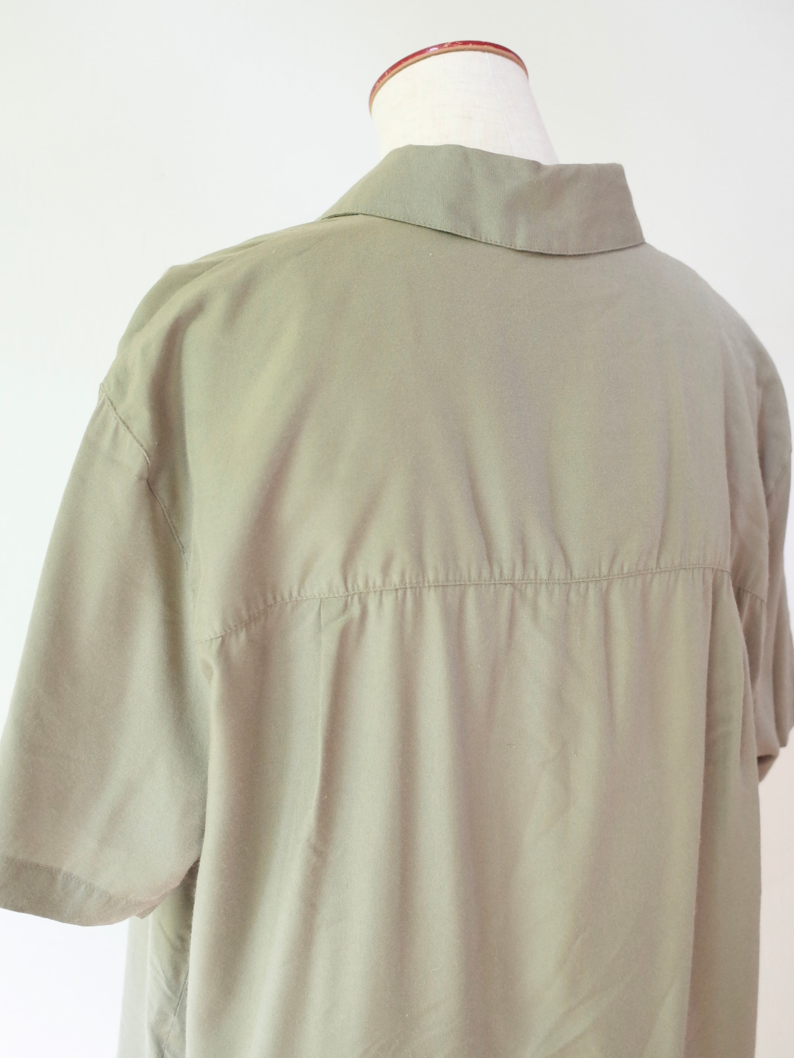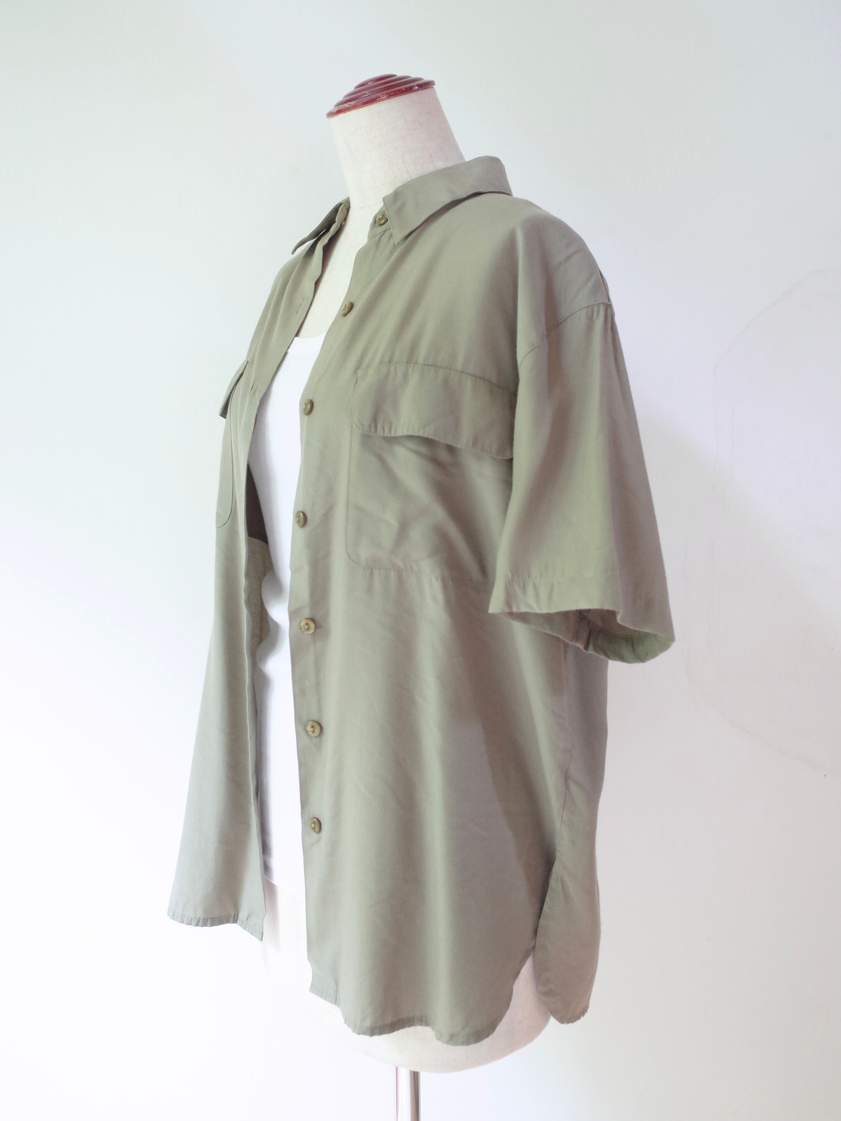 ・優しいオリーブカラーの色合いと程よいルーズ感のバランスが絶妙な半袖シャツ
