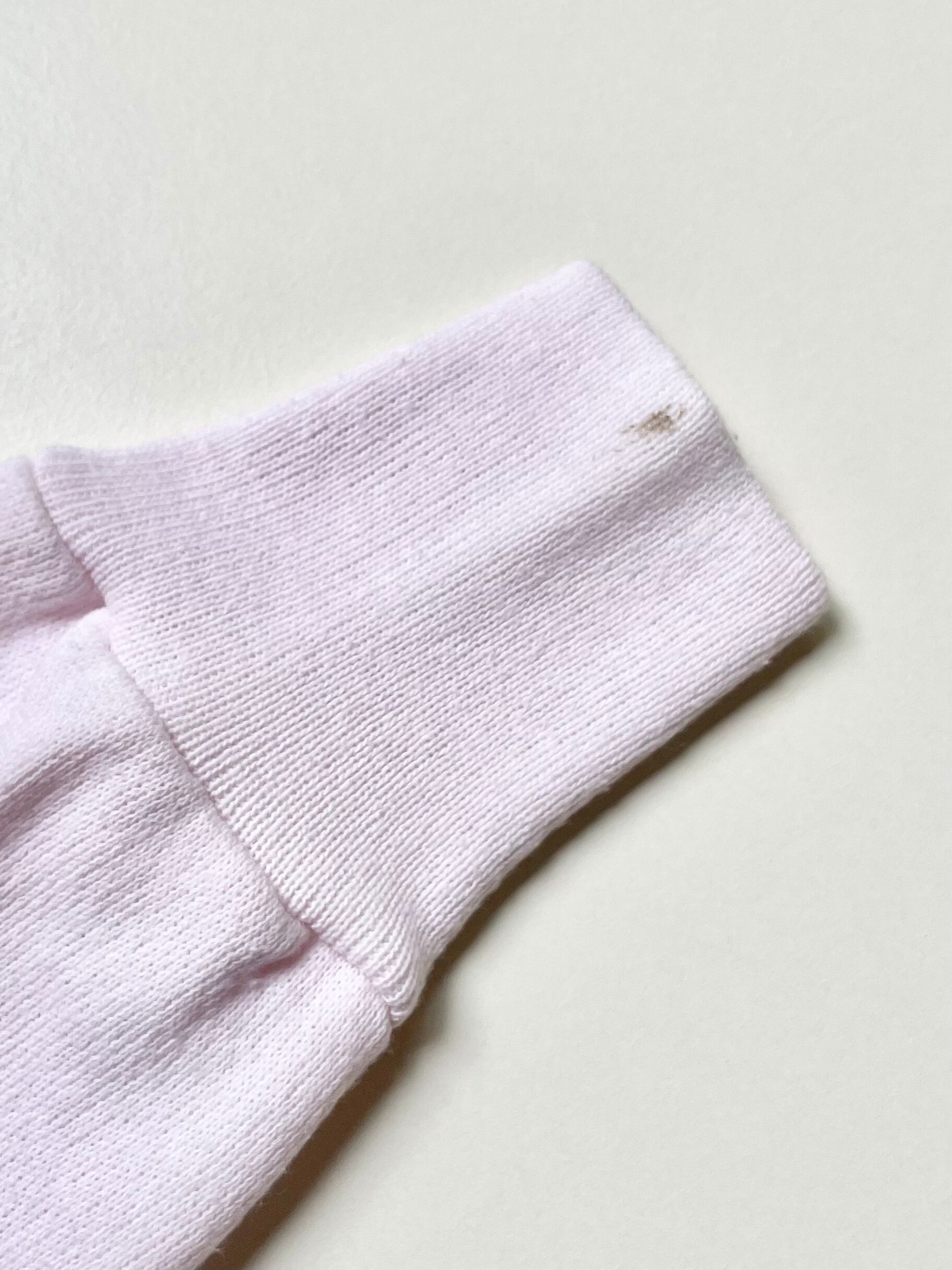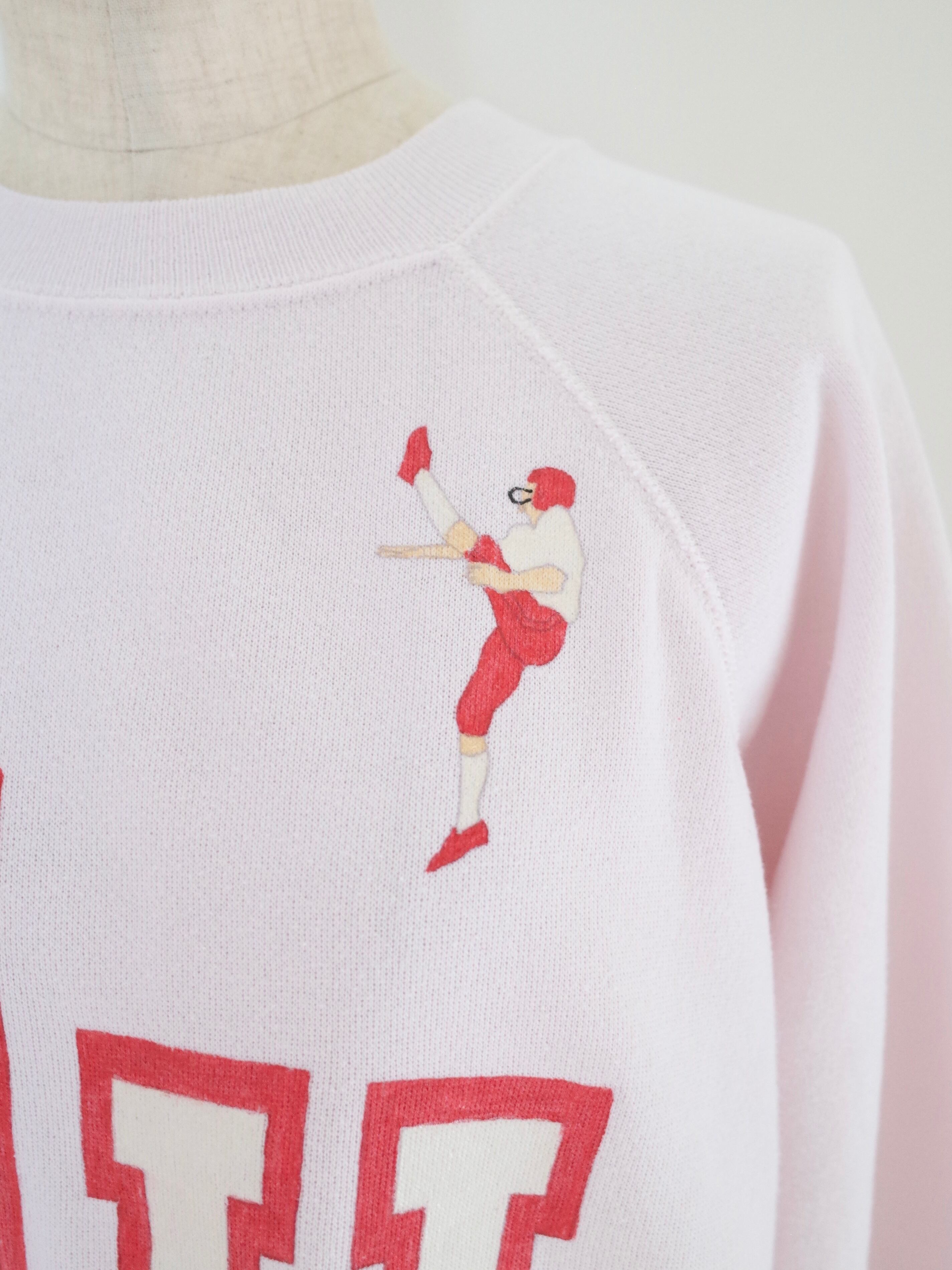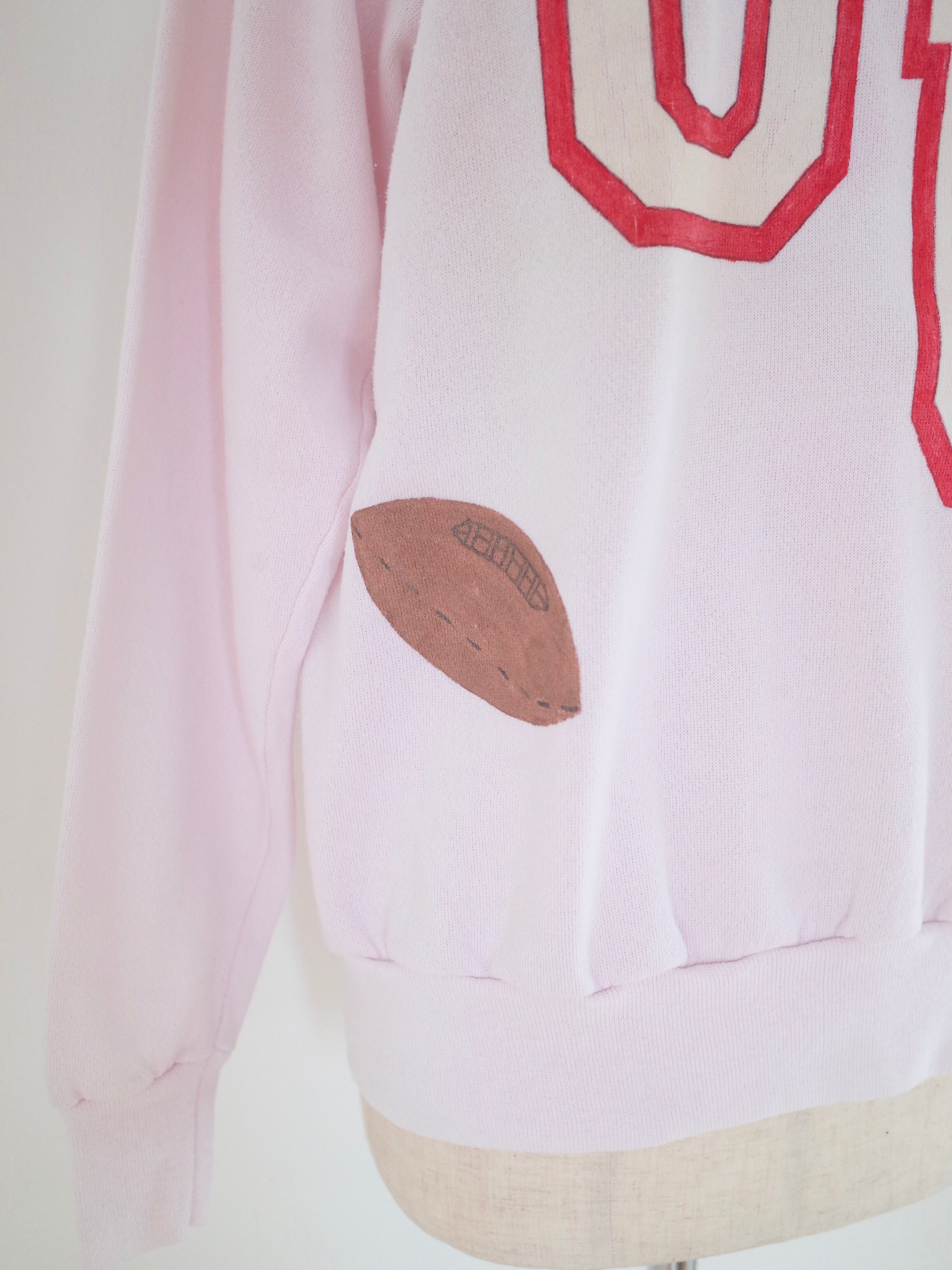 ・可愛らしいライトピンクのボディカラーに手描きで描かれたフットボールと大学の略称と思われるアルファベットが愛らしいプリント