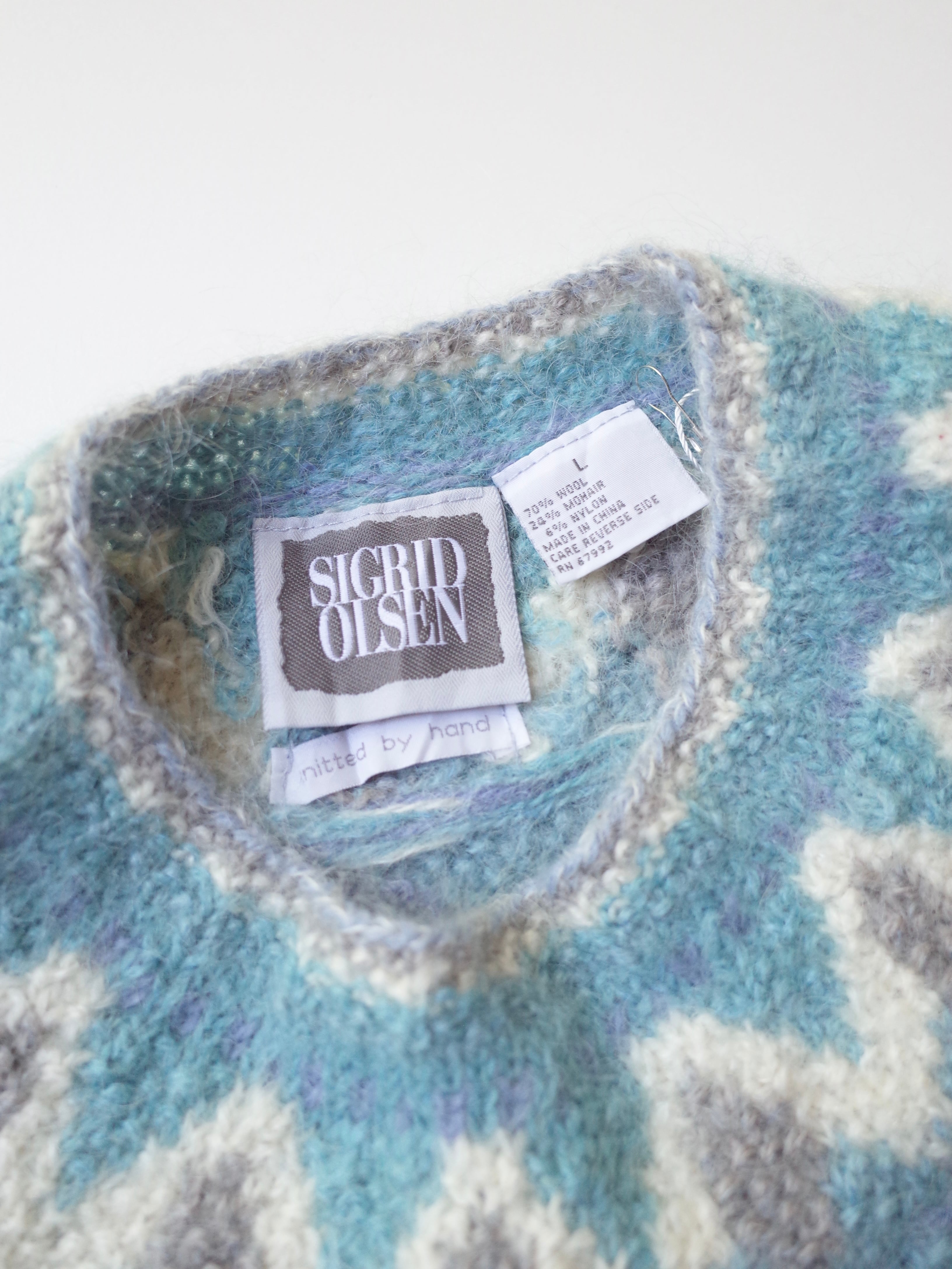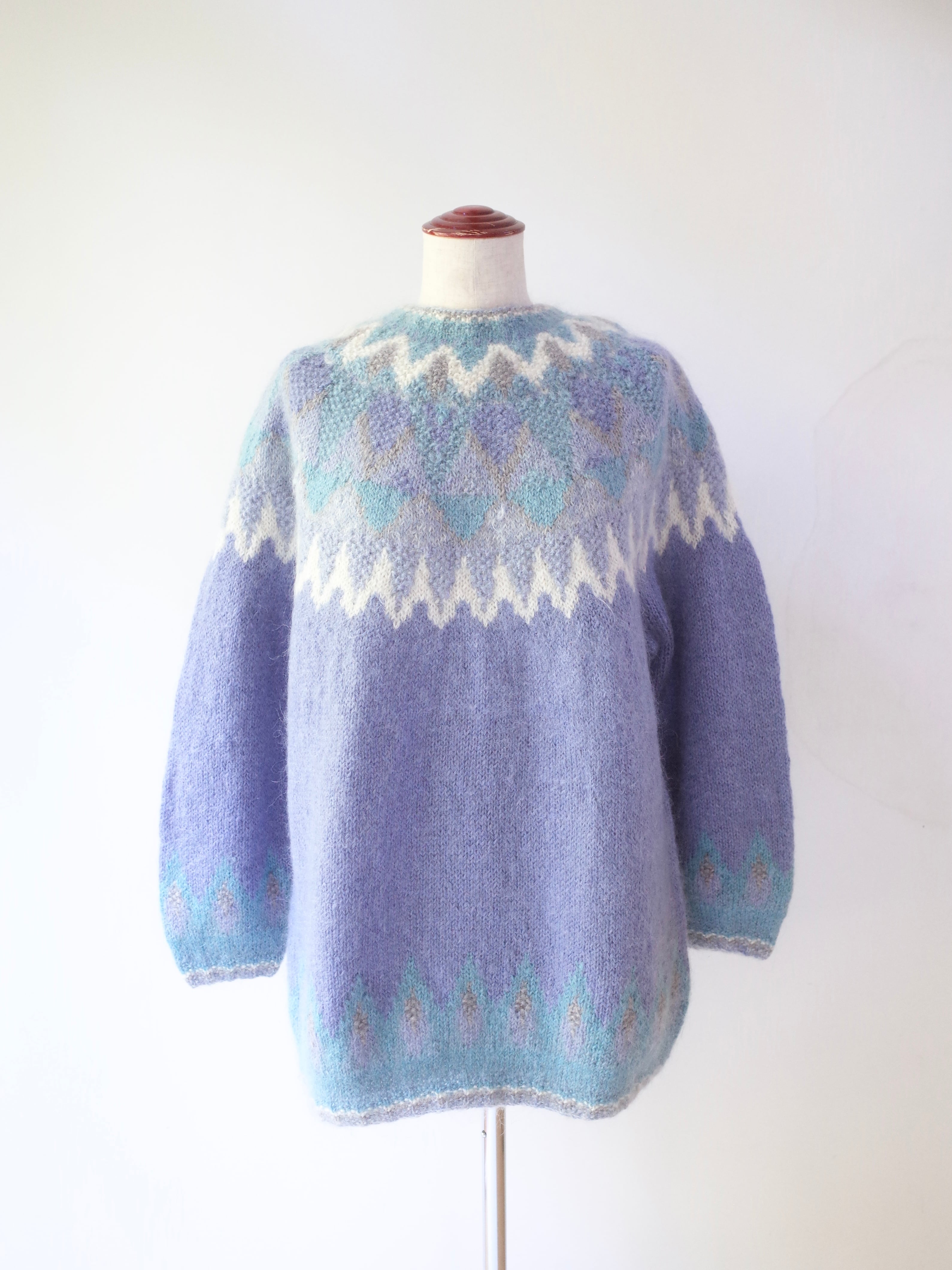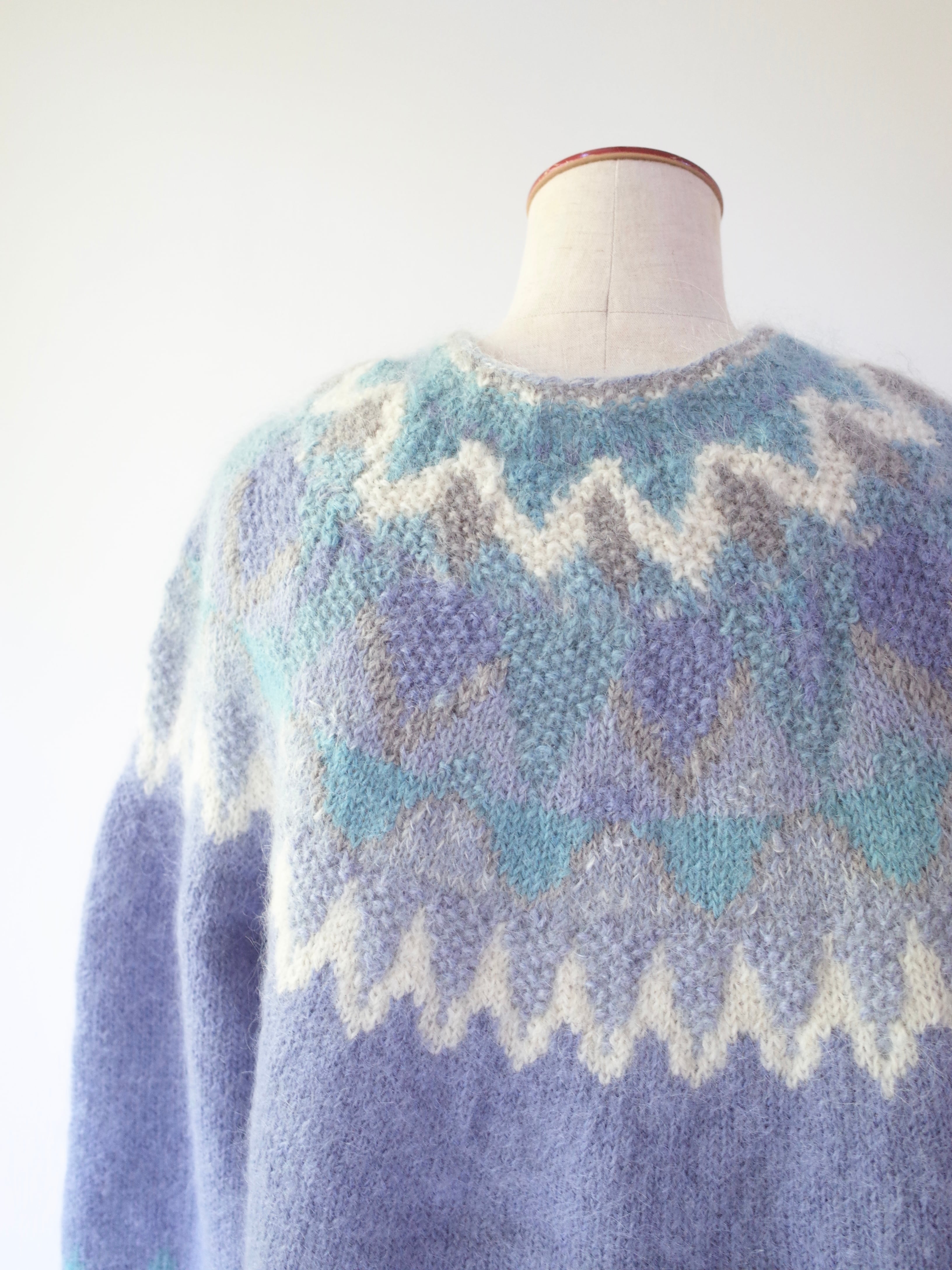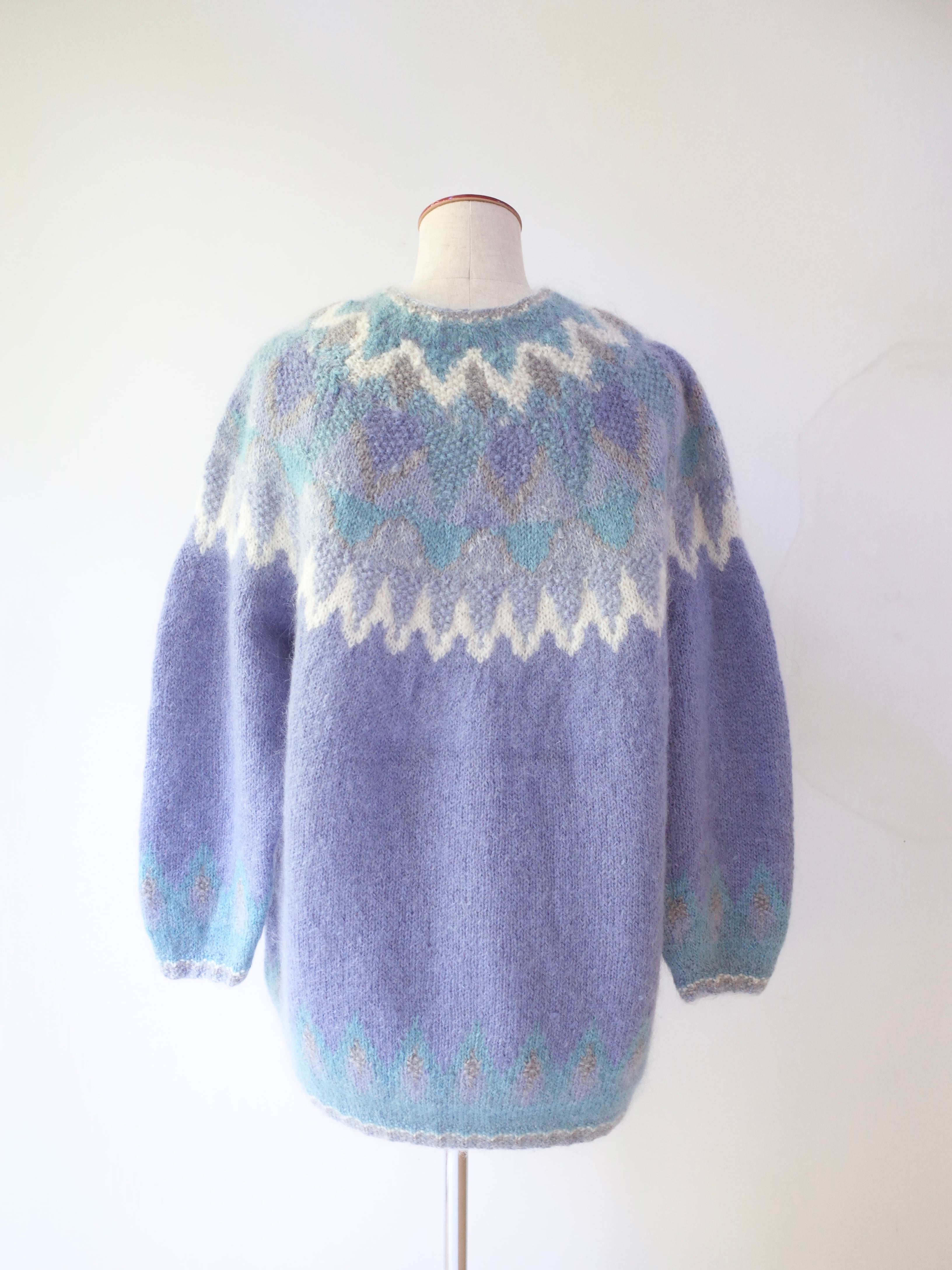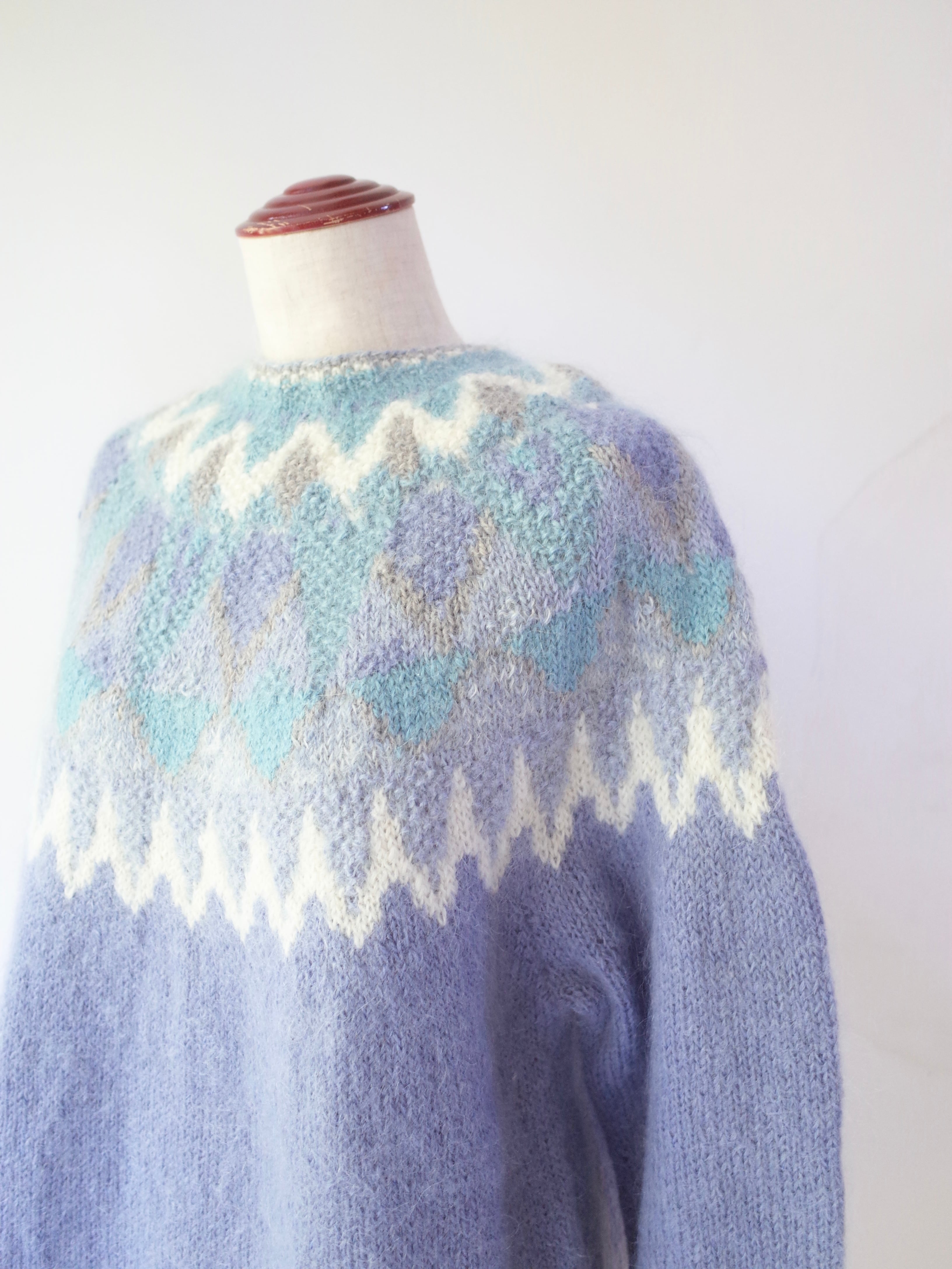 ・フェアアイル柄のモヘア混ハンドニットセーター
