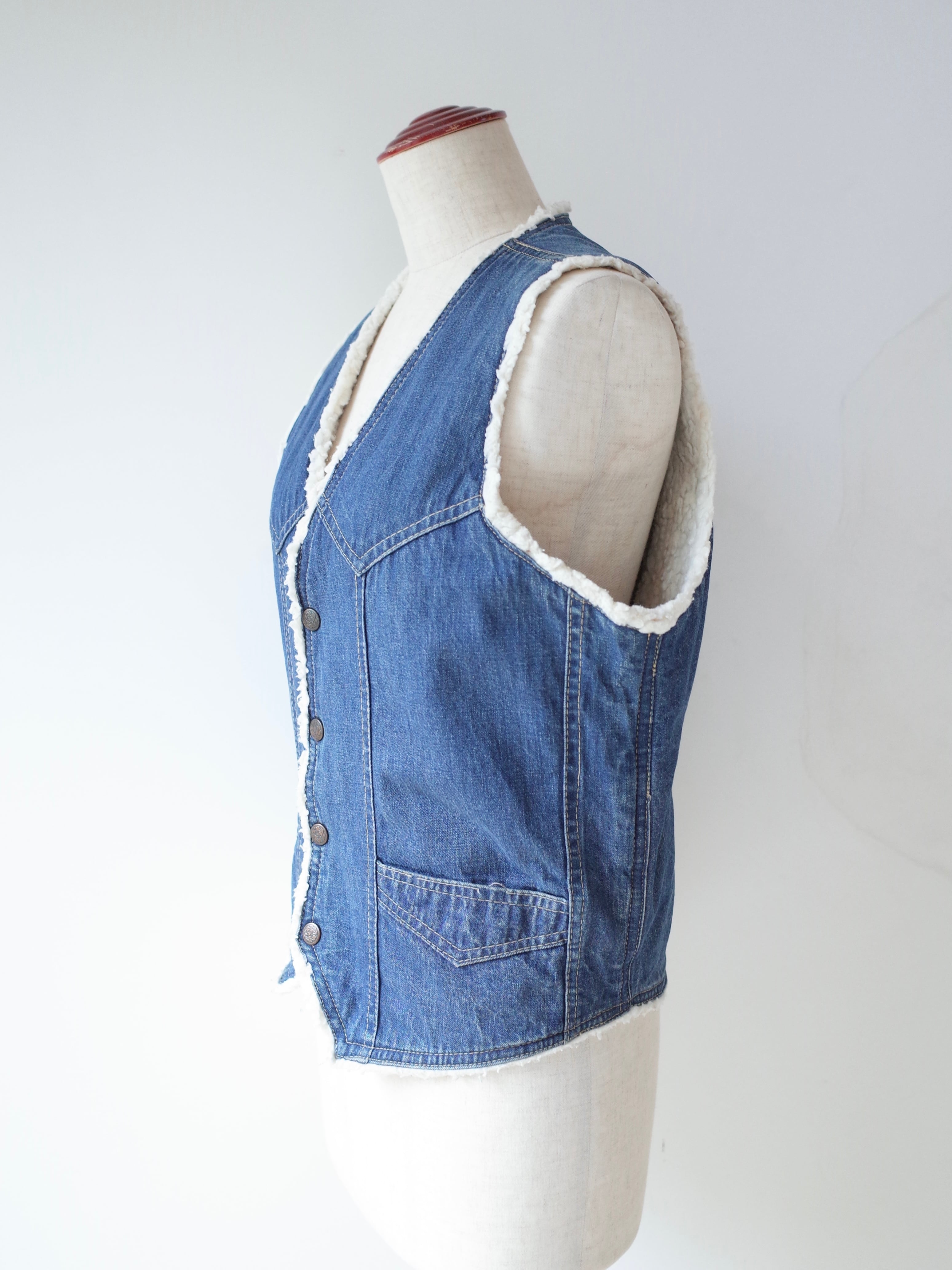 Reversible denim boa vest