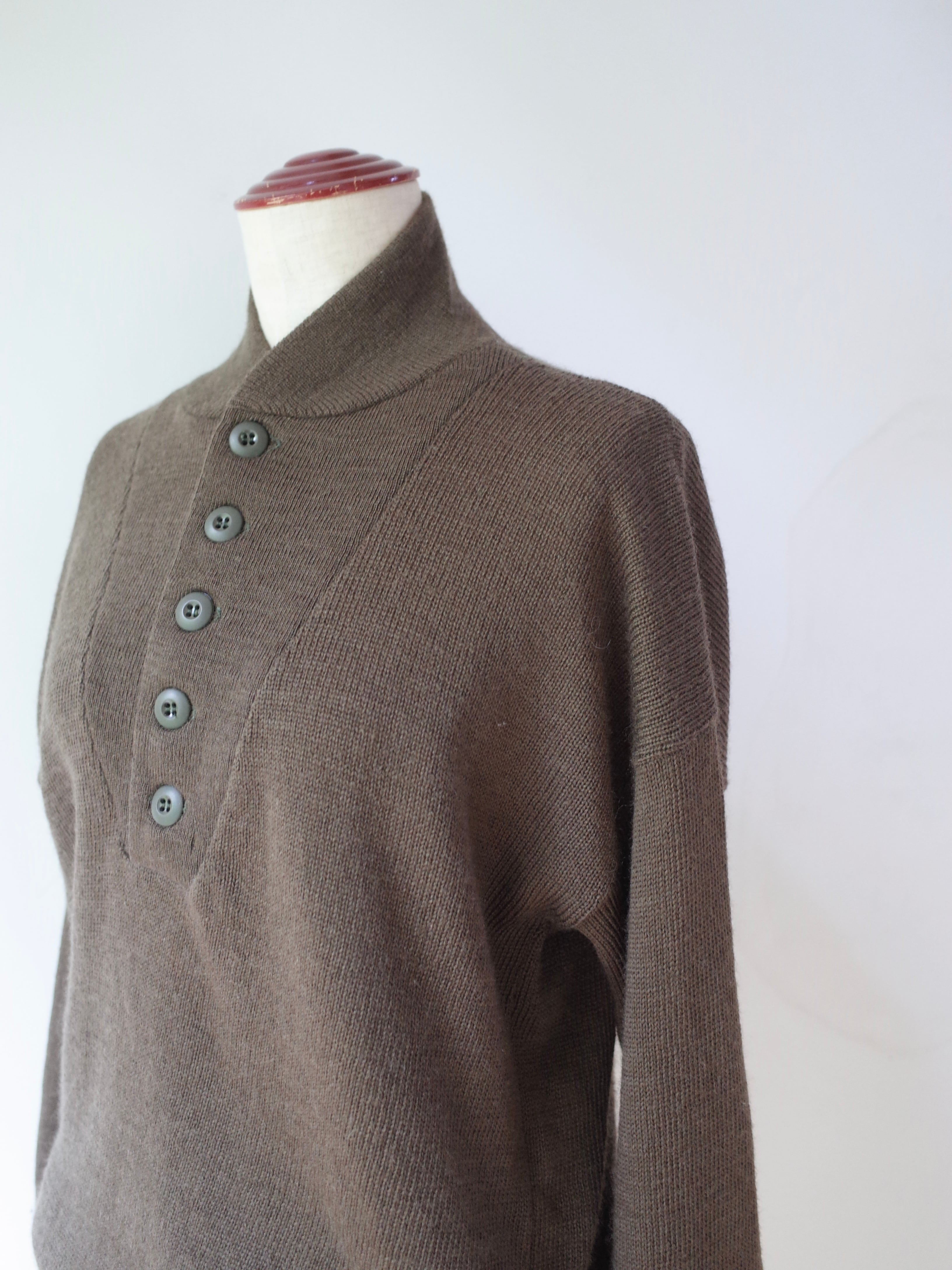 ・5ボタンのヘンリーネック、袖口の長めのリブのディテールがGOOD