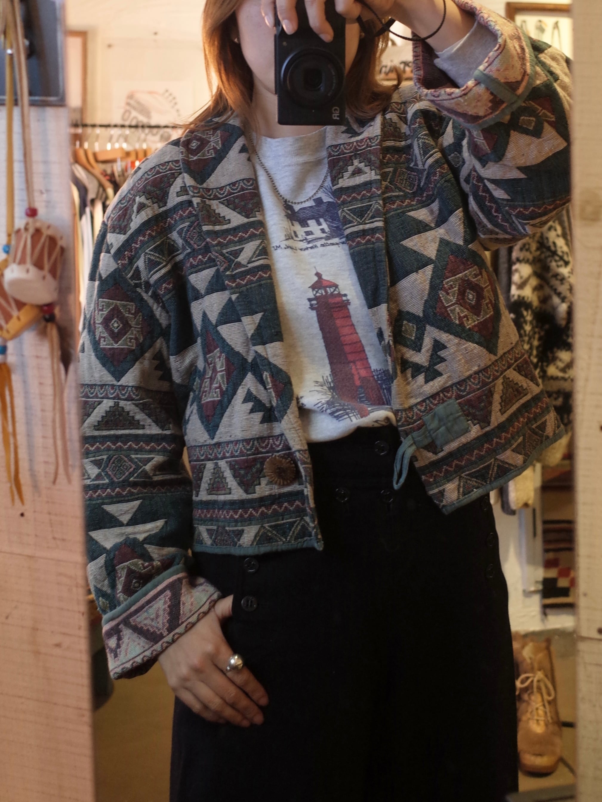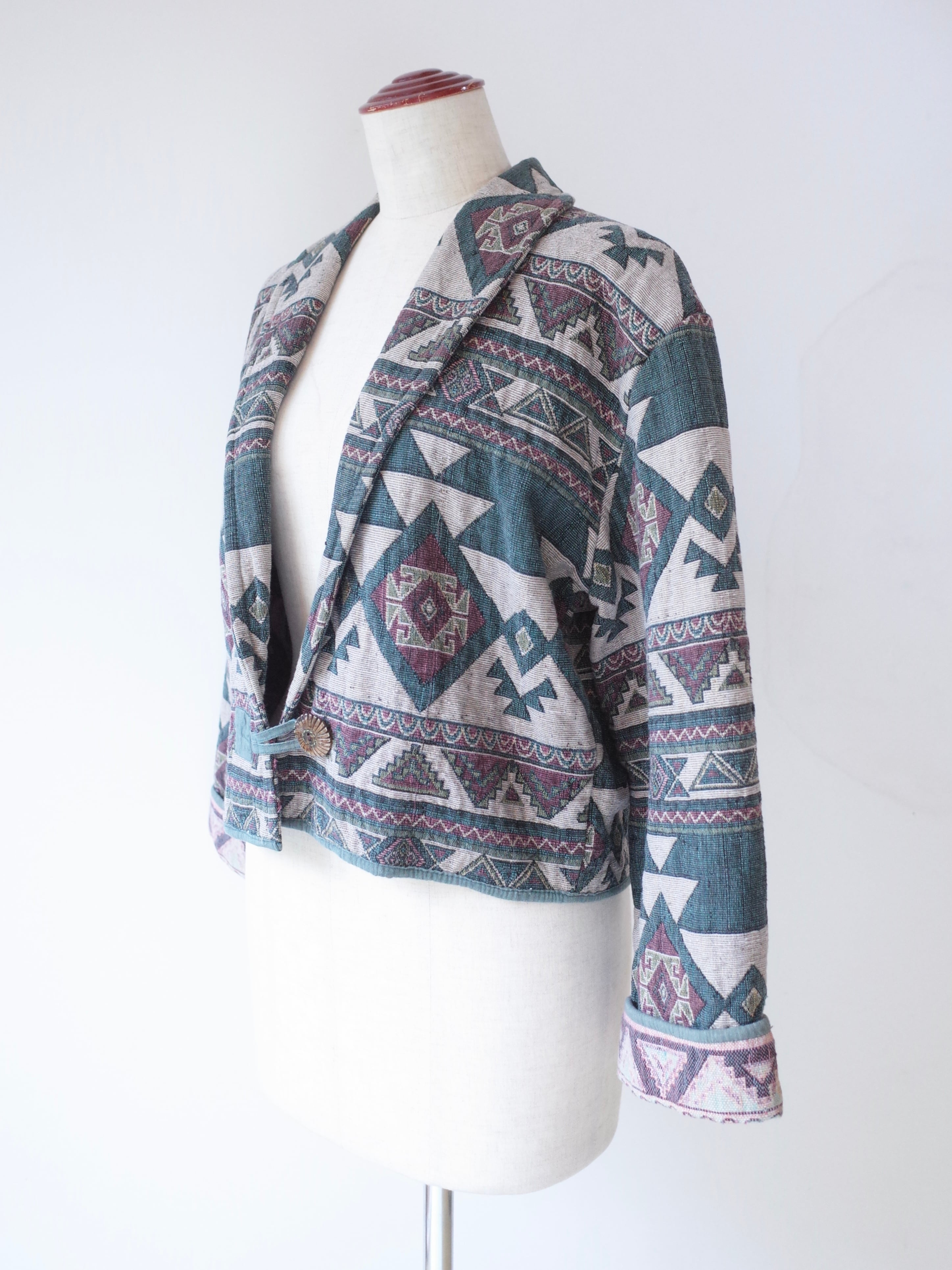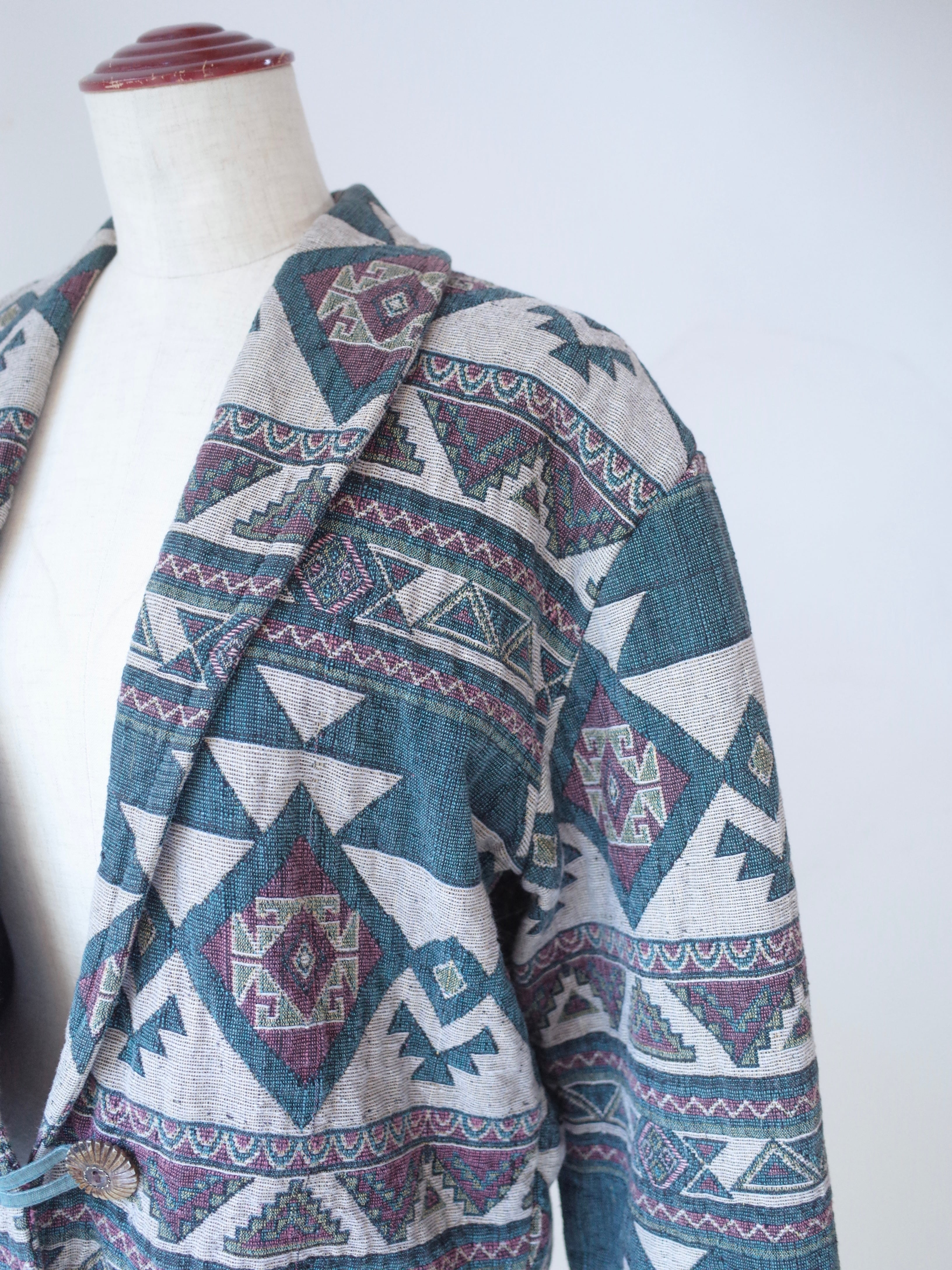 ・幾何学模様が印象的な、ネイティブ柄のジャケット