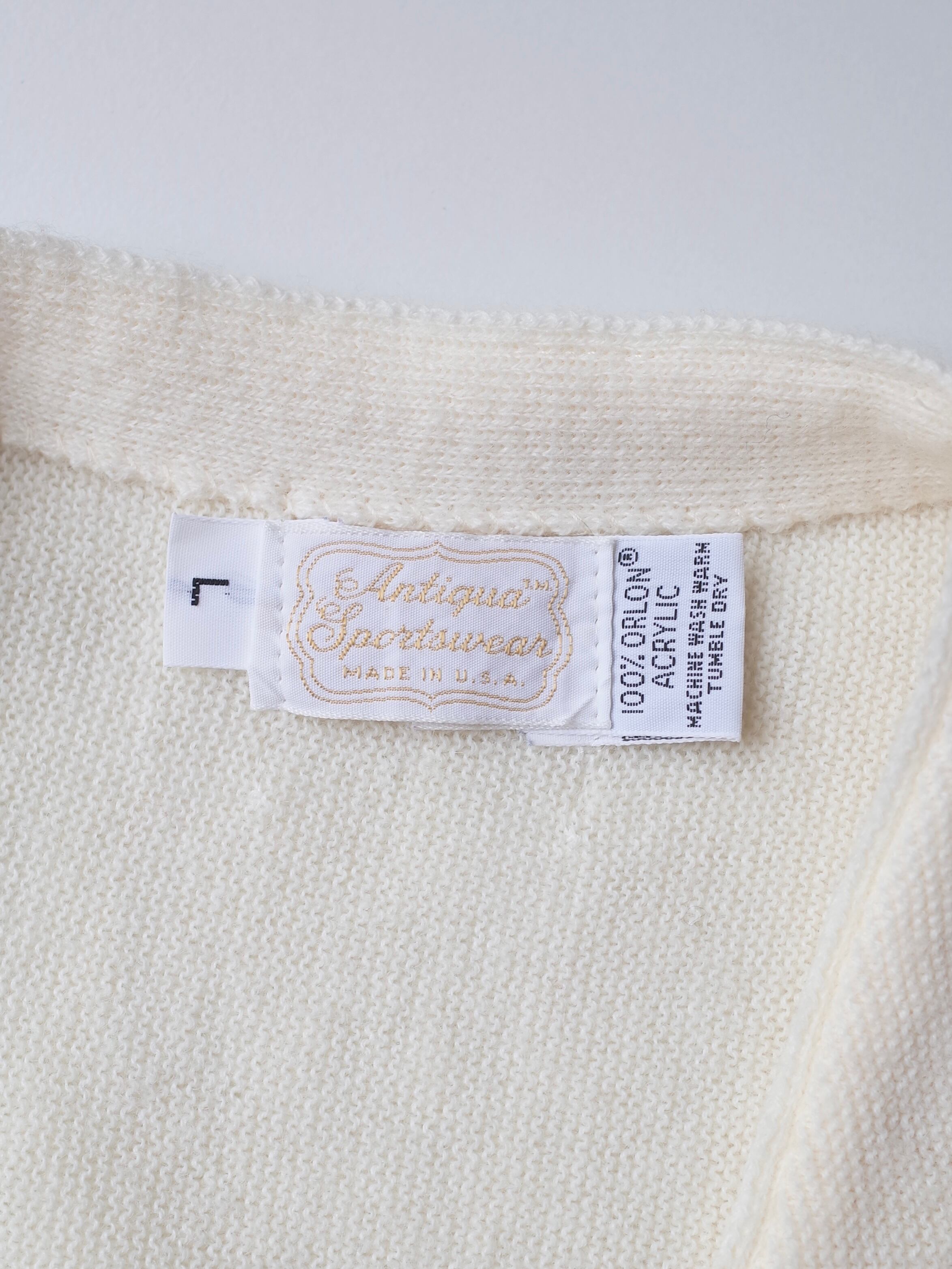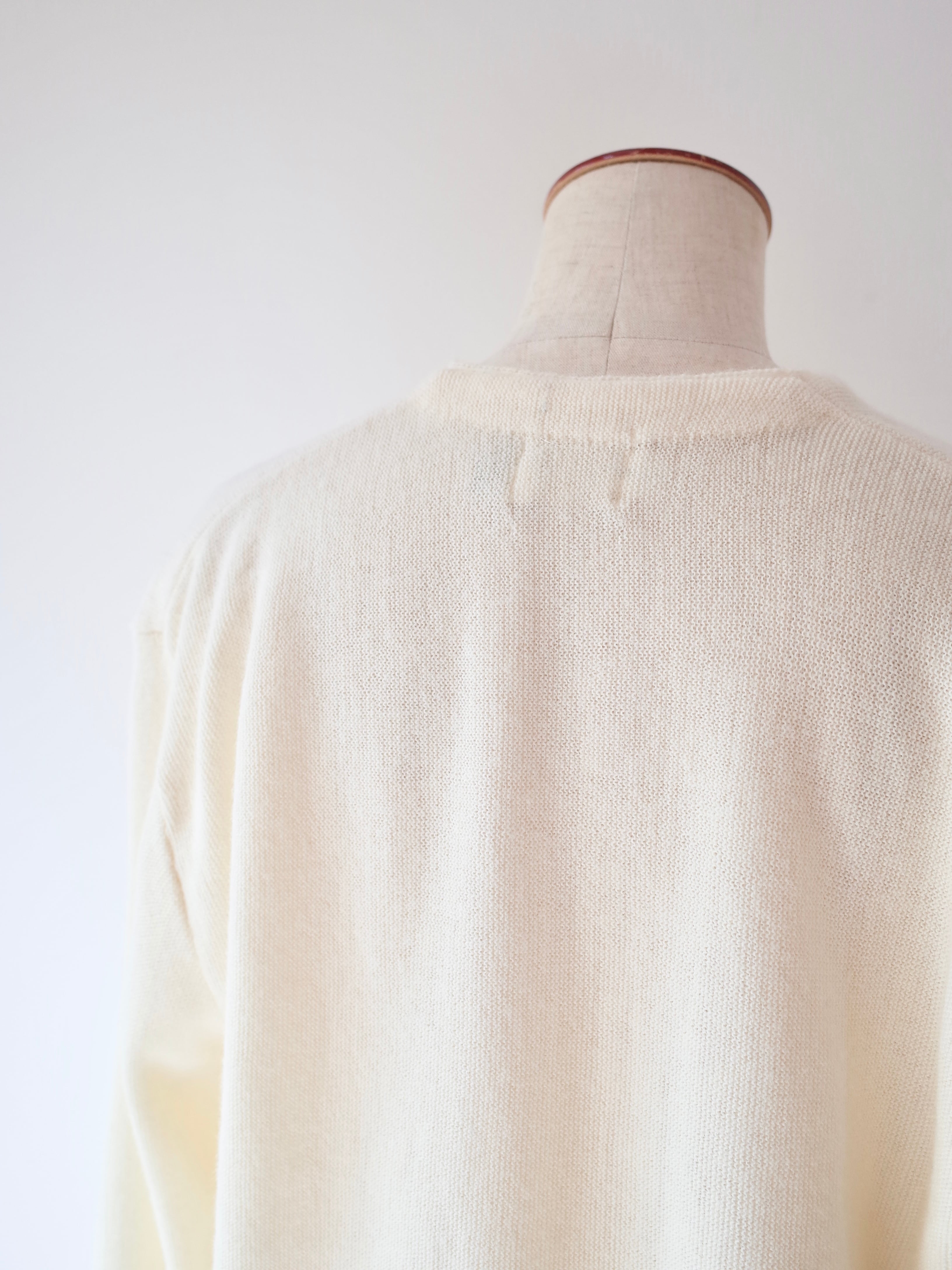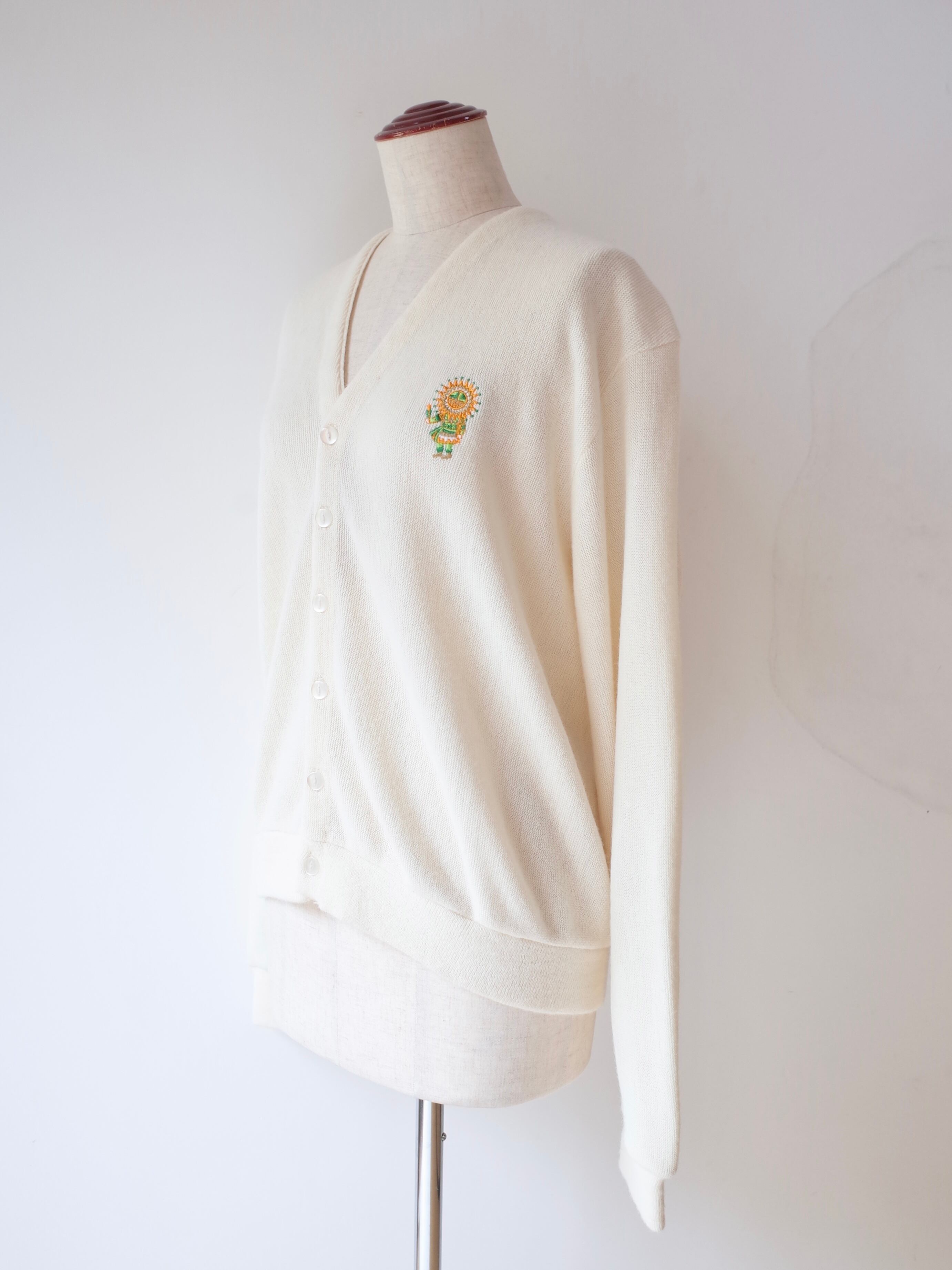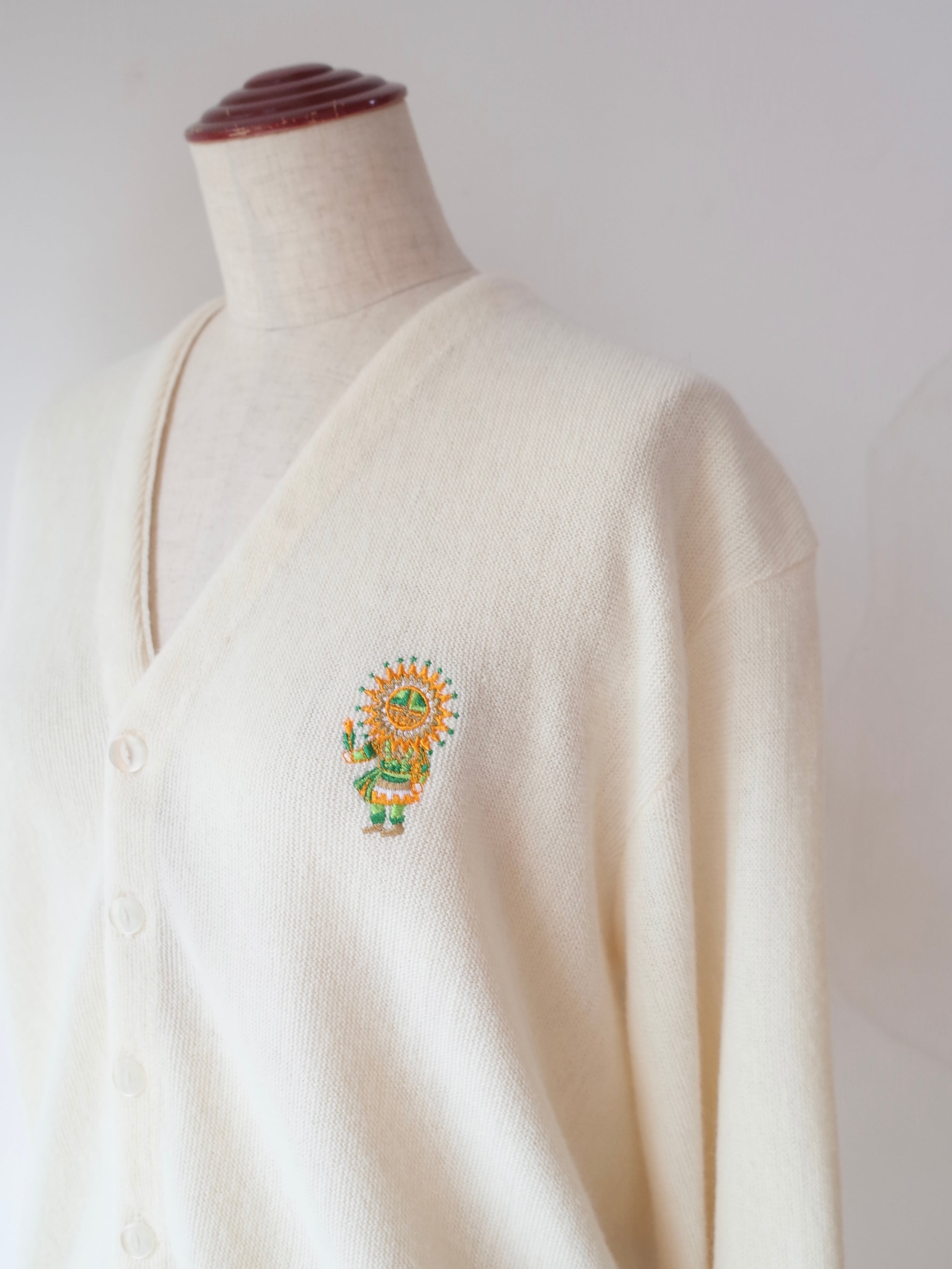 ・70〜80年代アメリカ製、生成りカラーのニットにネイティブアメリカンのカッチーナモチーフ刺繍がワンポイントで施された一着