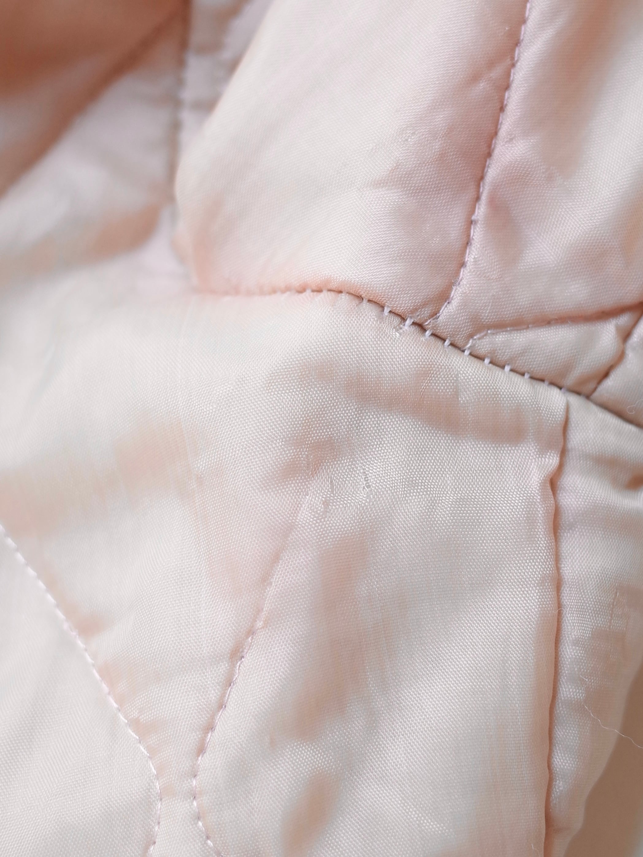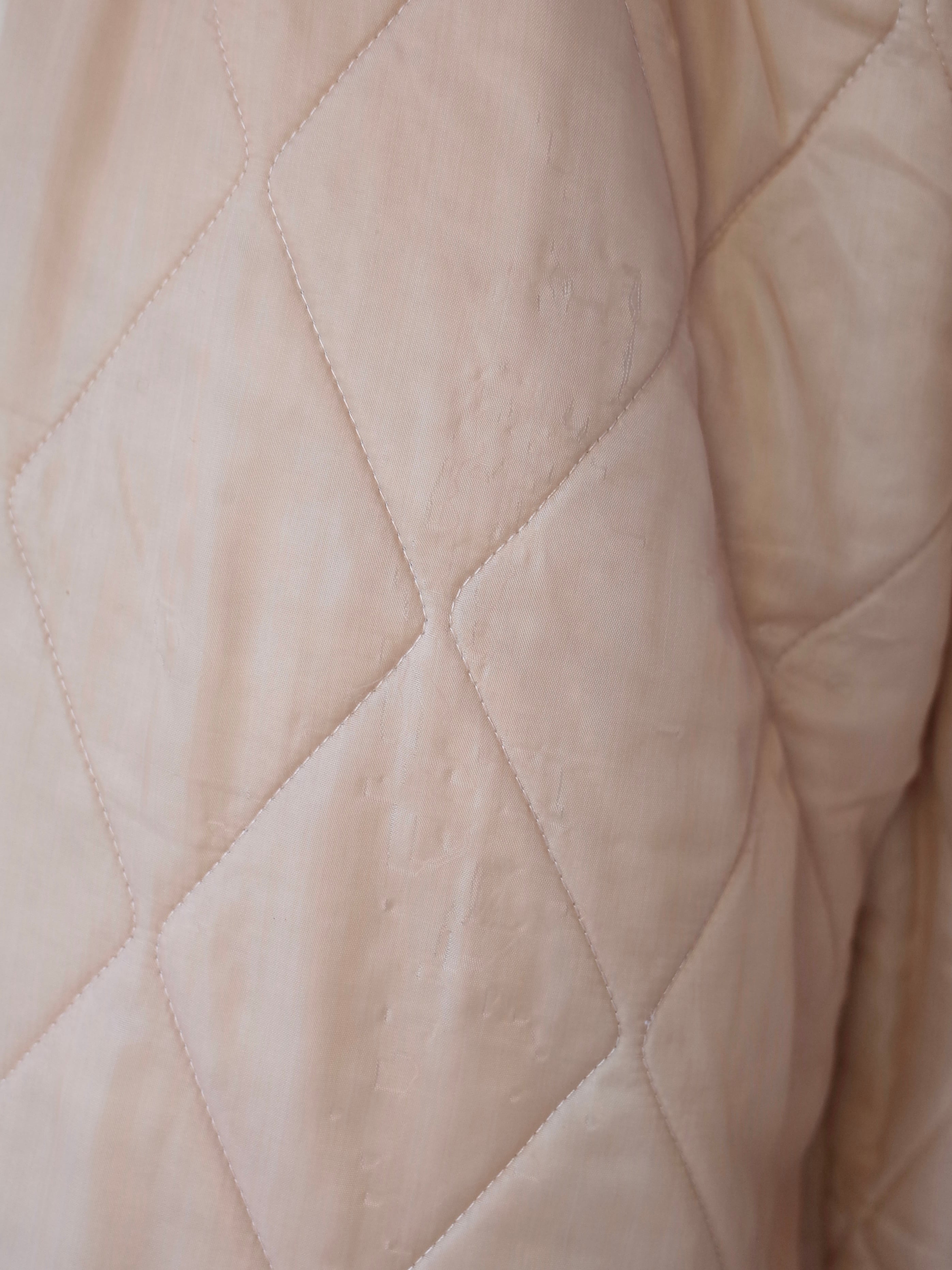 ・淡いピーチベージュカラーとシンプルなダイヤキルトで、ミリタリーやワークの要素がありながらもどこかクリーンな印象に