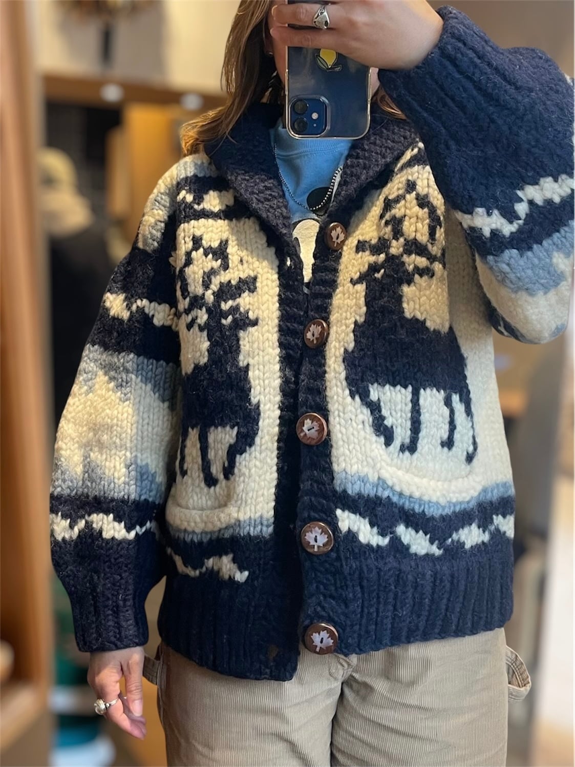 ・80年代カナダ製Spirit of the Westのトナカイ柄カウチンセーター