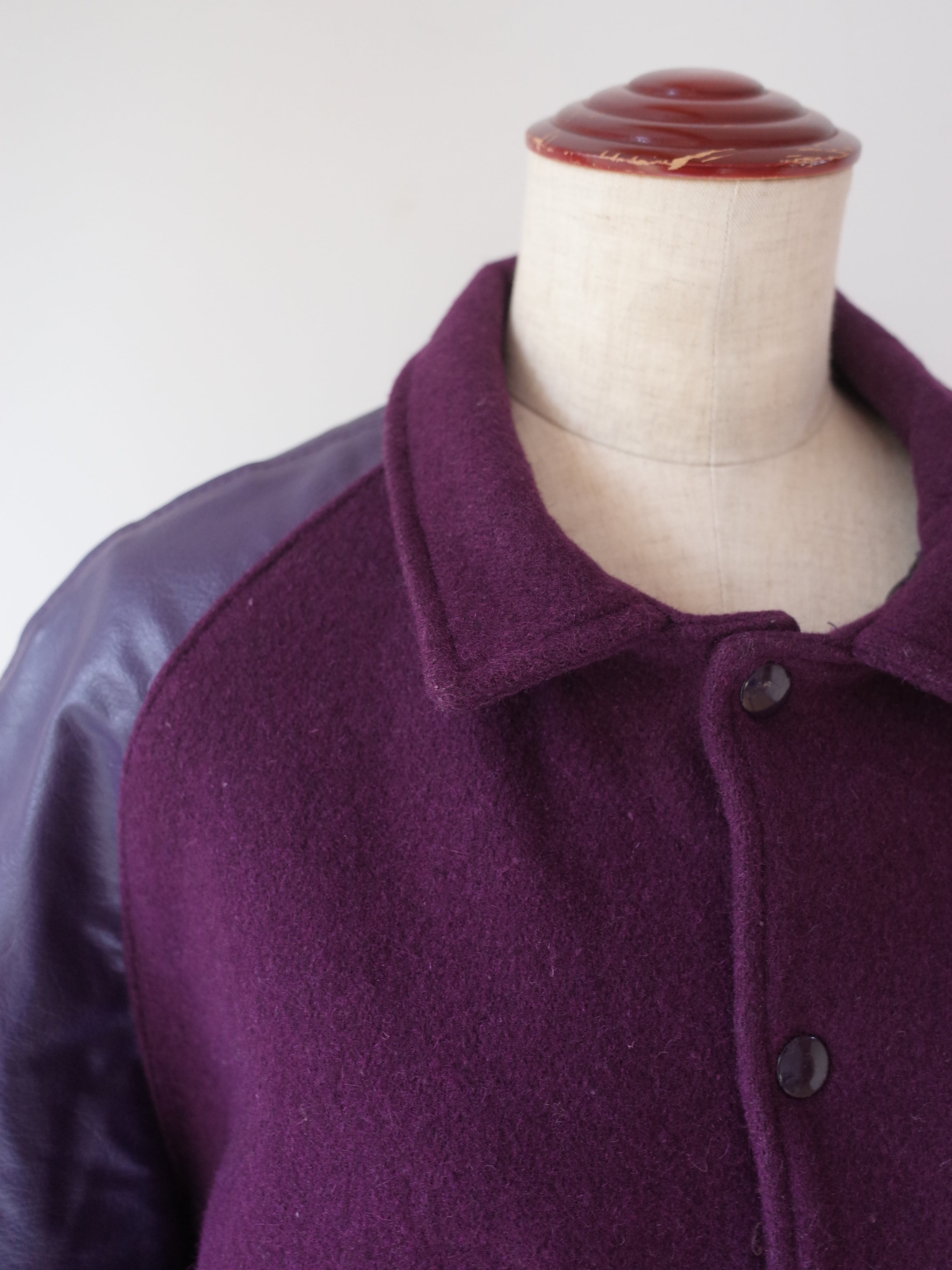 ・深みのあるパープルのメルトンボディに、ビニール素材のスリーブ
