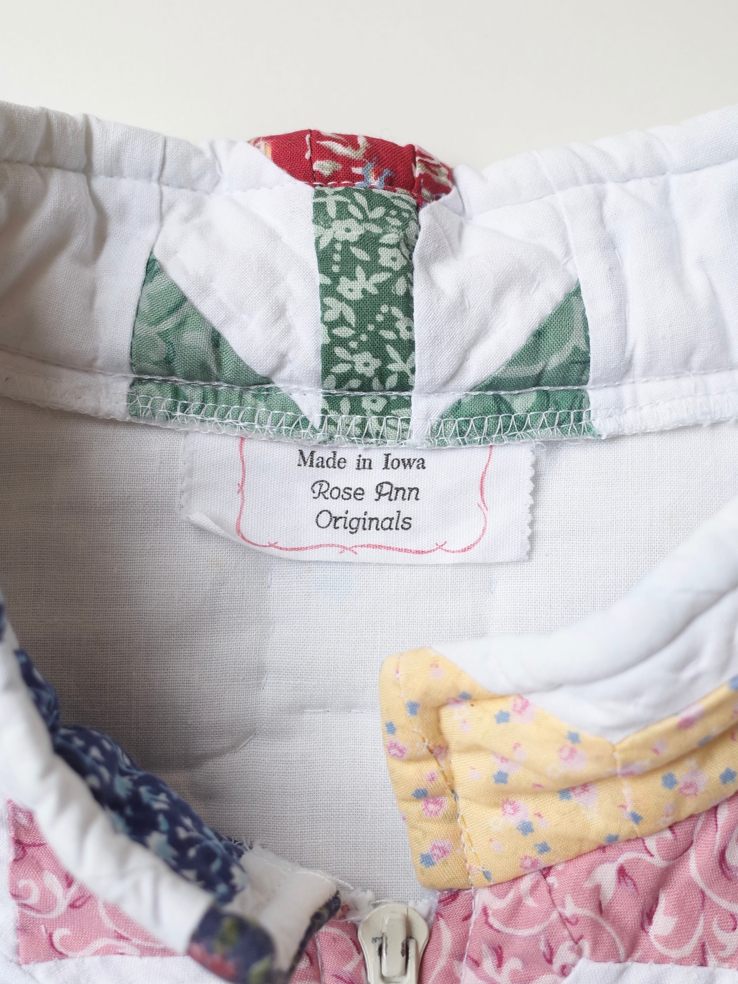 ・1980〜90年代頃のアメリカ・アイオワ州のハンドメイドブランド「Rose Ann Originals」による、キルトパッチワークジャケット