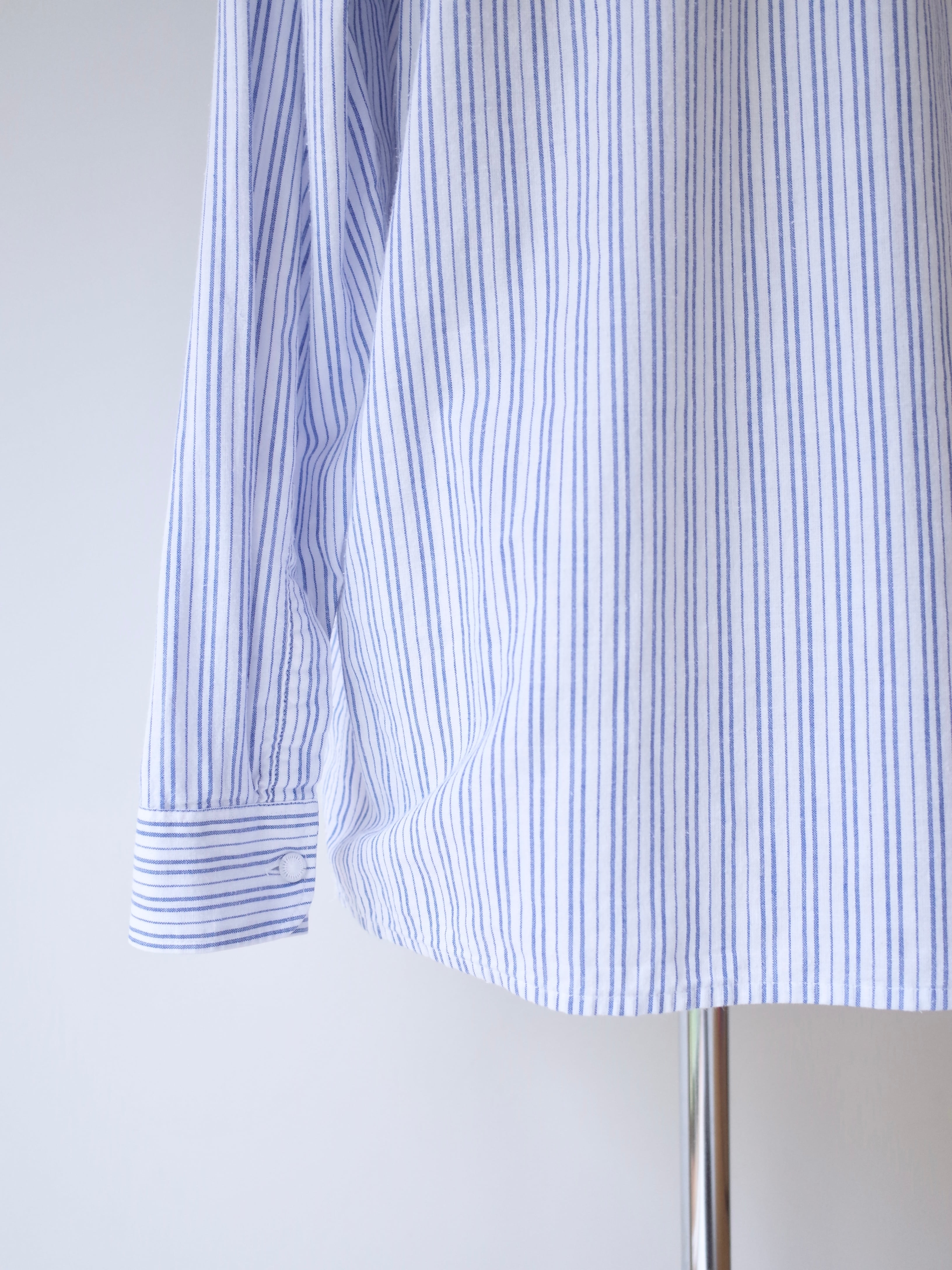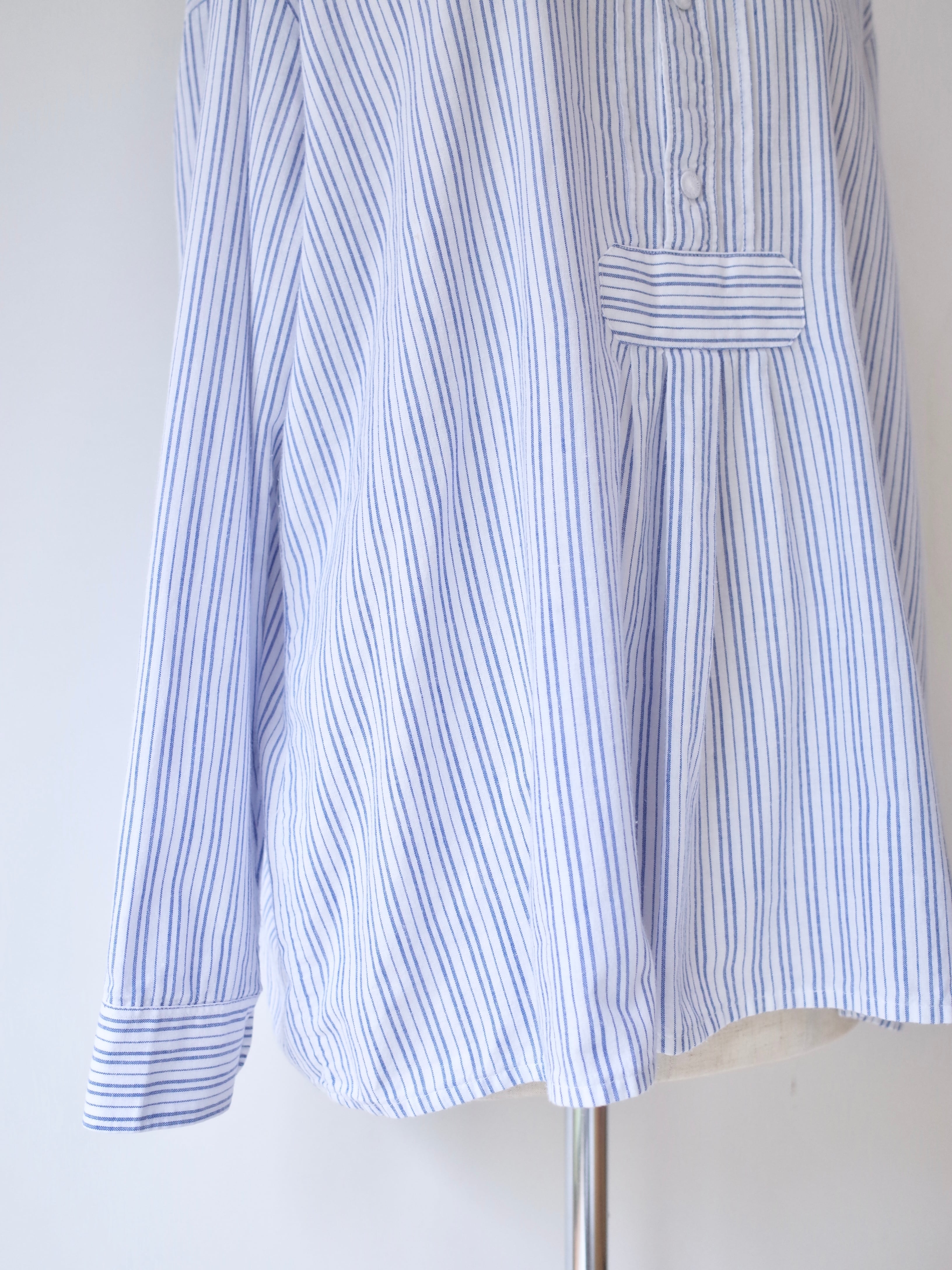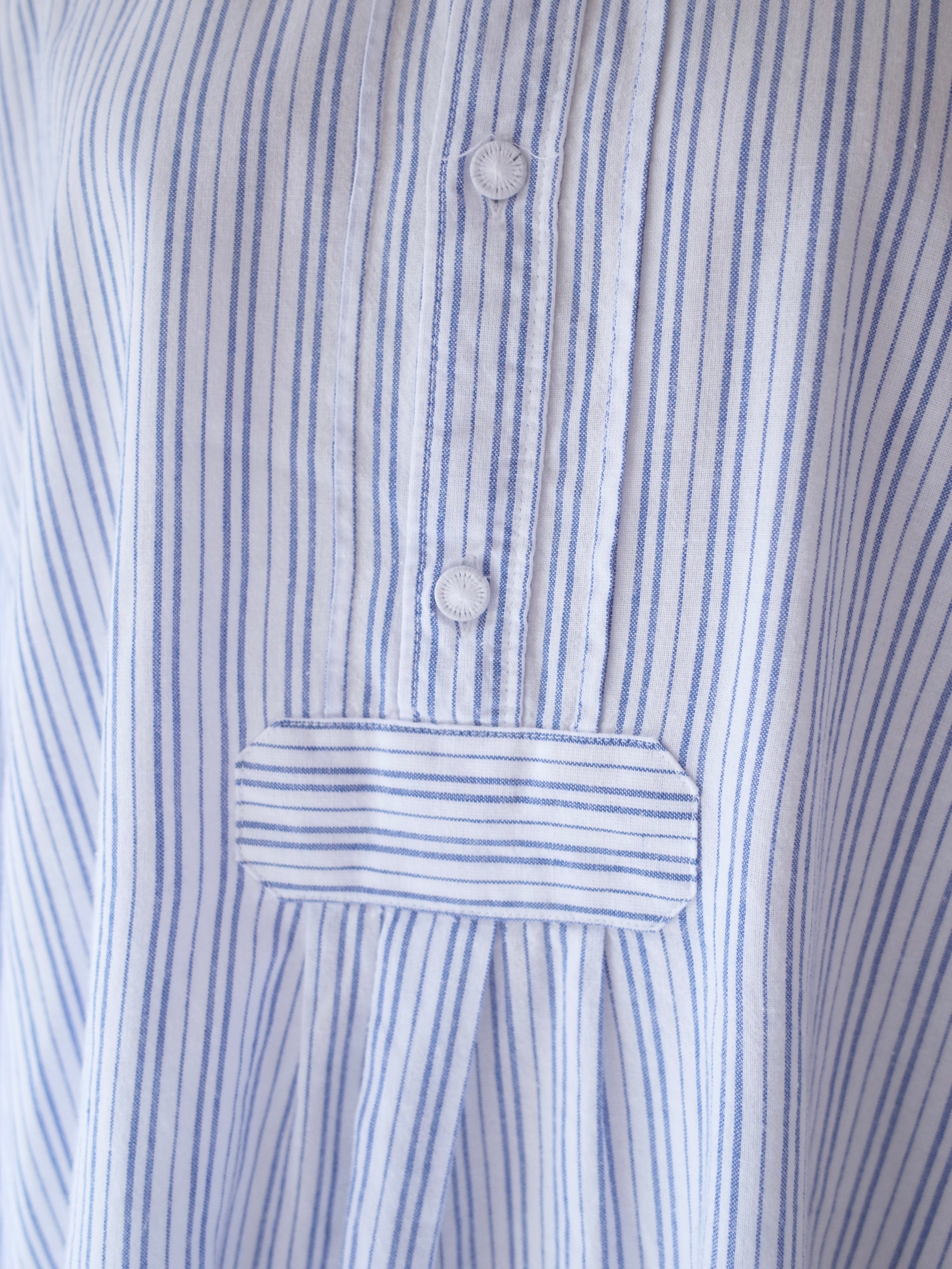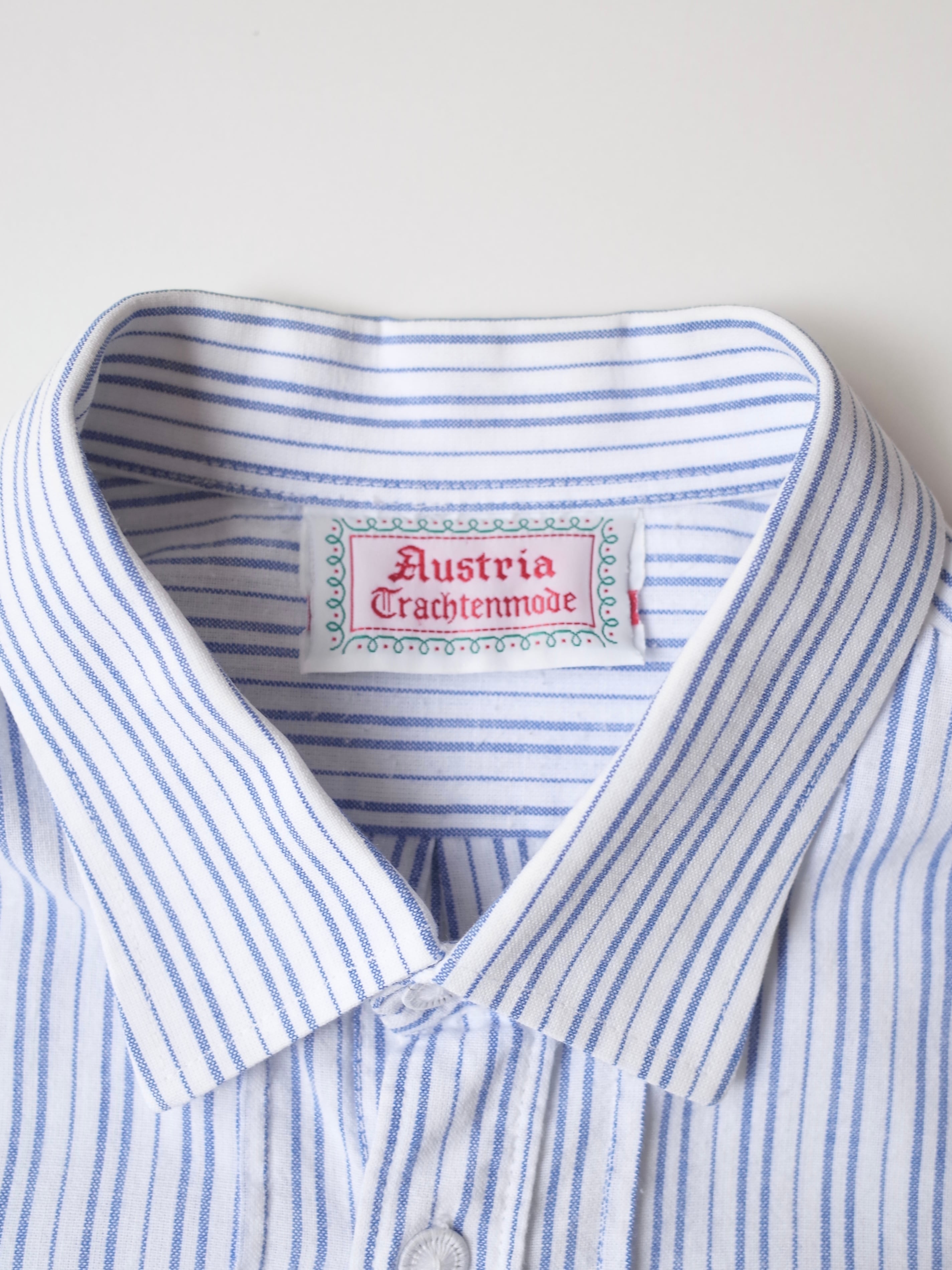 ・ブルー×ホワイトの爽やかなストライプ柄のチロリアンシャツ