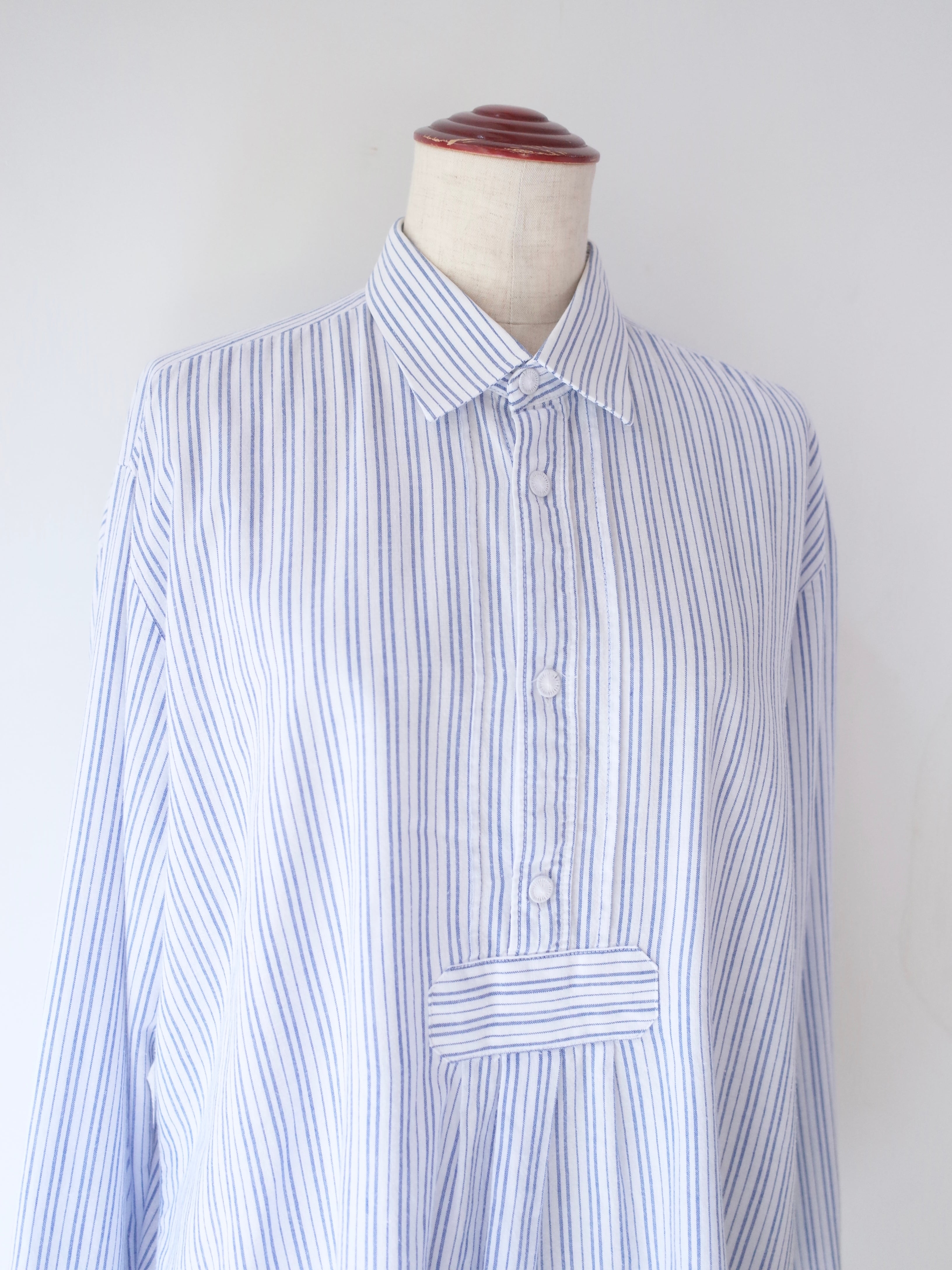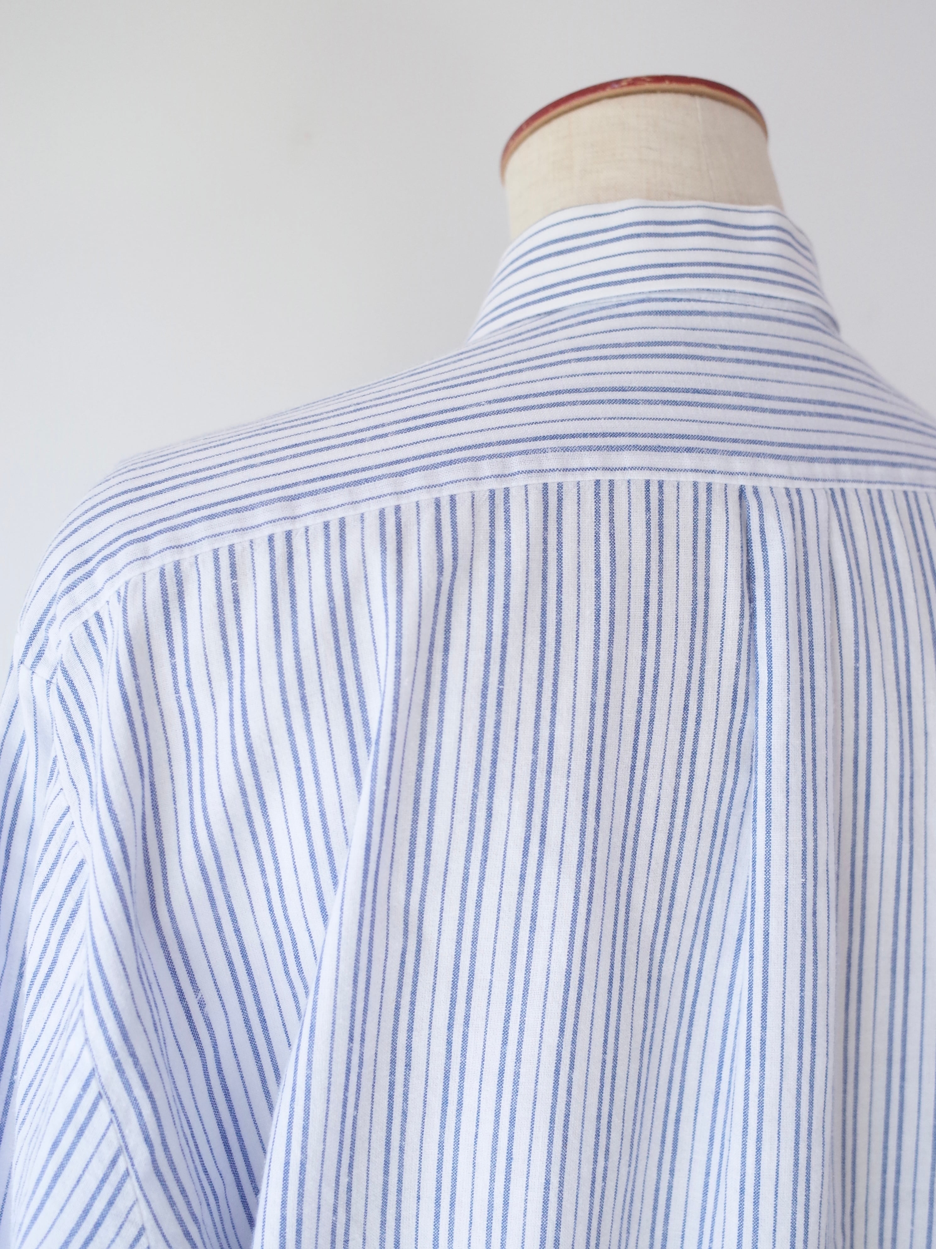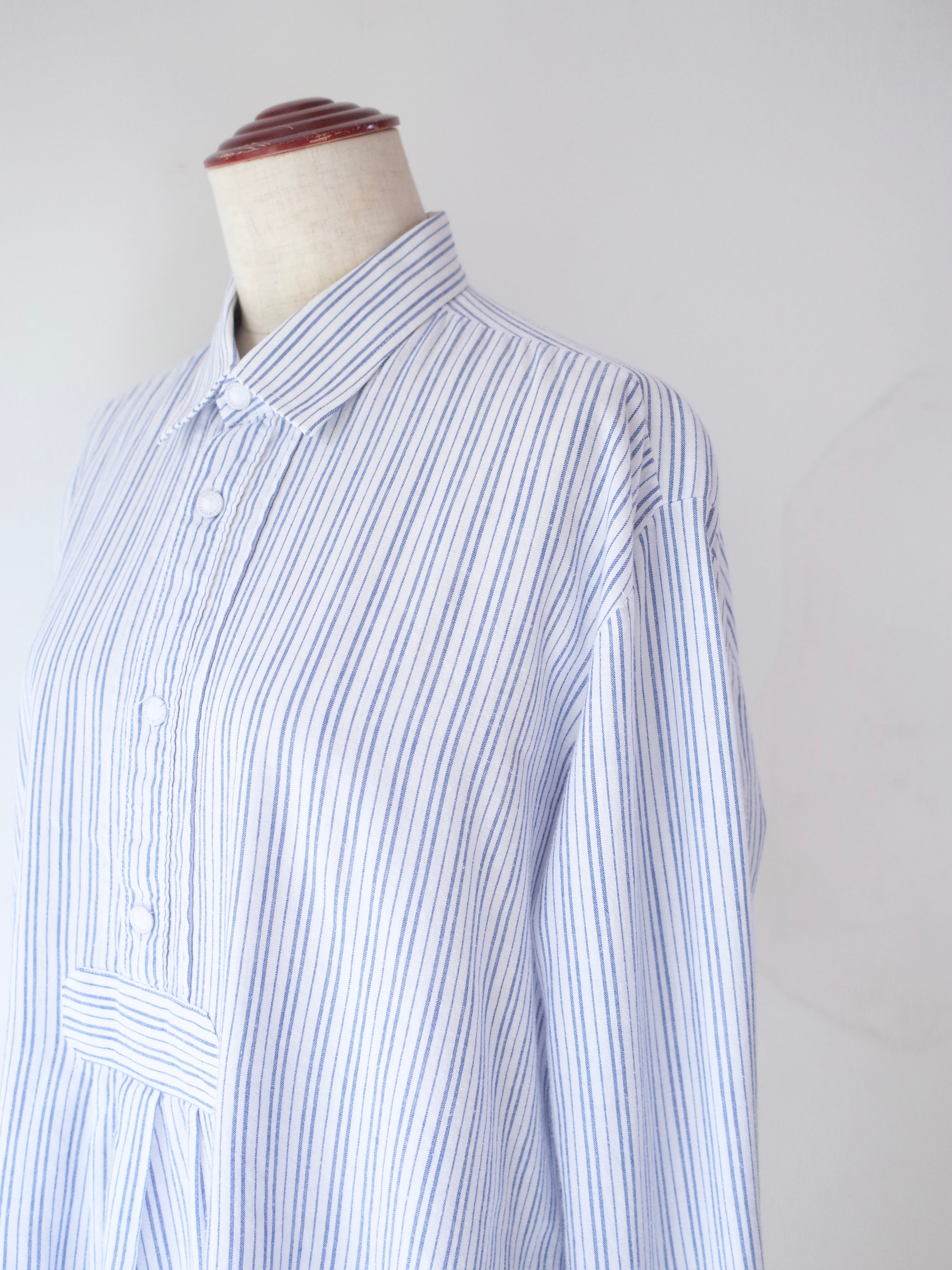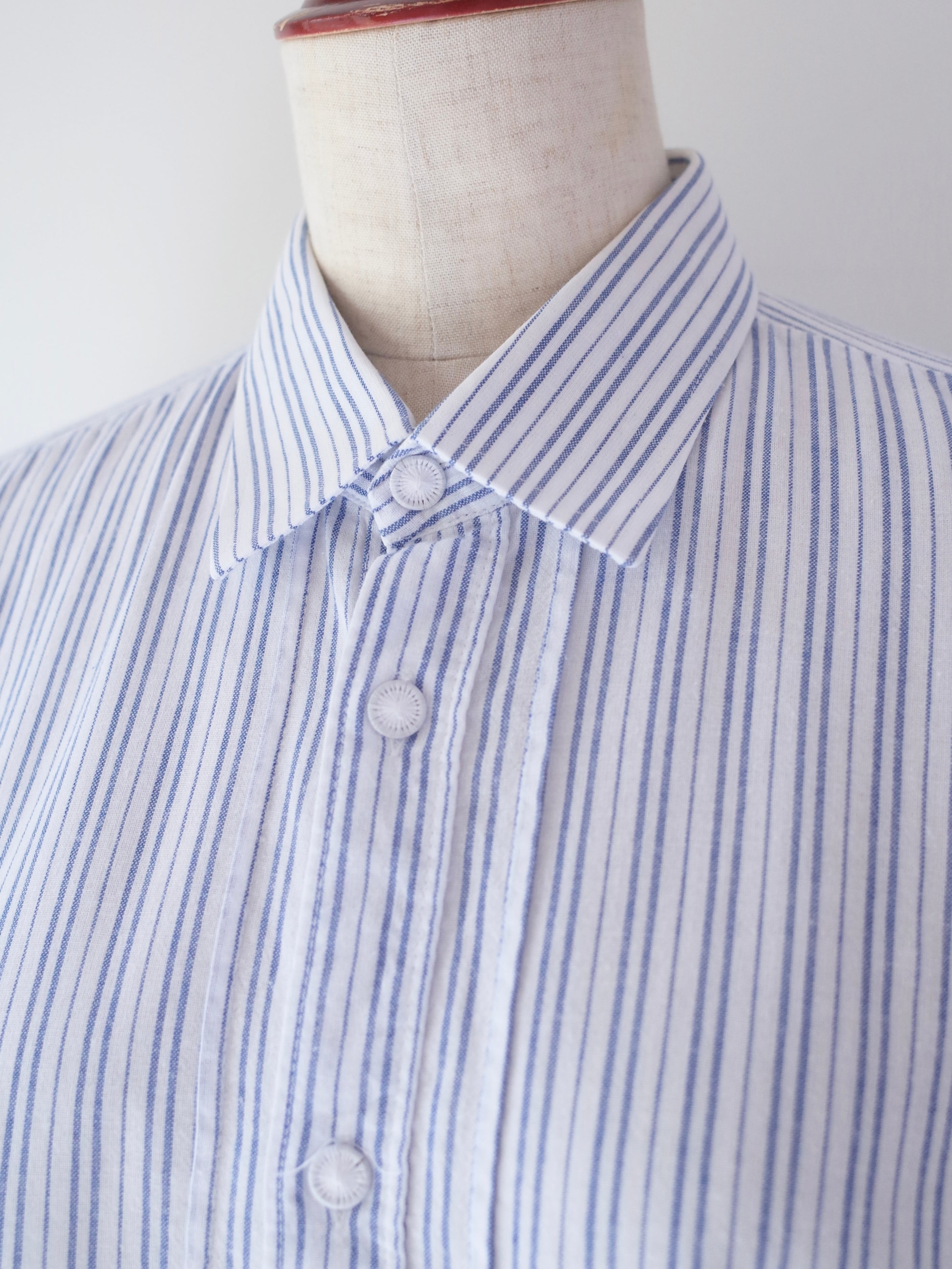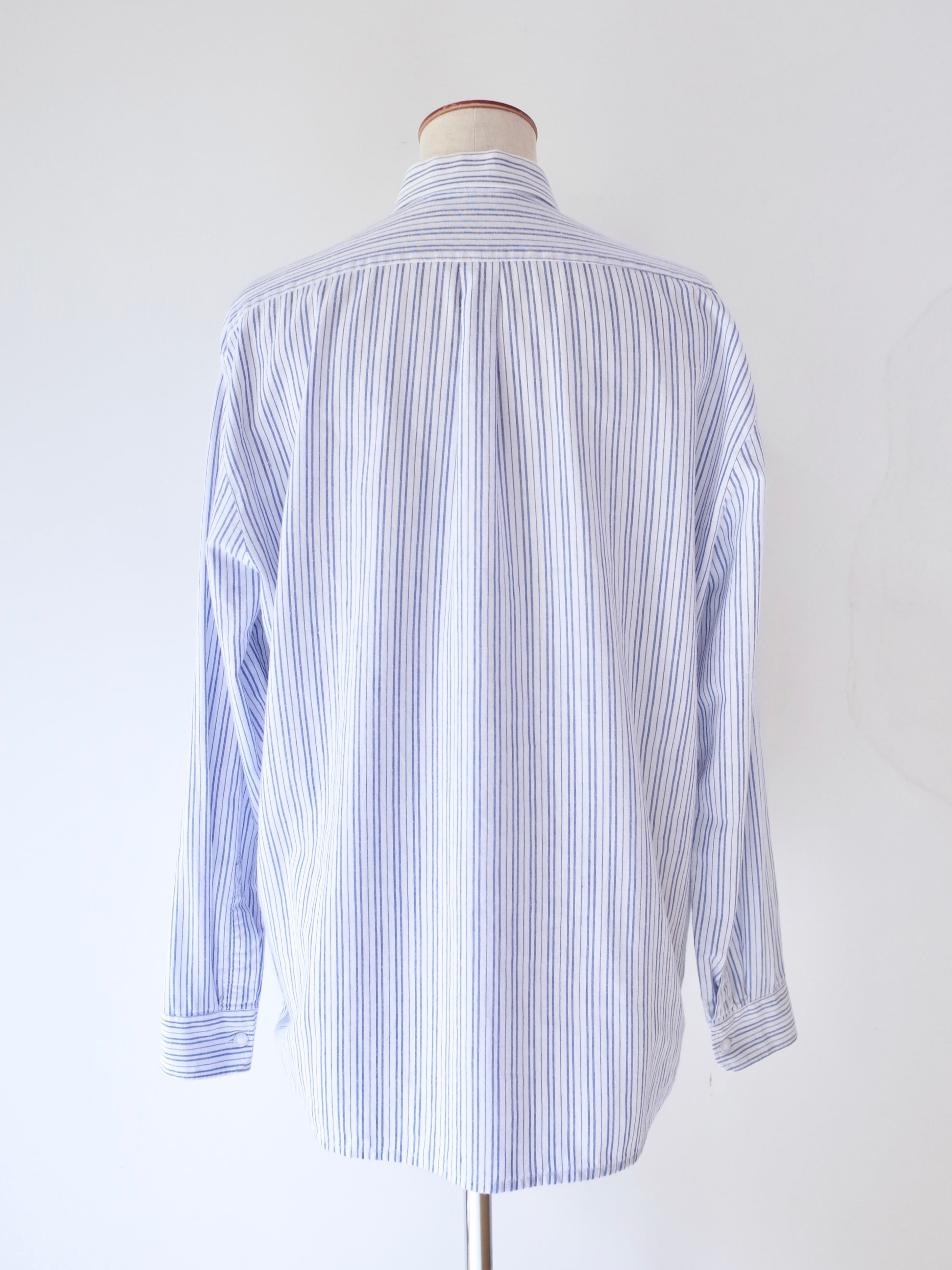 ・ブルー×ホワイトの爽やかなストライプ柄のチロリアンシャツ
