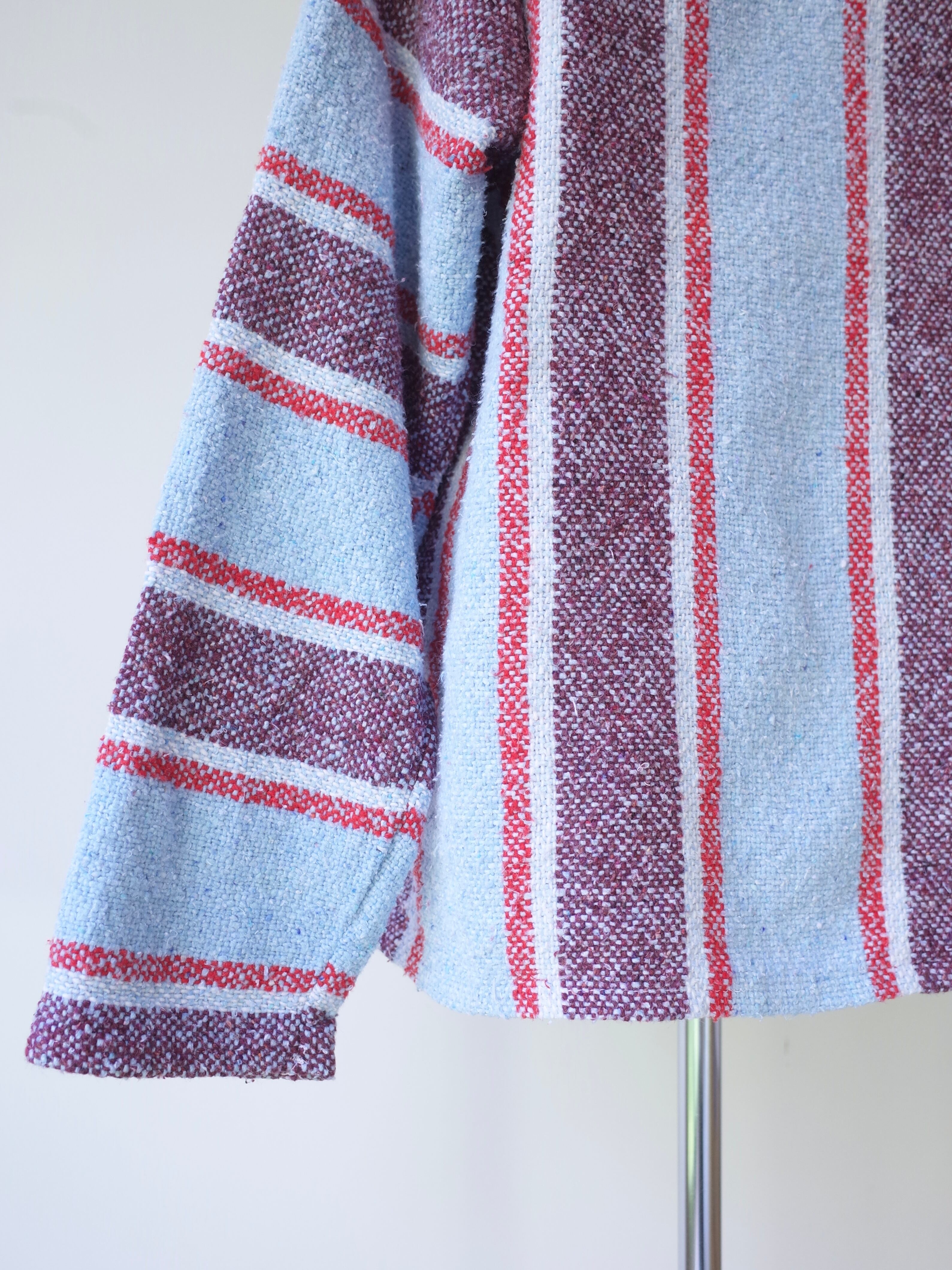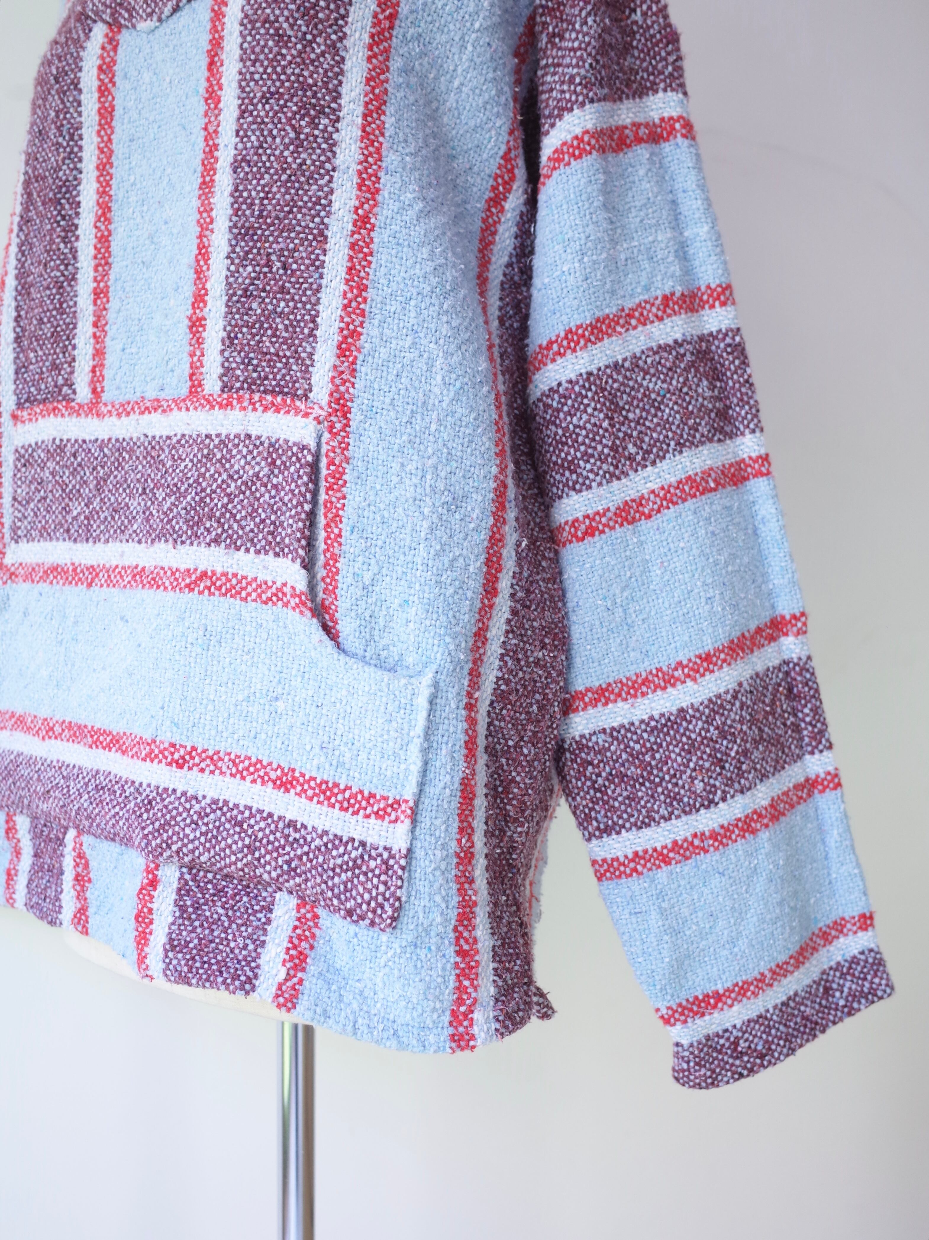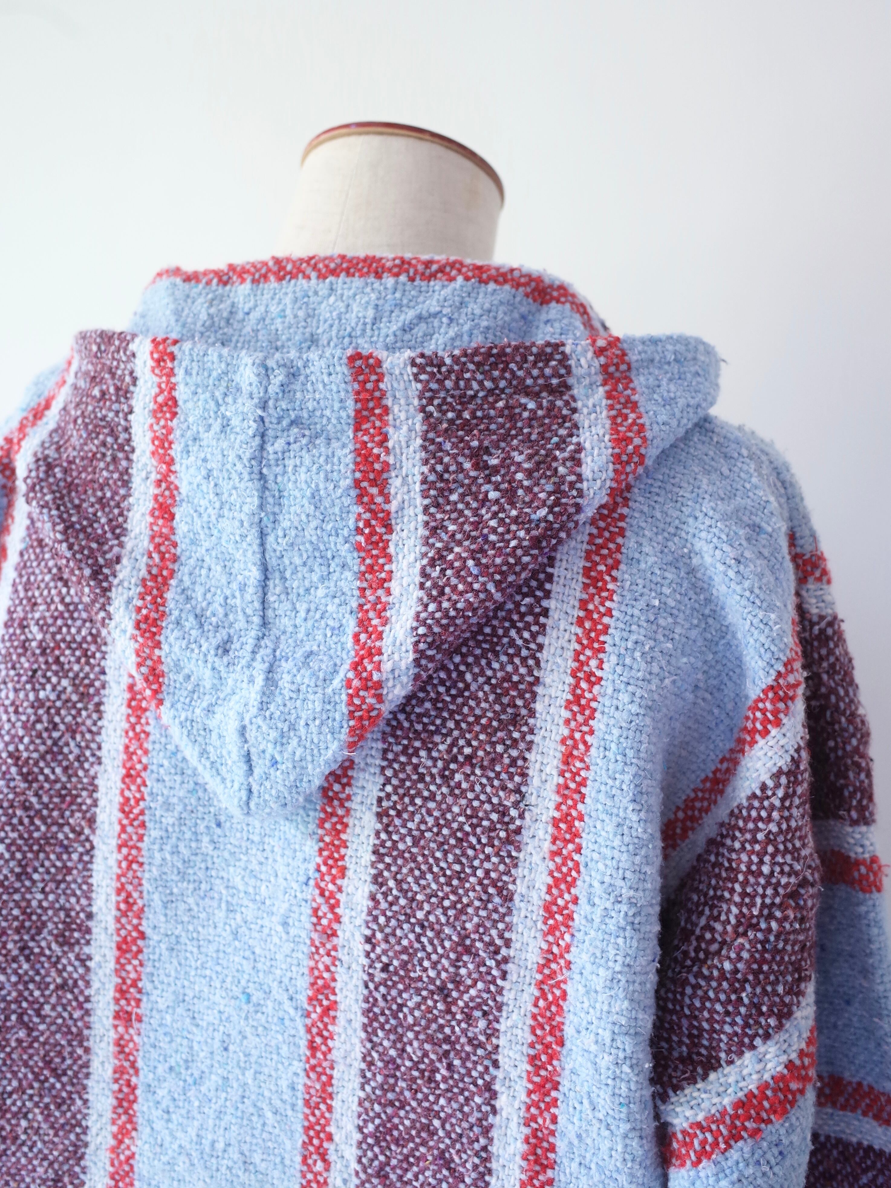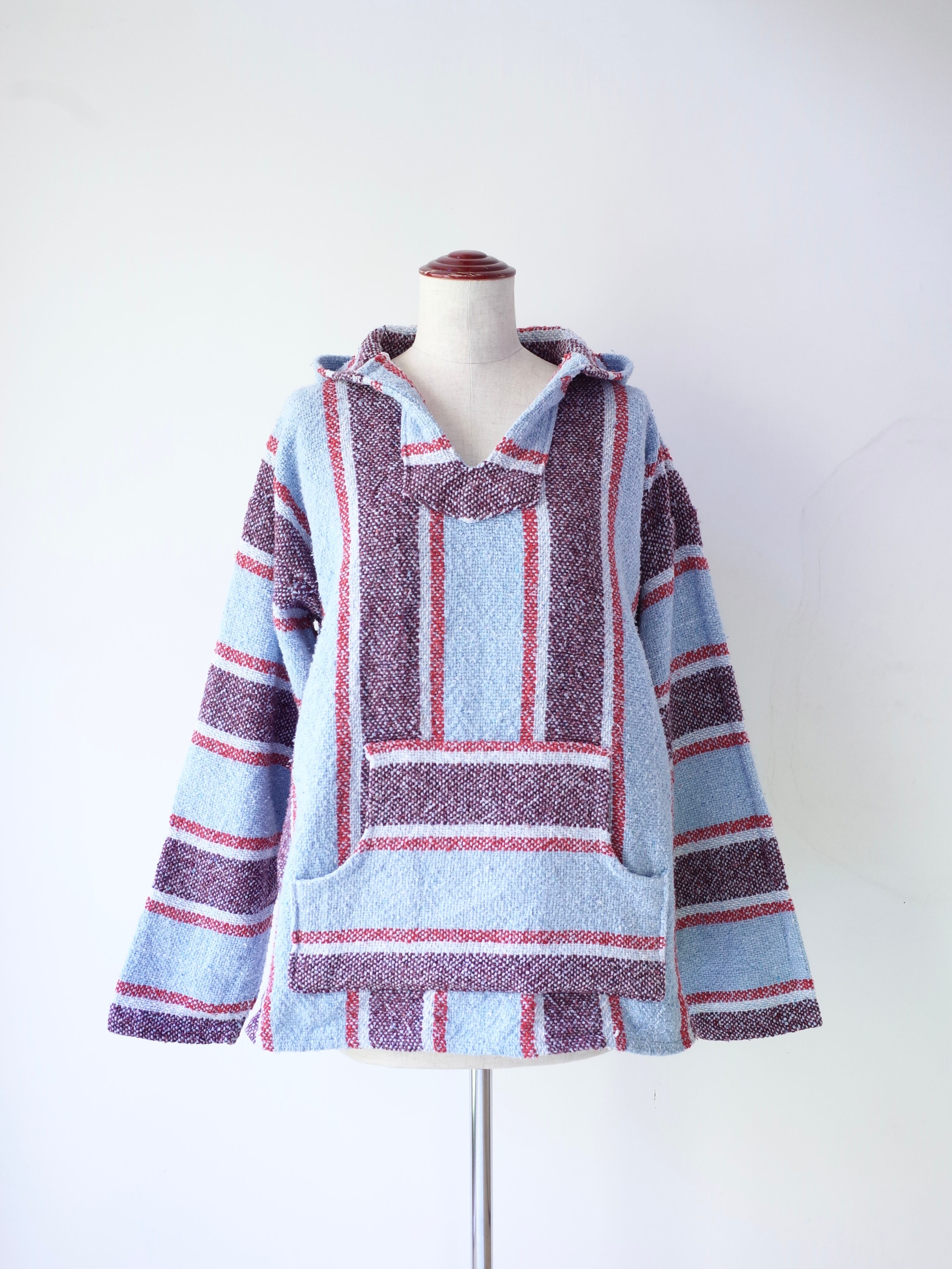 ヒッピー&サーフのアイコン、メキシカンパーカー。最近ではストリートブランドやハイブランドからも出ています。一枚はもちろんシャツの上から着用したり、ジャケットのインナーに仕込めば抜け感の演出も。ユニセックスで着用可能なサイズ感です。