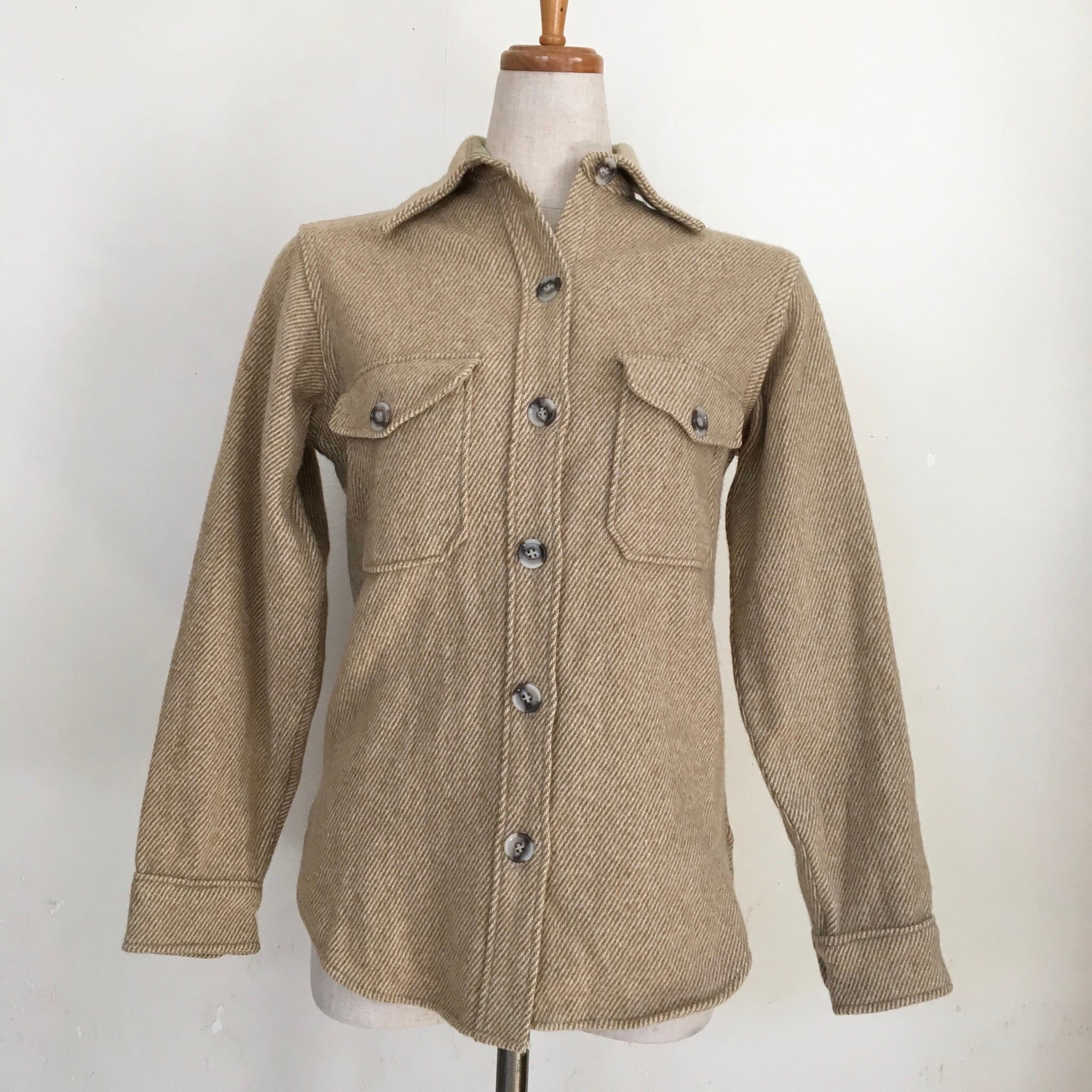 80年代アメリカ製Woolrichのウールシャツジャケット。厚手のウールで、ジャケットのように羽織れる一枚。最近ではセレクトショップなどでも人気のウールシャツジャケットですが、80s Woolrichのオリジナルはひと味もふた味も違ったヴィンテージ特有の雰囲気が出ていてとてもかっこいい一着です。ベージュの単色も使いやすいカラーです。