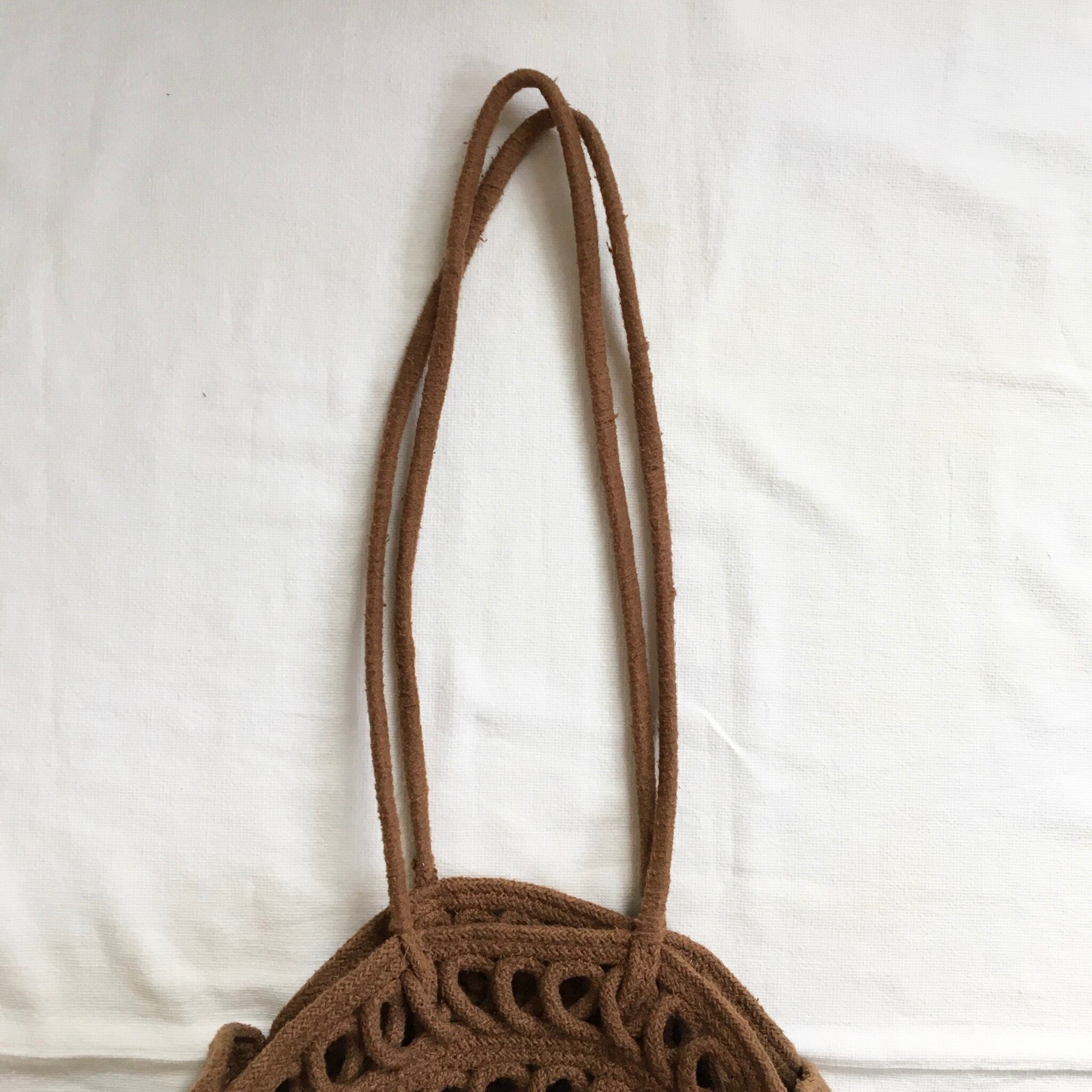 インド製、コットンのバッグ。程よい透け感がかわいいです。マチもしっかりあって荷物もたくさん入ります。肩からかけられる長めのショルダーも使いやすいポイントです。
