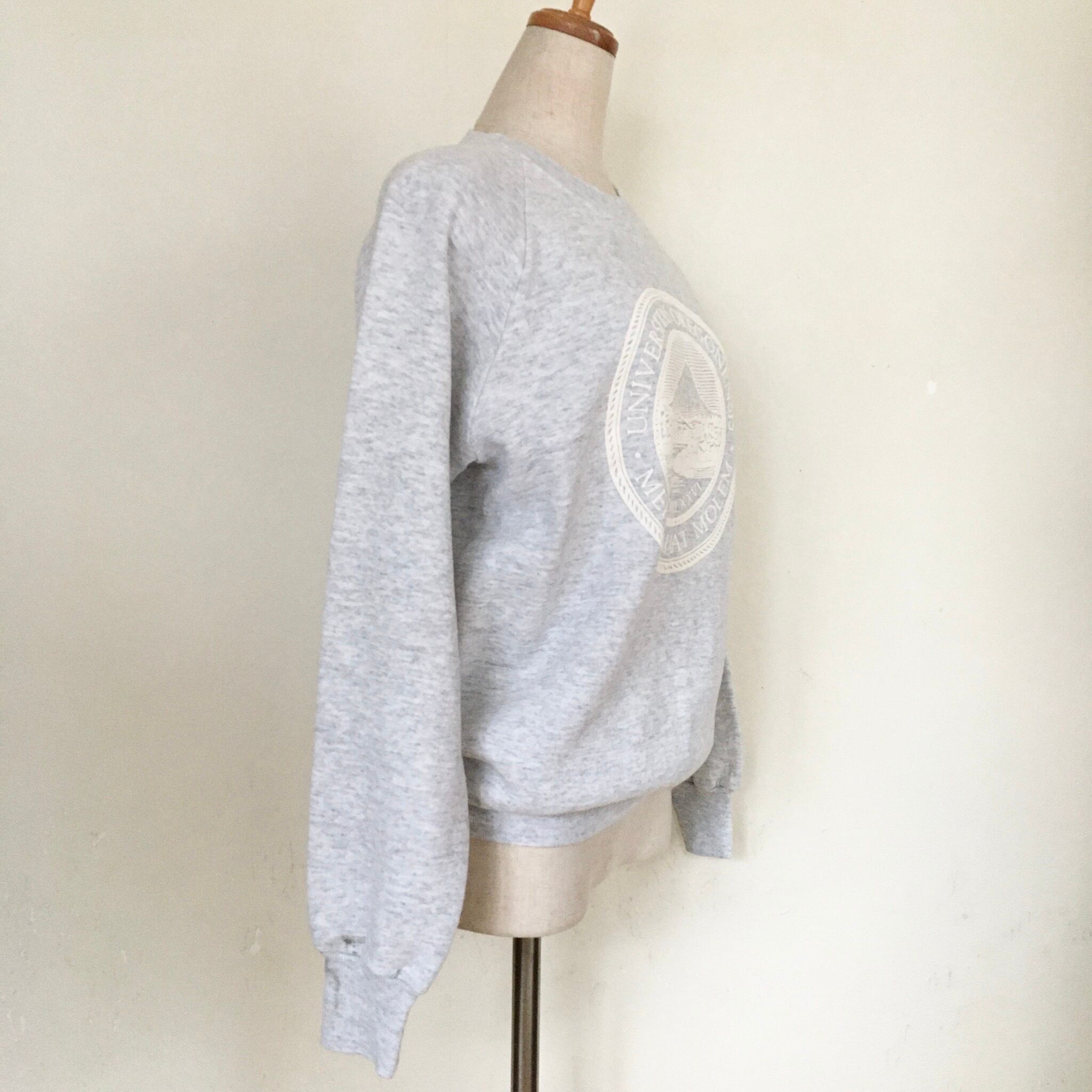 90年代アメリカ製オレゴン大学のカレッジスウェット。ボディはJERZEESで、ラグランです。霜降りのライトグレーにさりげないホワイトのプリントが珍しい一枚。コーディネートにも取り入れやすいデザインのカレッジスウェットです。