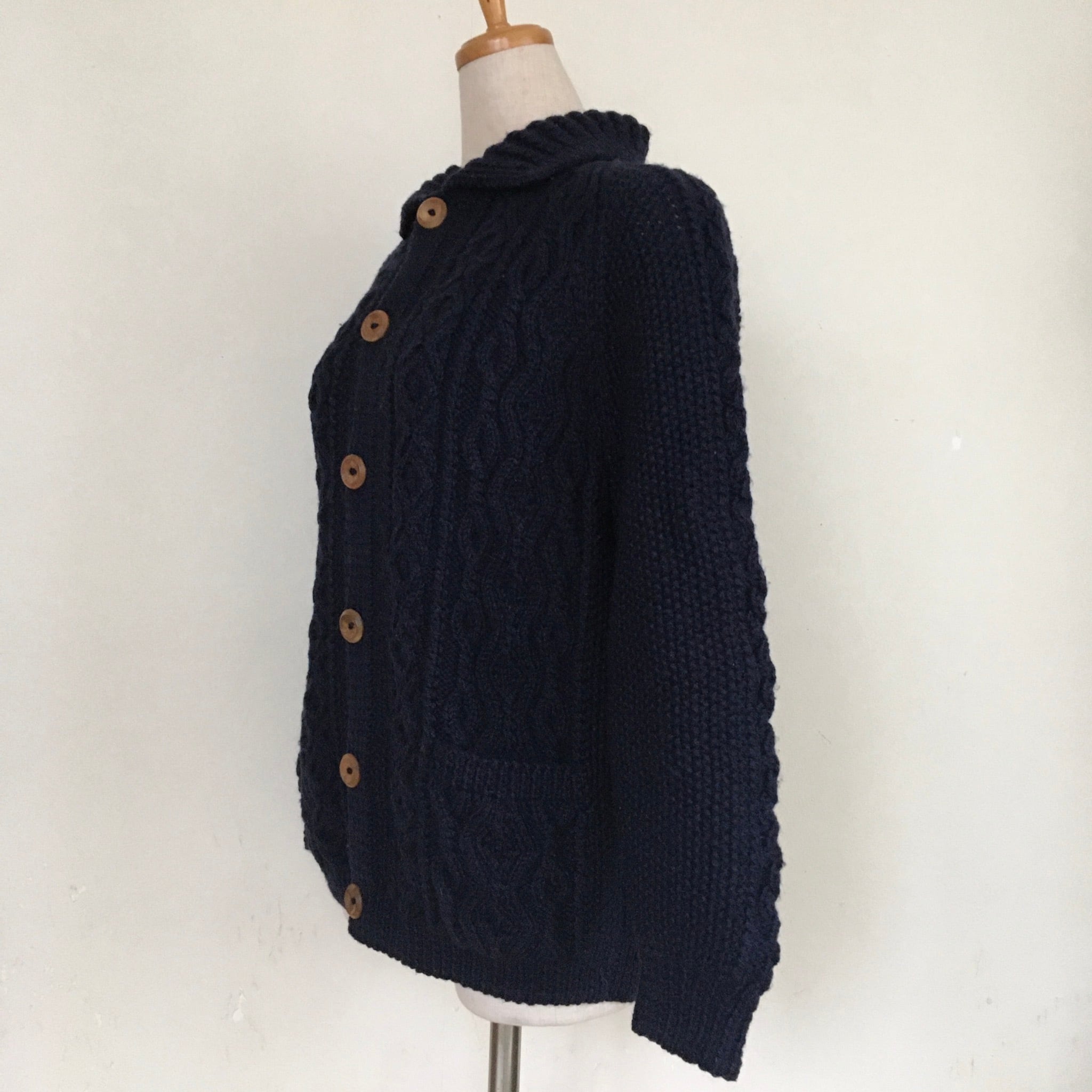 INVERALLANは、1975年スコットランドにて創業されたハンドニットメーカー。大量生産では不可能なアイテムの生産をコンセプトに、アラン諸島の漁師たちが500年前に着用していたハンドメイドセーターの「アランセーター」を中心に生産しています。こちらはINVERALLANの定番で代表的モデル「3A Lumber Cardigan」。ボタンフライの前開きと、一枚衿が施されたデザインが特徴的です。インナーやアウターどちらの用途としても着用できる人気のモデルです。最高級のアラン糸を厳選し、ハンドメイドで時間をかけて一点一点作られる製品は、一生もののニットです。