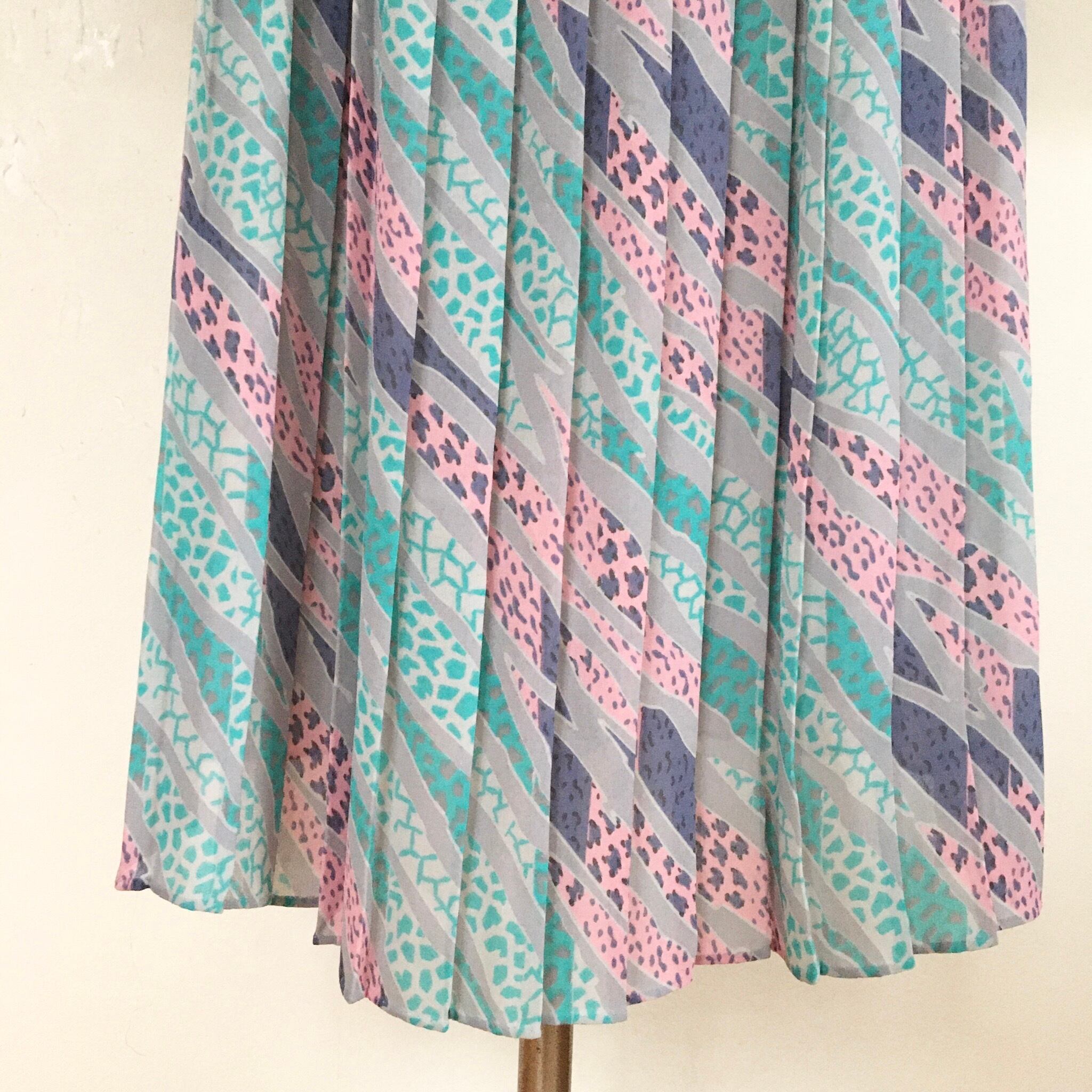 幾つものレオパードのパターンが組み合わさったボウタイのワンピース。後ろで結んだり、前に垂らしたりと、着方はいろいろ。トップスを重ねても◎パステルカラーの配色と、プリーツスカートがかわいい一枚です。