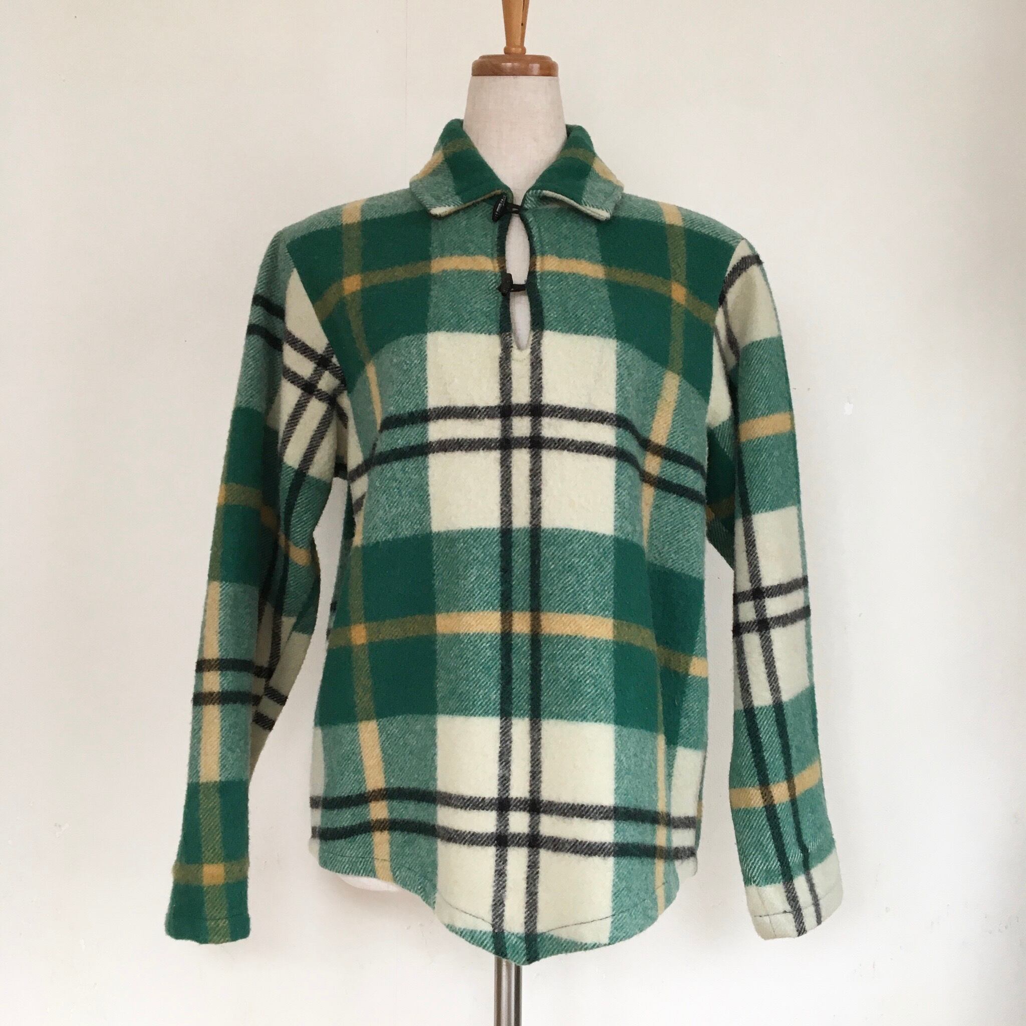 60年代アメリカ製のWoolrichのプルオーバーCPOシャツです。Woolrichは、アメリカで最も古いアウトドアメーカー。ホームベース型の裾のデザインが特徴的で、この時代に流行したディテールのひとつです。シャツと言ってもヘビーな生地を使用している為、シャツやカットソーをインしたりとジャケットのように着用するのがおすすめです。防寒性に優れていてるので、実用性もデザインもグッドな一枚です。