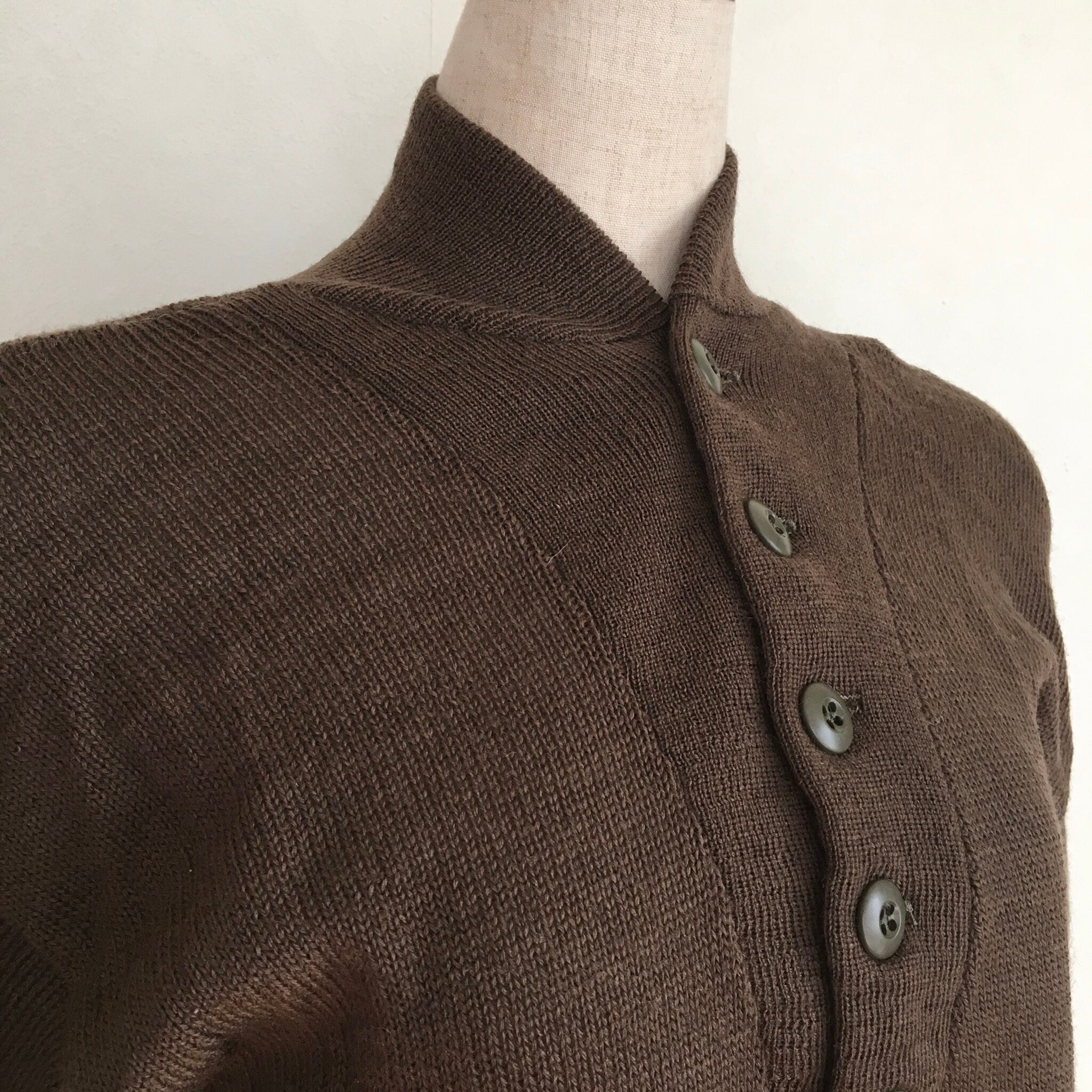 80年代製U.S.ARMYのウールセーター。スタンドカラーでフロントにボタンが付いています。袖と丈のリブが長めで締まっているのでシルエットも綺麗です。ハイウエストボトムやロングスカートなどとも相性がよく、程よい女性らしさも加わり抜群です◎ハイゲージで厚すぎず、ジャケットやアウターの下にも問題なく着用頂けます。