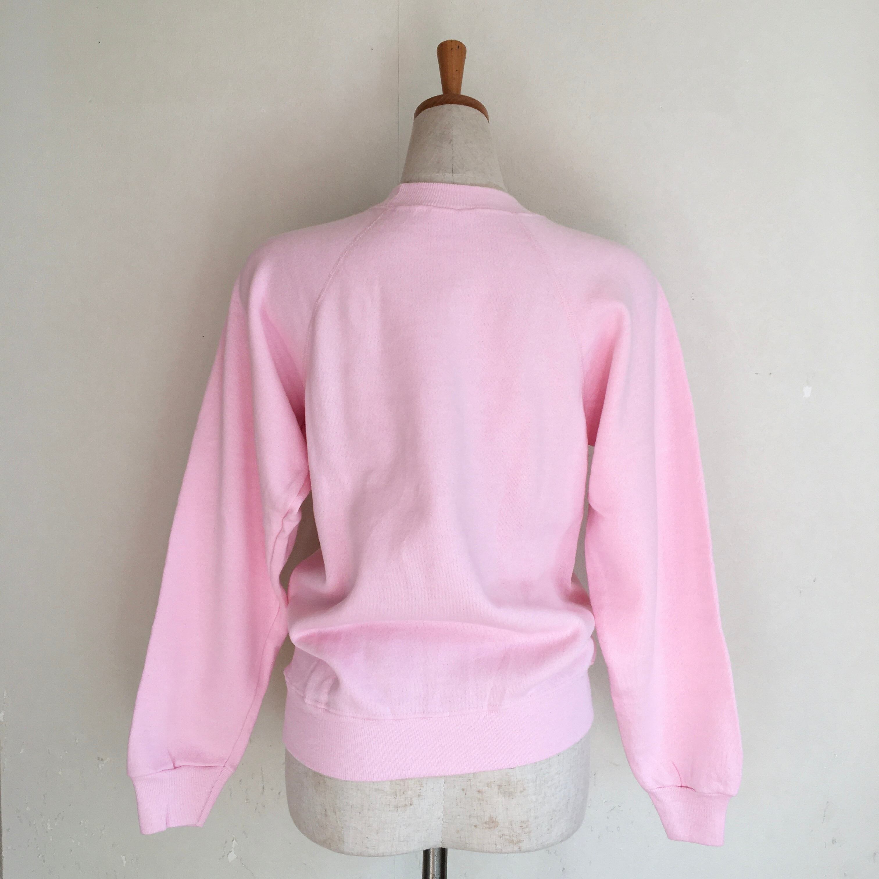 80年代アメリカ製Hanesの無地スウェットです。淡いピンクのカラーリングがかわいい一着。裏起毛ですが、厚すぎない生地感なのでごわつかず一枚でもインナーとしても着用頂けます。差し色にも◎