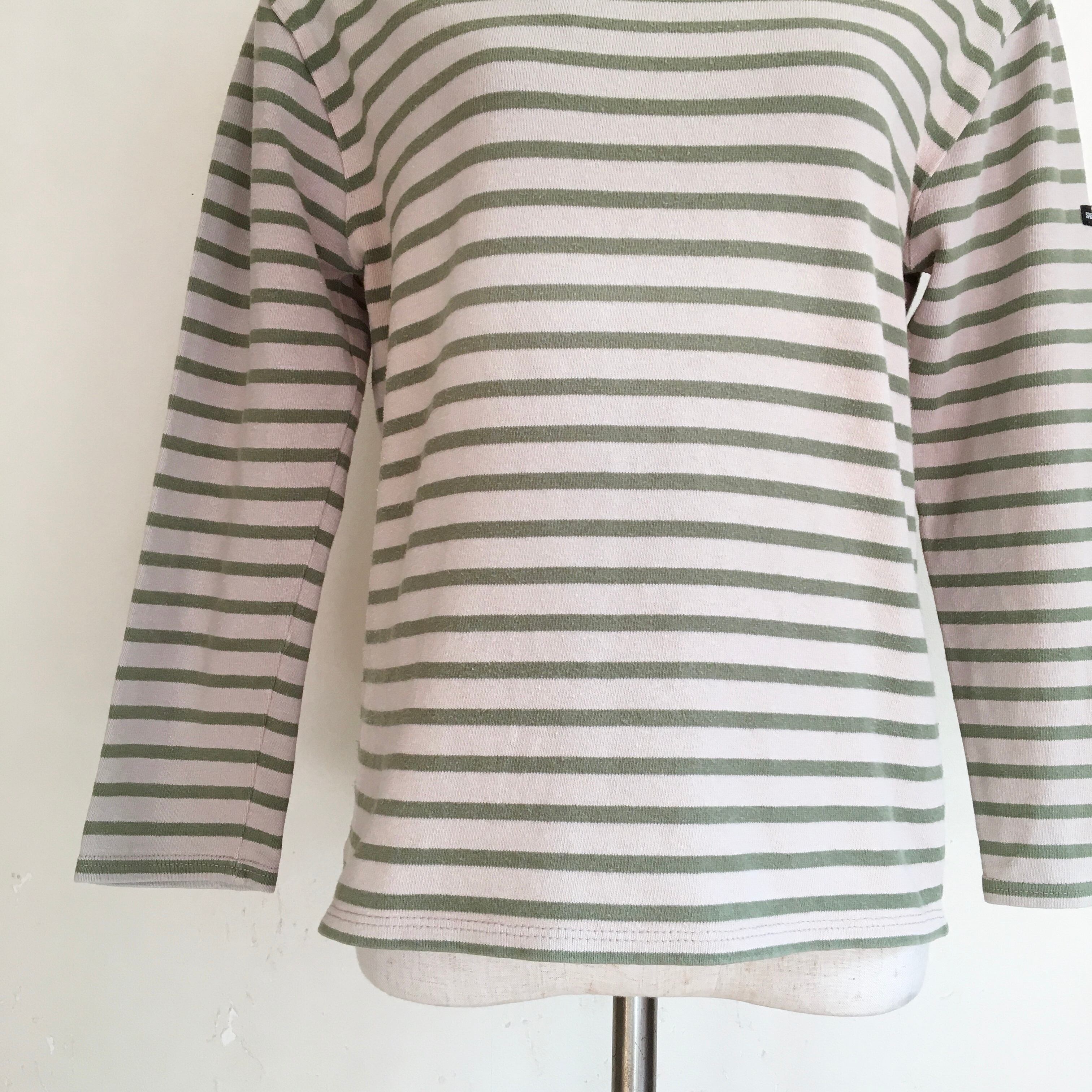 Saint Jamesのベージュ×カーキボーダーのバスクシャツです。