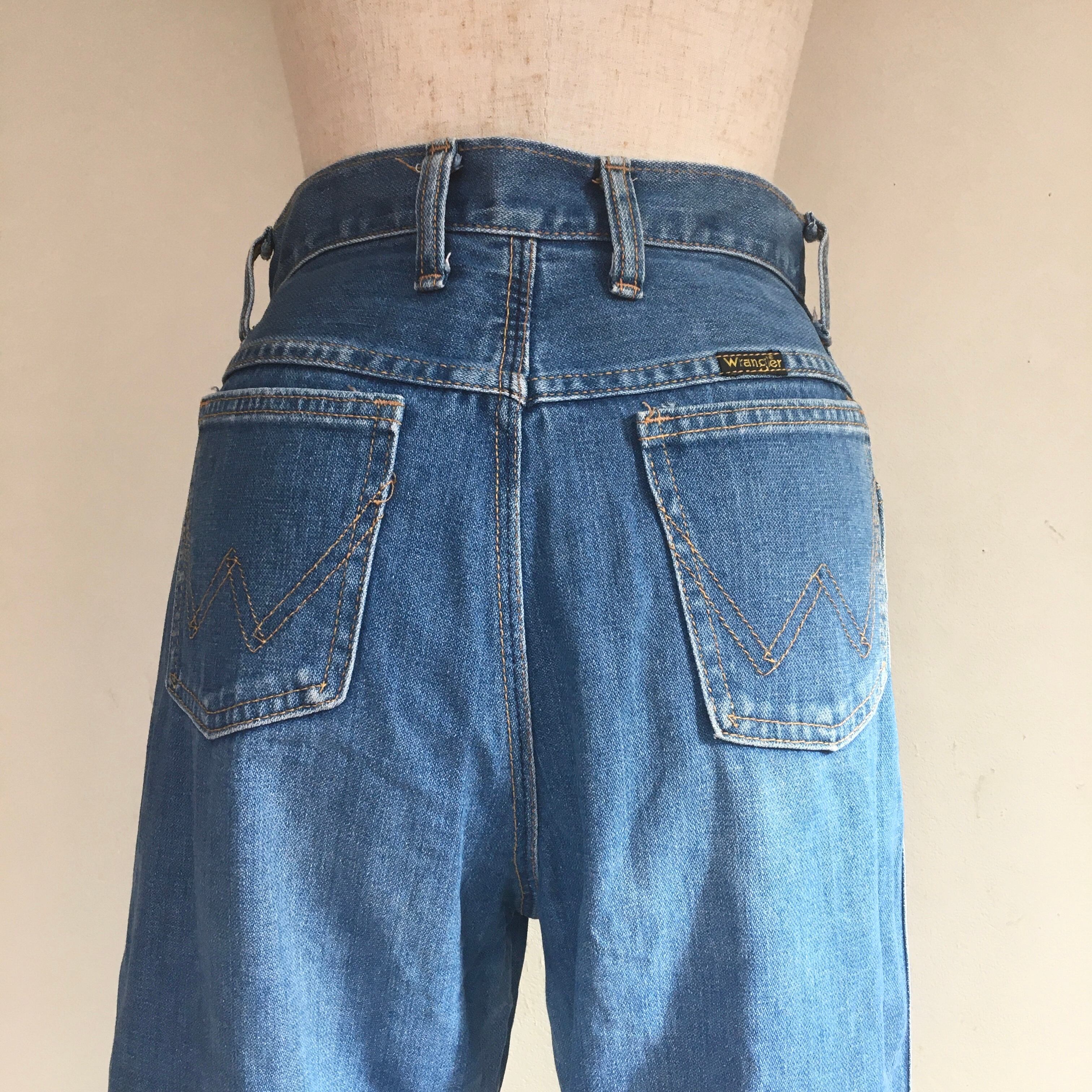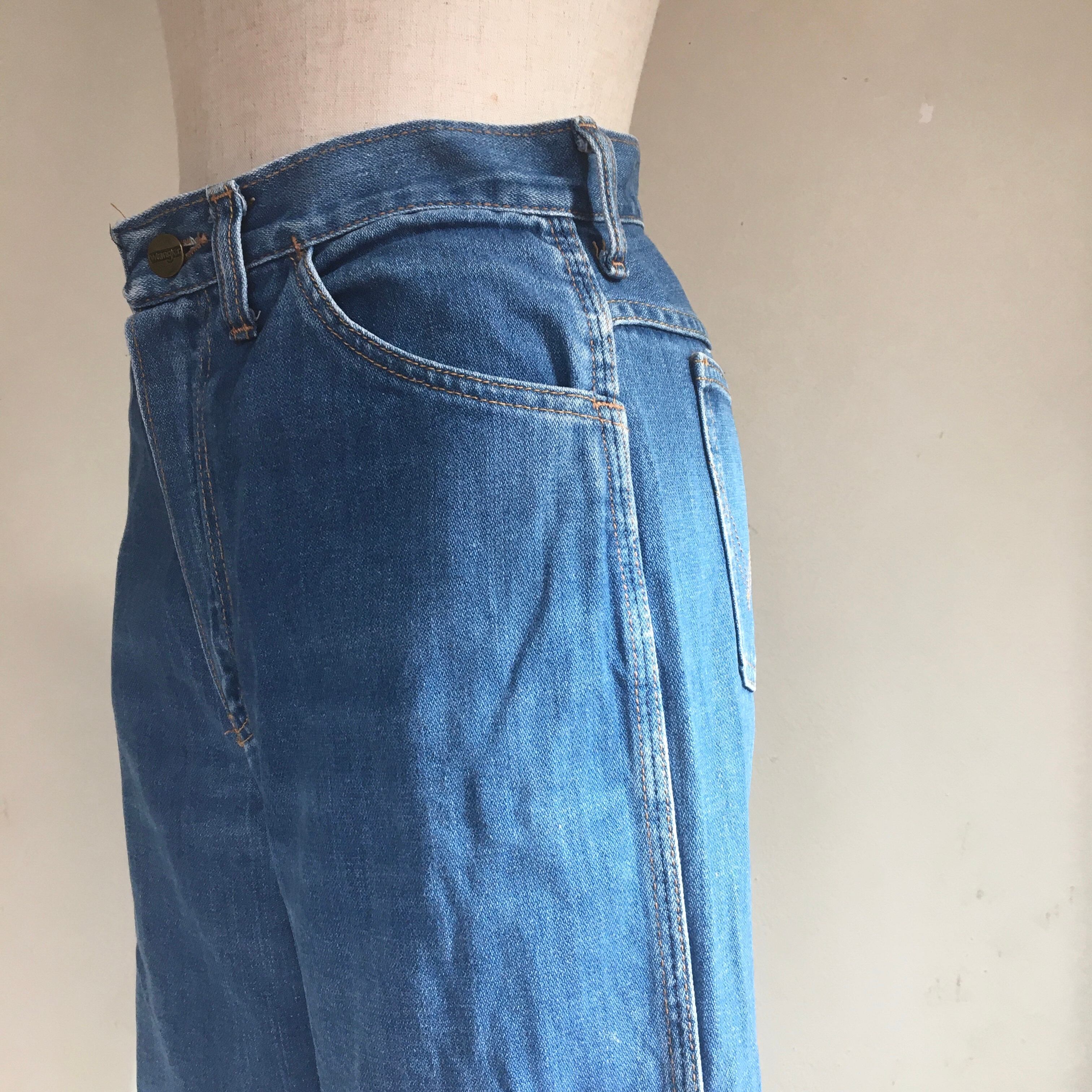 70年代アメリカ製Wranglerのデニムパンツ。幅広なストレートレングスにハイウエストのバランスが抜群な一着。履き込んであるクタクタな生地感も◎雰囲気あるデニムです。