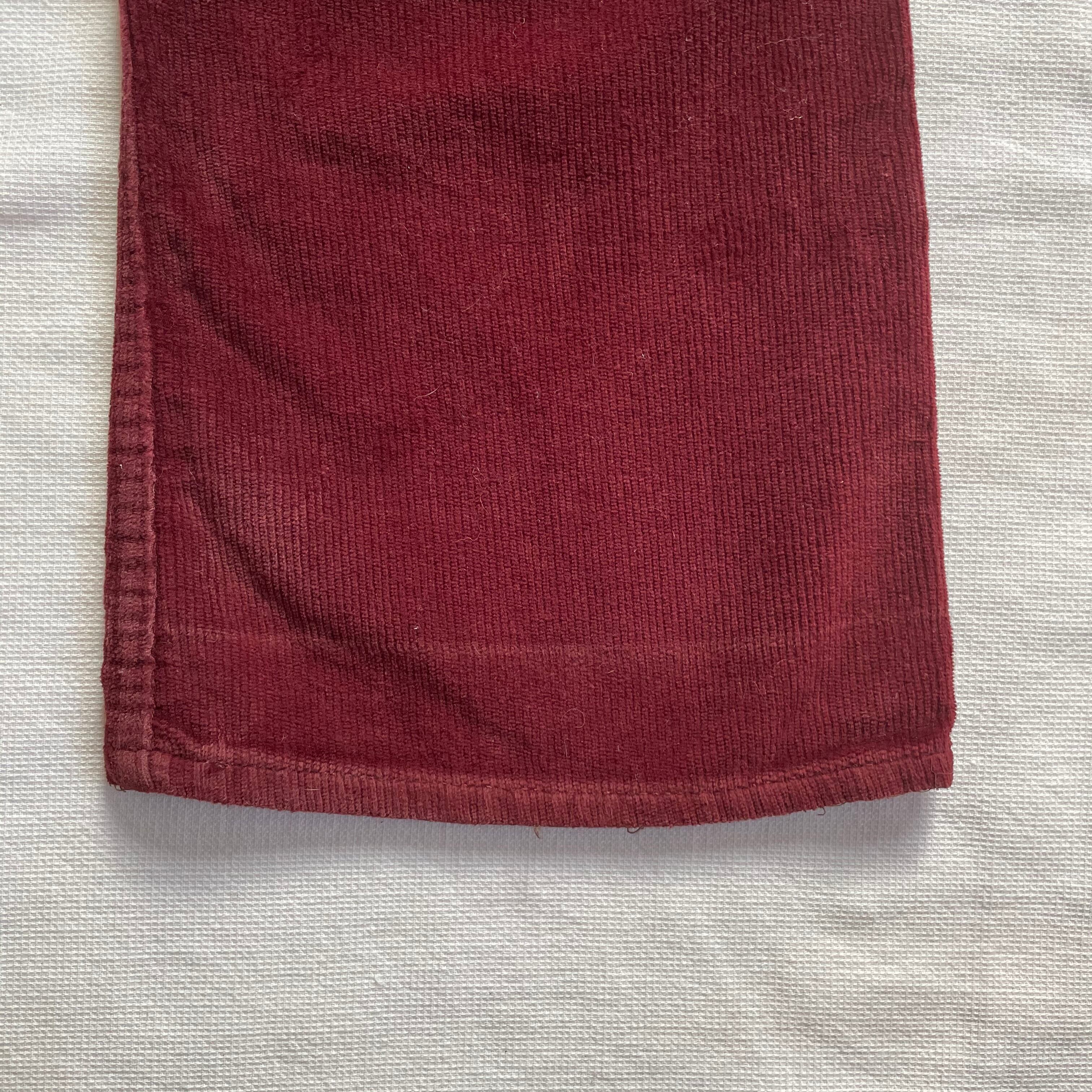 70〜80年代製Levi'sのコーデュロイパンツ。フレアのレングスで、前ポケットになります。差し色にも使えるバーガンディは、季節感を表現できる素材&カラーです。ローゲージのニットや足元はショートブーツやローファーを合わせたコーディネートも素敵です。程よい抜け感も出るLevi'sのコーデュロイパンツはカラーバリエーションを増やして持っておきたいボトムです。