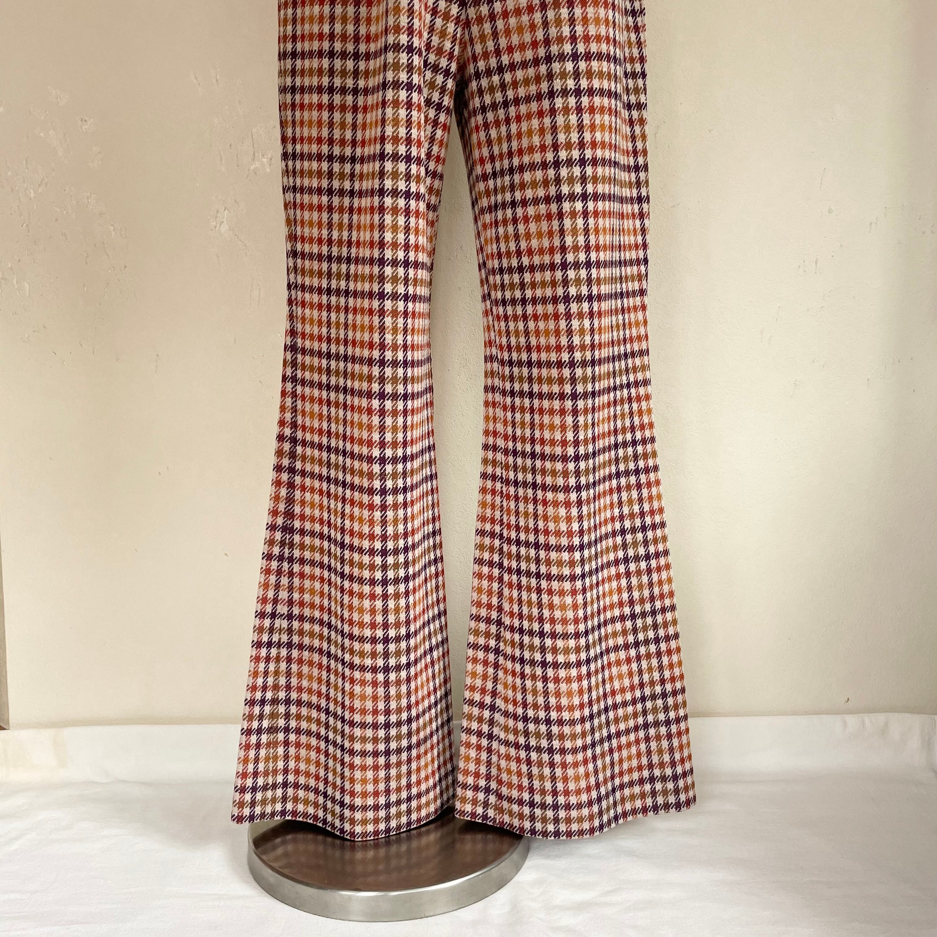 70〜80年代アメリカ製のチェック柄イージーパンツ。ブーツカットのシルエットがレトロな雰囲気を出しながらも今っぽいさもあります。ニットでもジャケットでも、カジュアルにスウェットでも◎足元はショートブーツを合わせて。意外と合わせやすいボトムです。