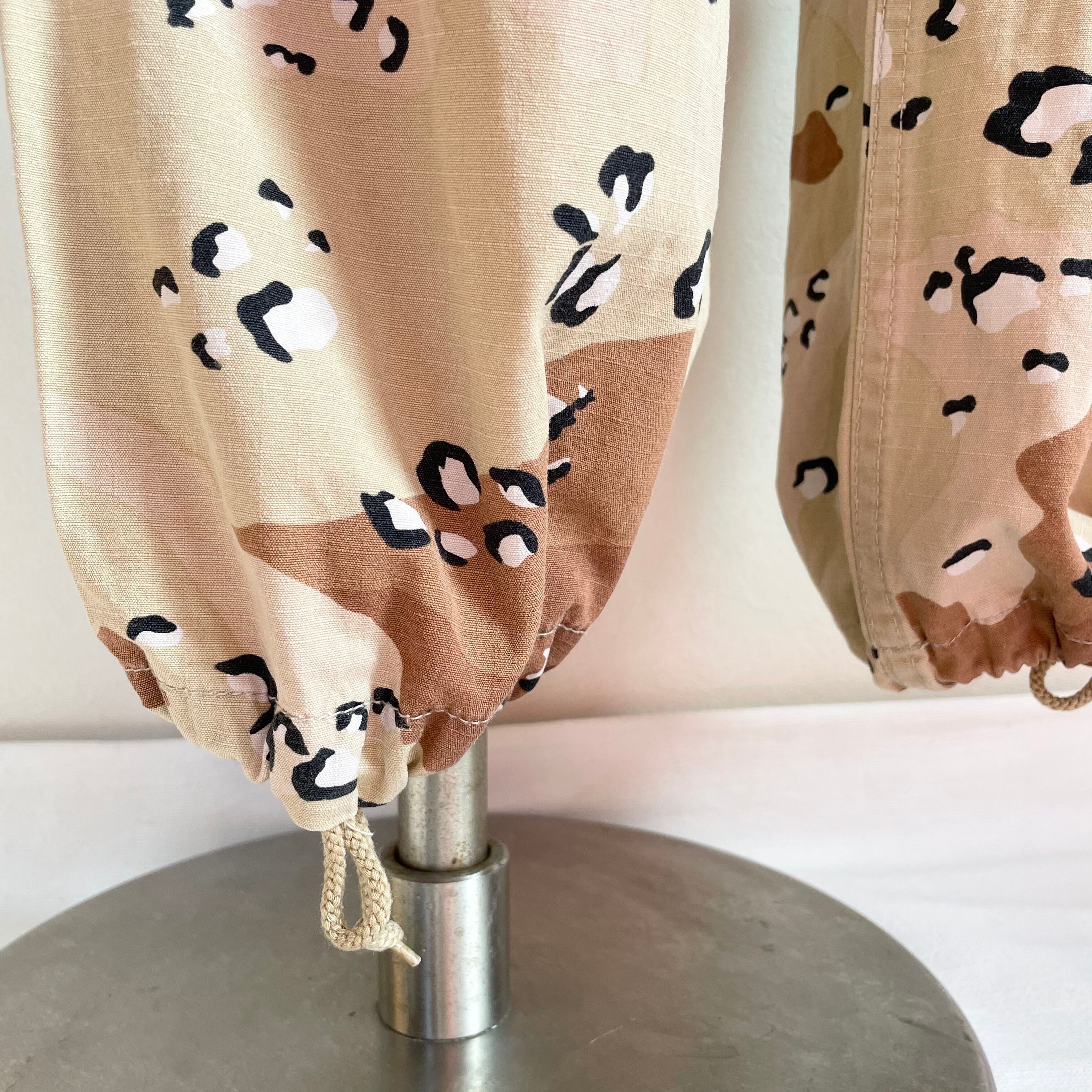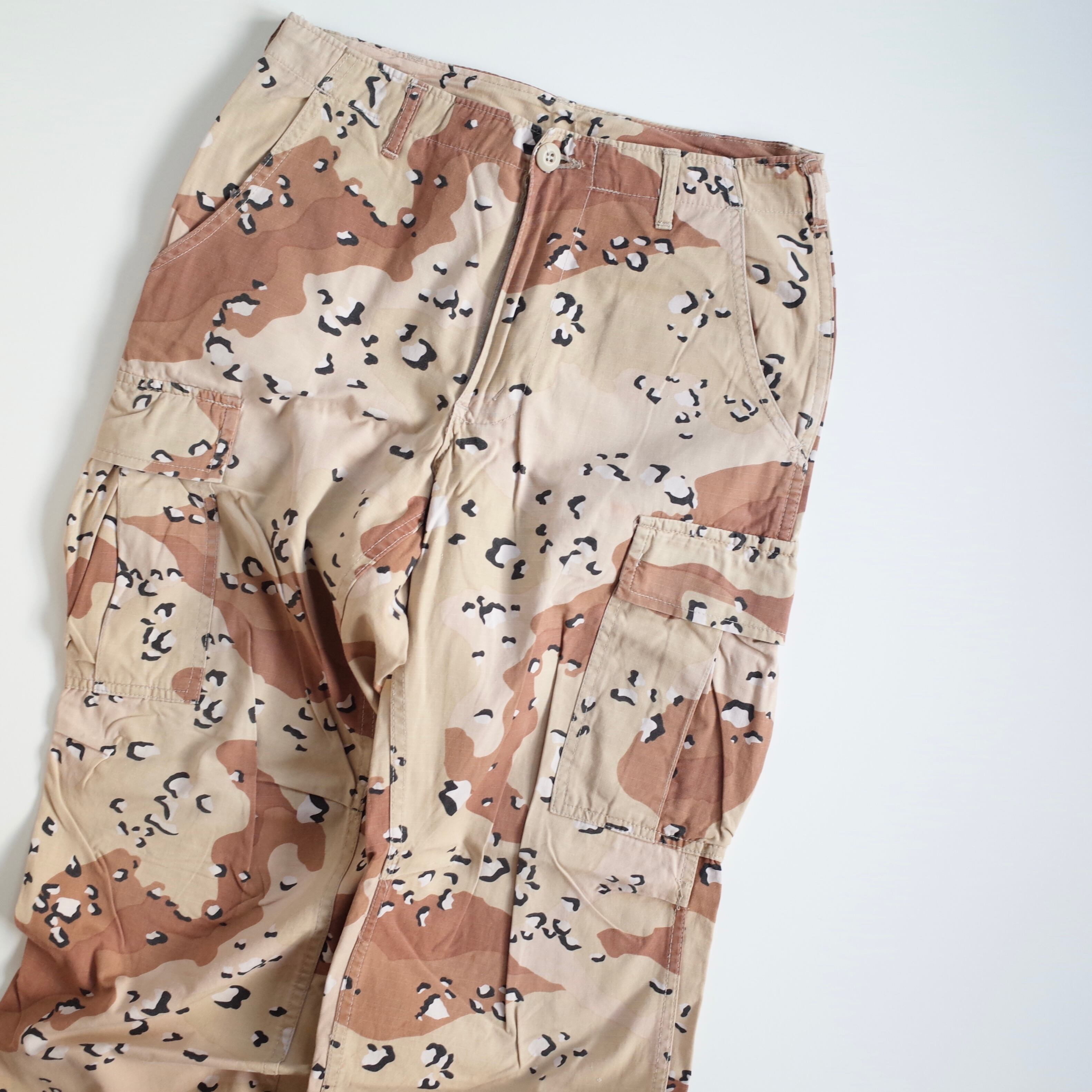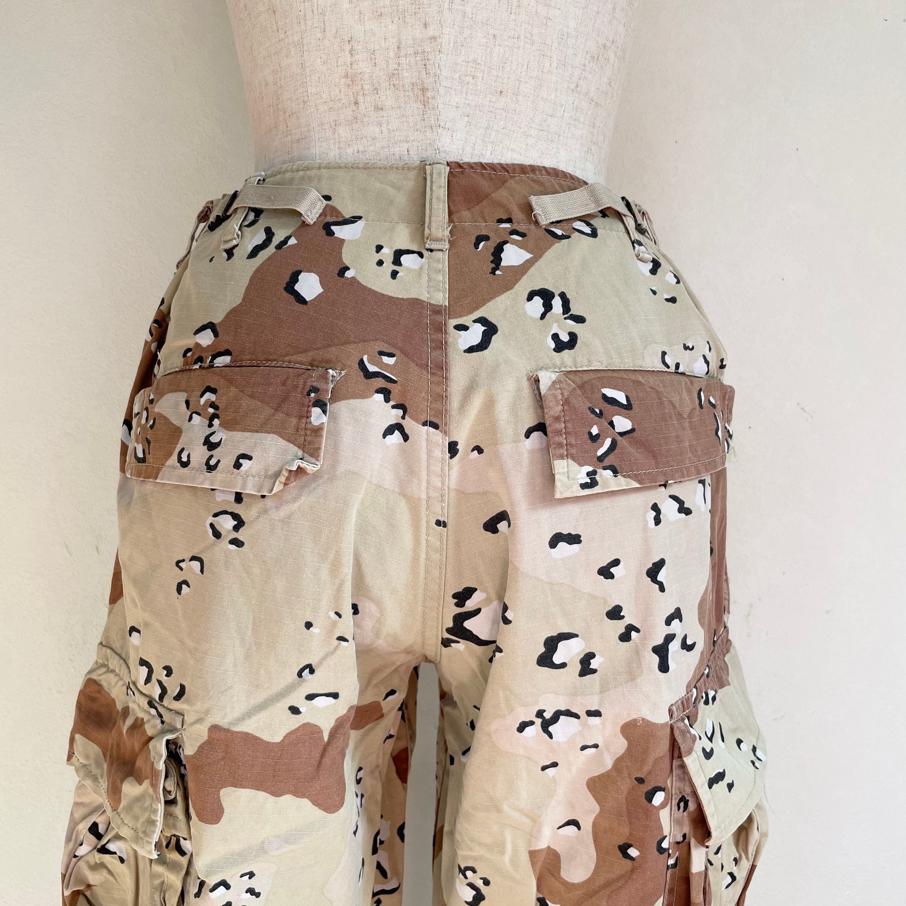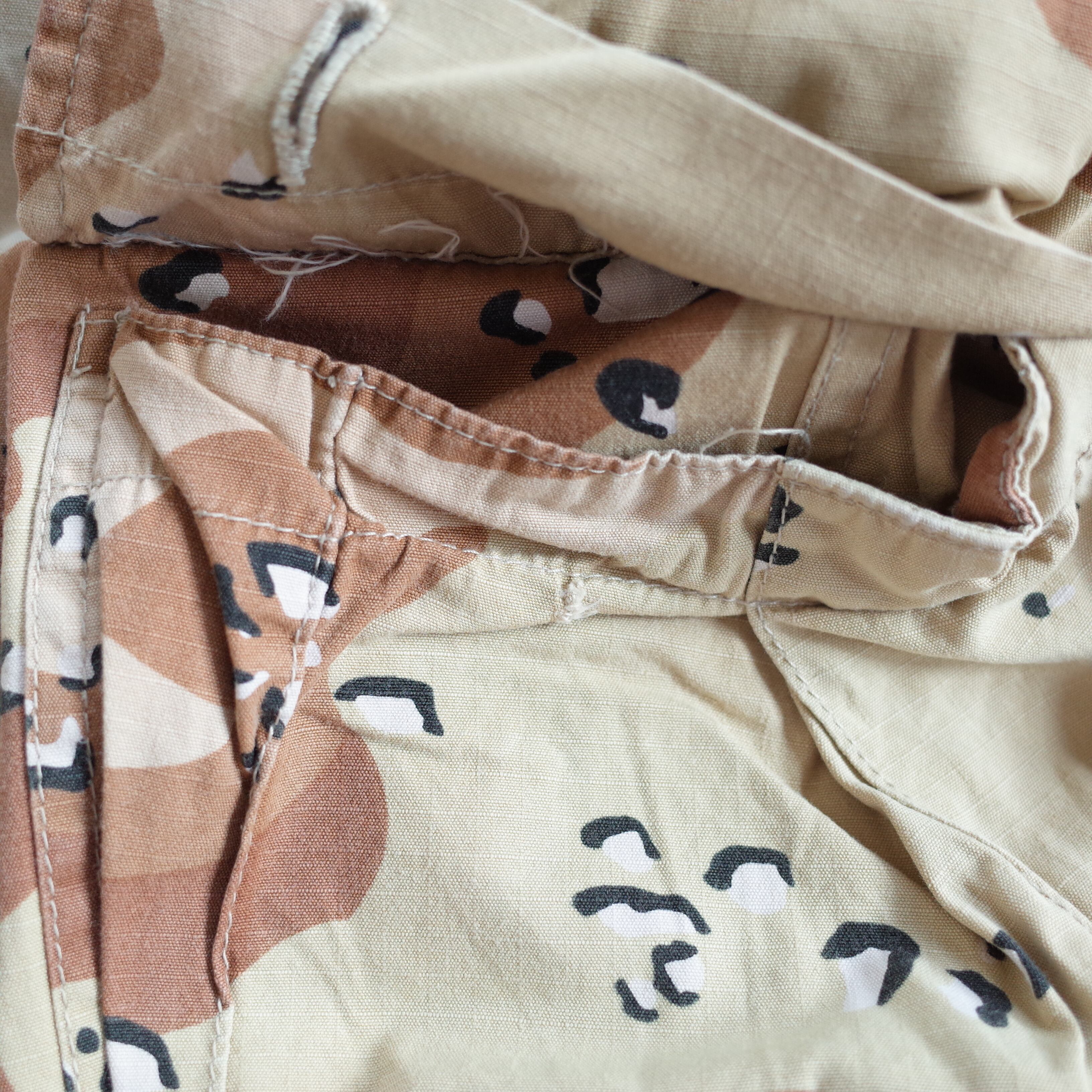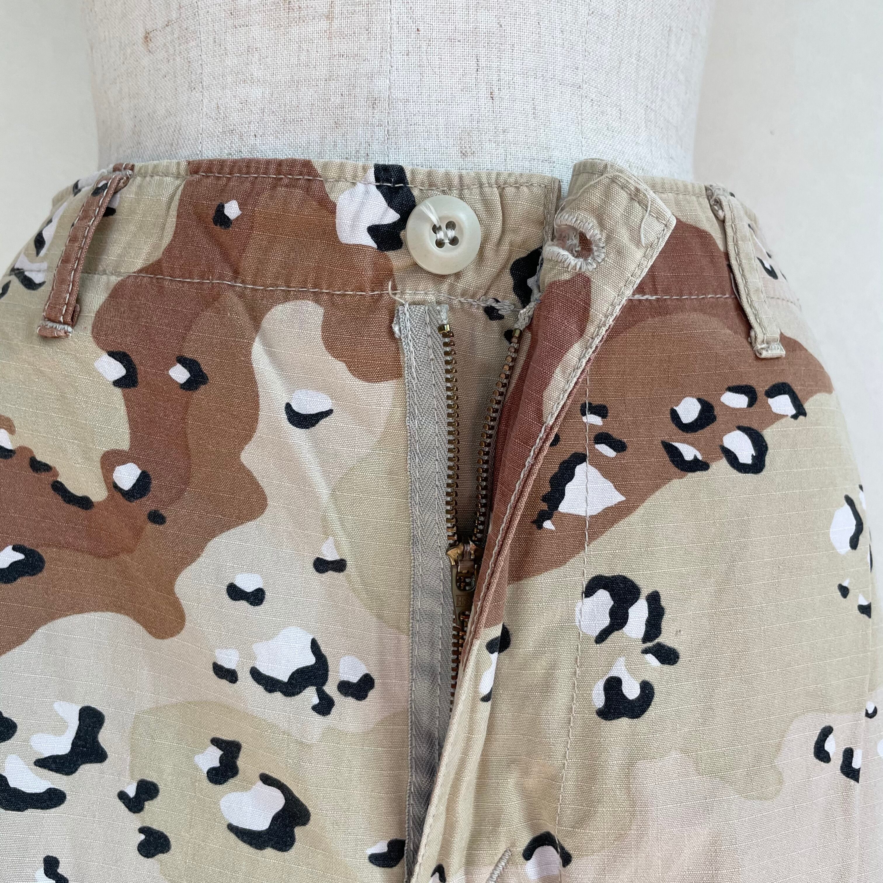 80年代製U.S.ARMYのミリタリーパンツ。砂漠で着用されることが想定されて作られた淡い配色のデザートカモにチョコチップ。裾を絞って、オーバーサイズのローゲージニットを合わせて、足元はショートブーツなど◎メンズライクなミリタリーパンツですが、スタイリングや小物などでアップデートして着用すると可愛いです。