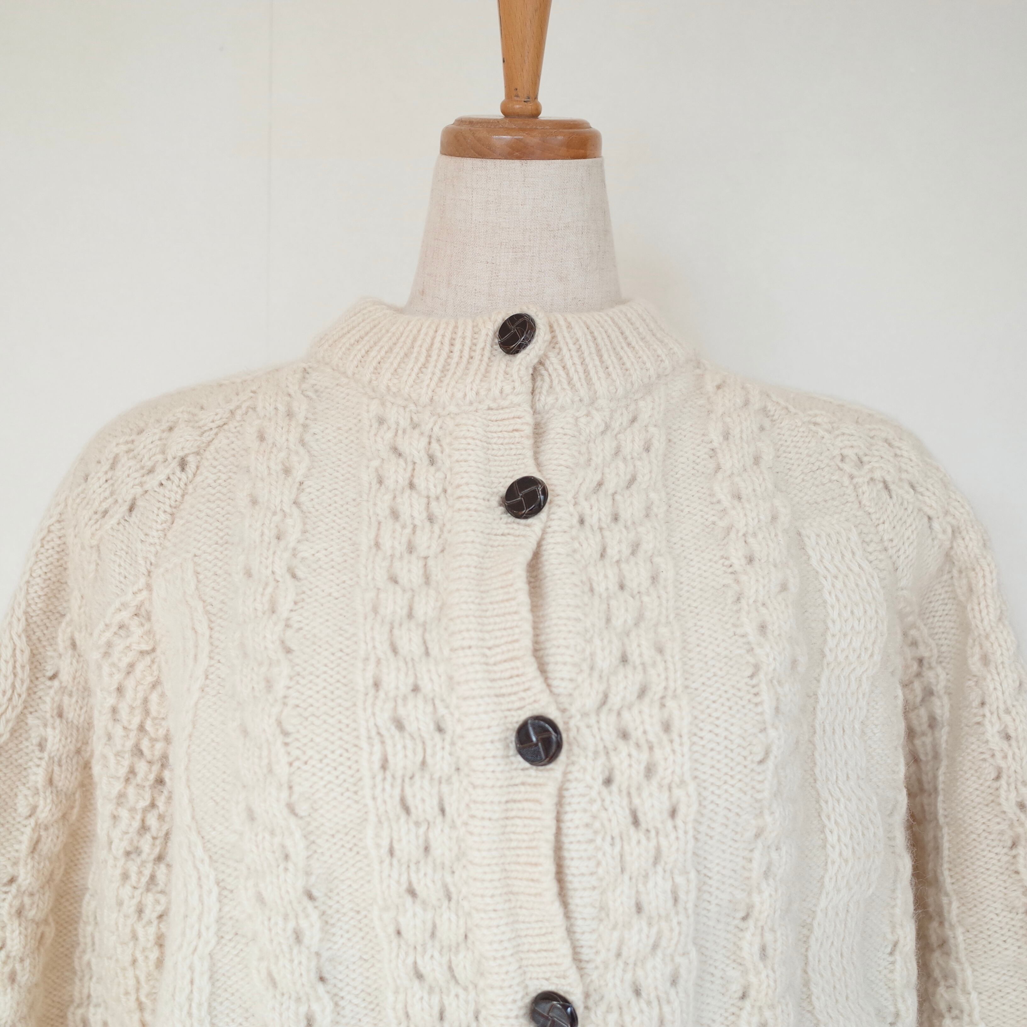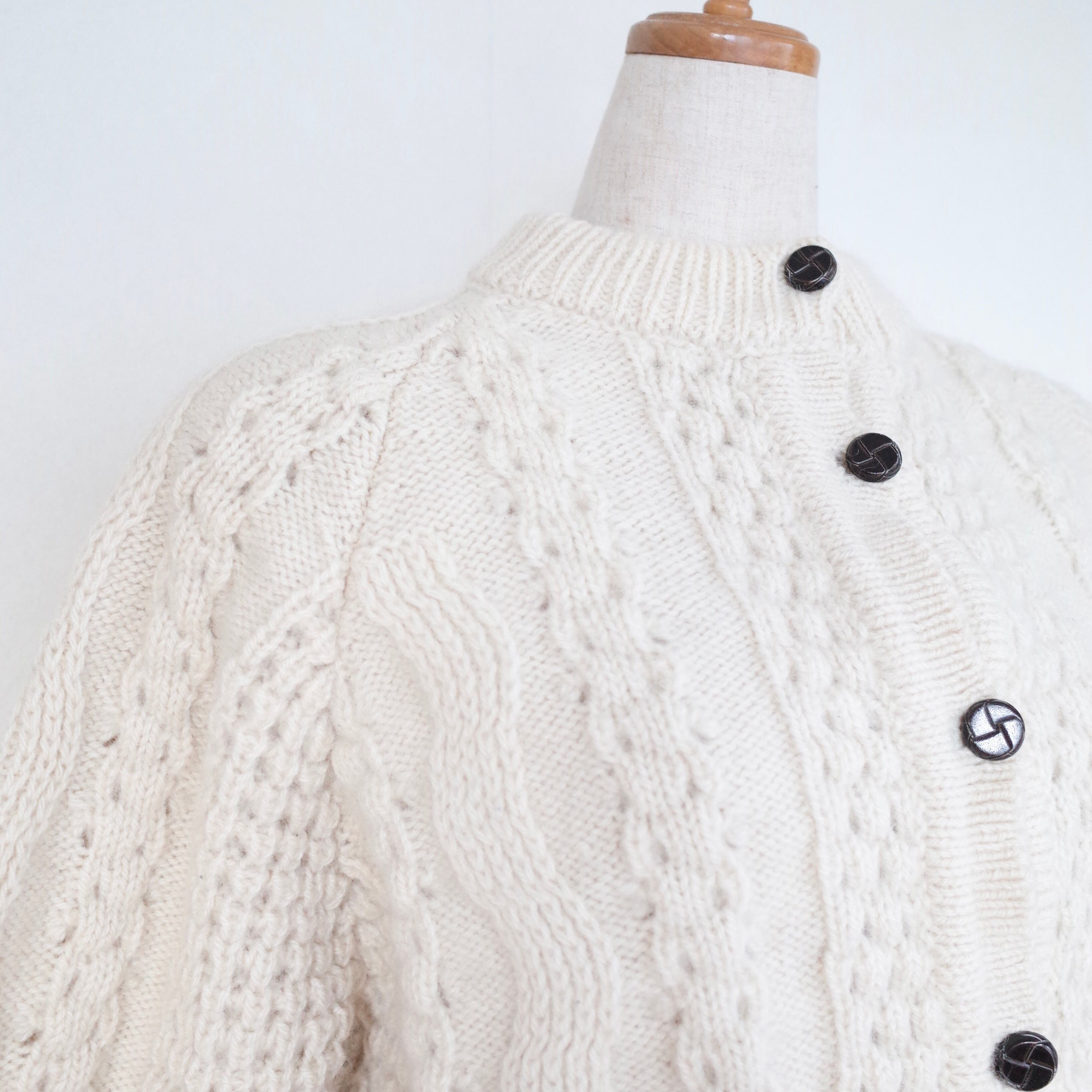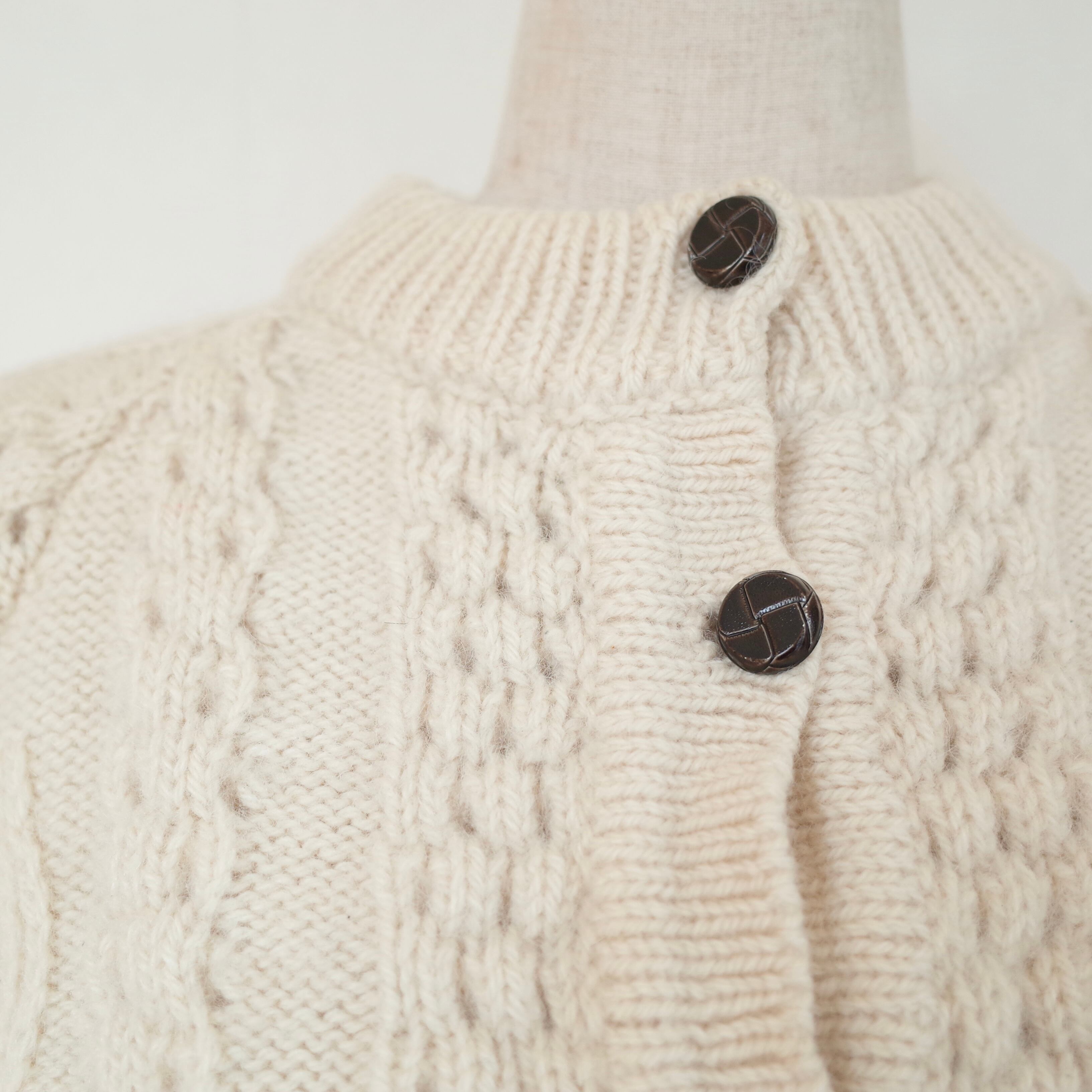 1968年に創業したアイルランドで最も古く、上質な100%メリノウールを使用しているニットメーカーのフィッシャーマンニットカーディガン。冬の着こなしに欠かせない暖かみのあるニットです。サイズも大きすぎず、程良いボリューム感が合わせやすい一枚。今年はフリルブラウスと重ねてデニムなどとスタイリングするのもおすすめです。毎年着方を変えながら長く愛用できる冬定番のニット。