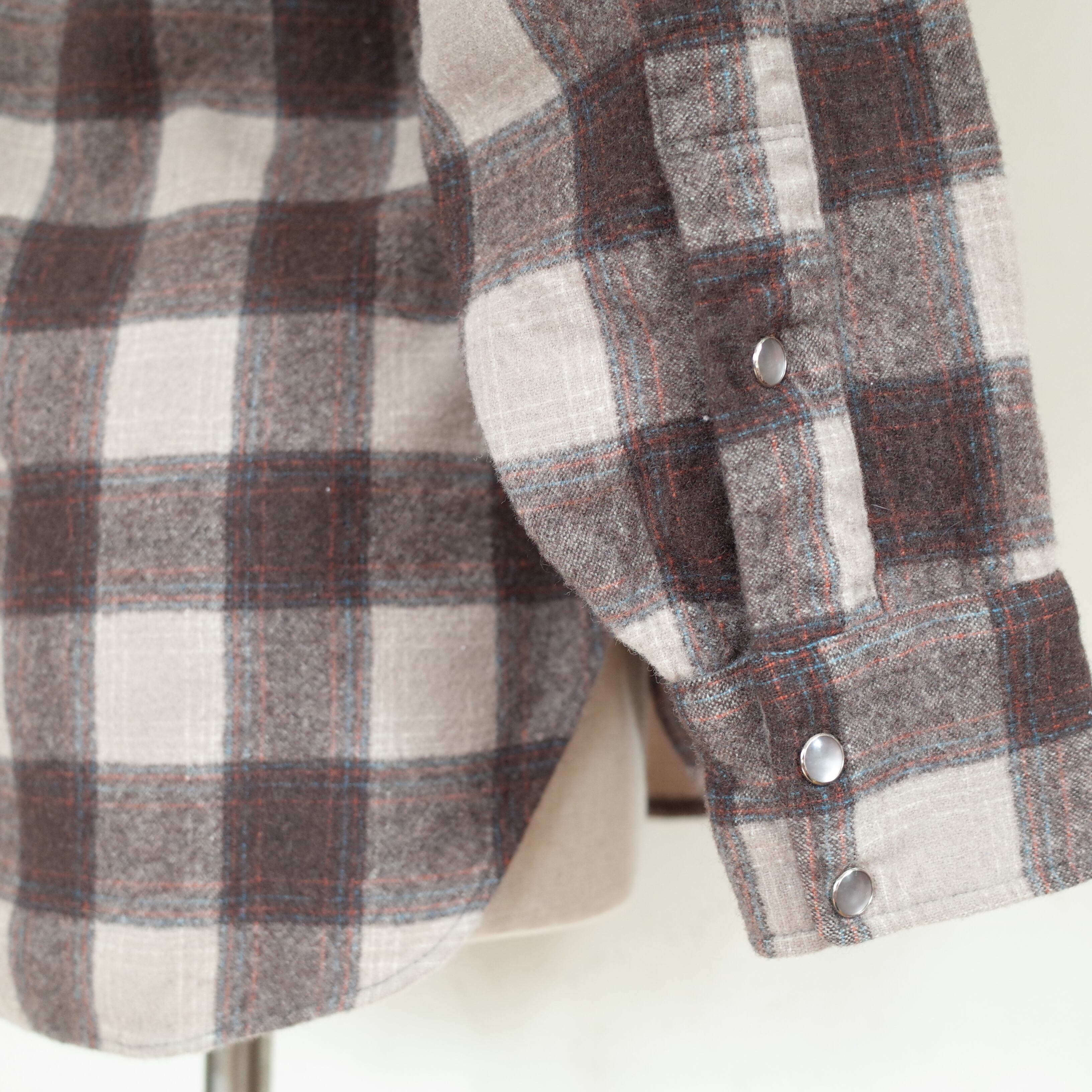 70年代アメリカ製PENDLETONのウールシャツです。創業当初より選びぬかれた羊のVIRGIN WOOL100%に拘り続けているPENDLETONのウールシャツは柔らかくて軽く、着心地も抜群です。それでいて保温性にも優れています。スナップボタンで着脱も楽ちん。春先まで着られます。現行にはないヴィンテージらしい雰囲気が詰まった一着です。