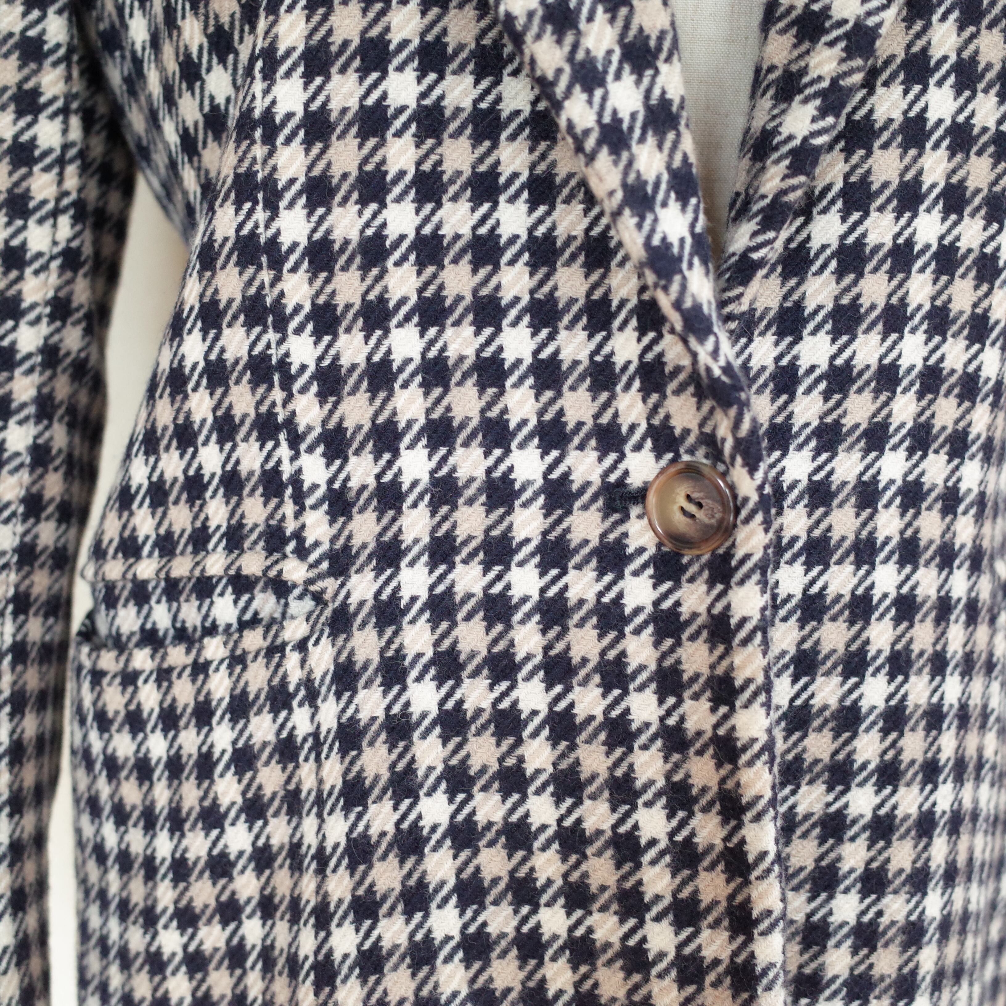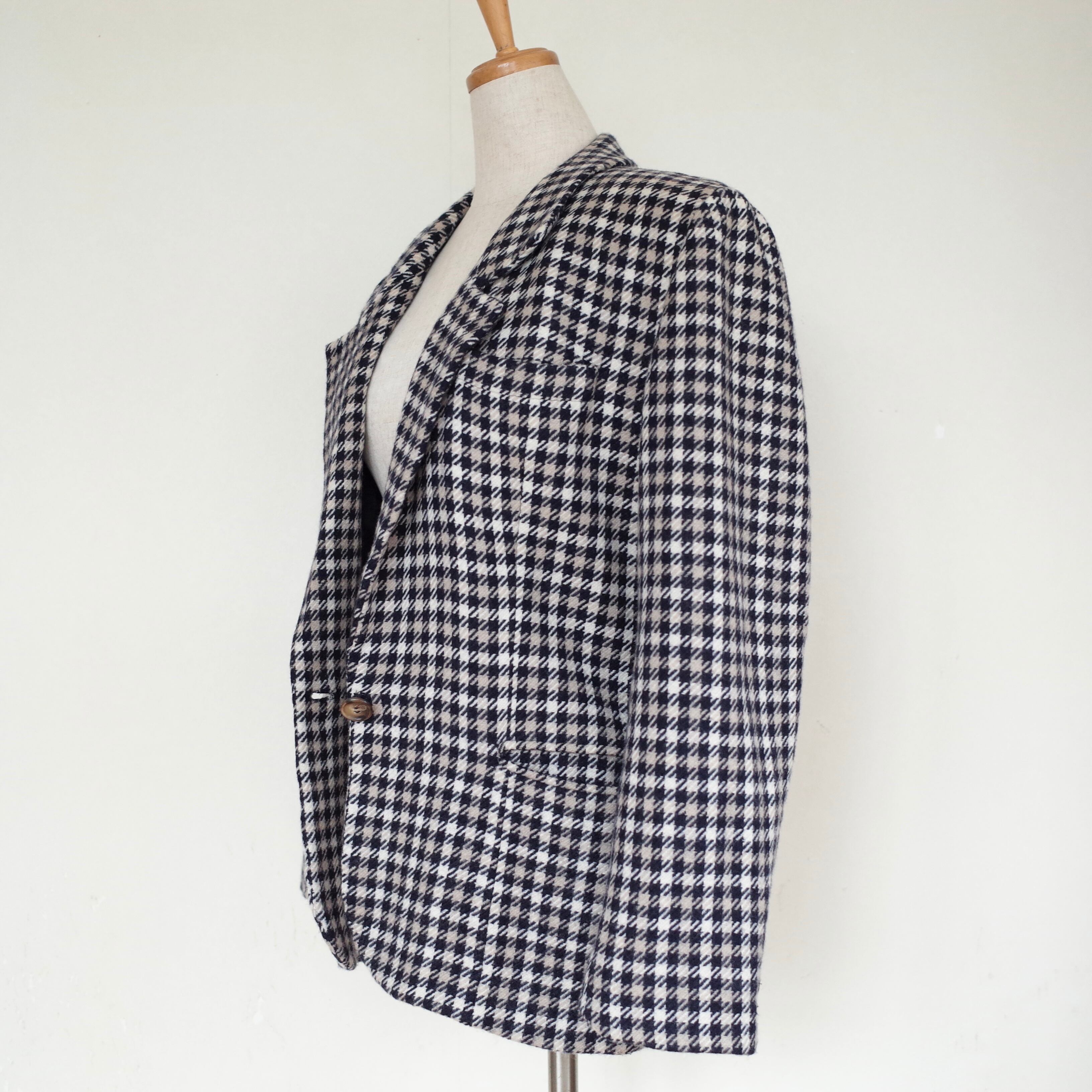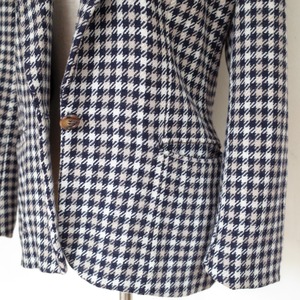 Liz Claiborneのウールチェックジャケット。韓国製です。ネイビー×ベージュ×ホワイトの好配色。程よくカジュアルで、柔らかい雰囲気の一着。今っぽいゆったりめのシルエットで抜き襟をして羽織ってもかわいいジャケットです。