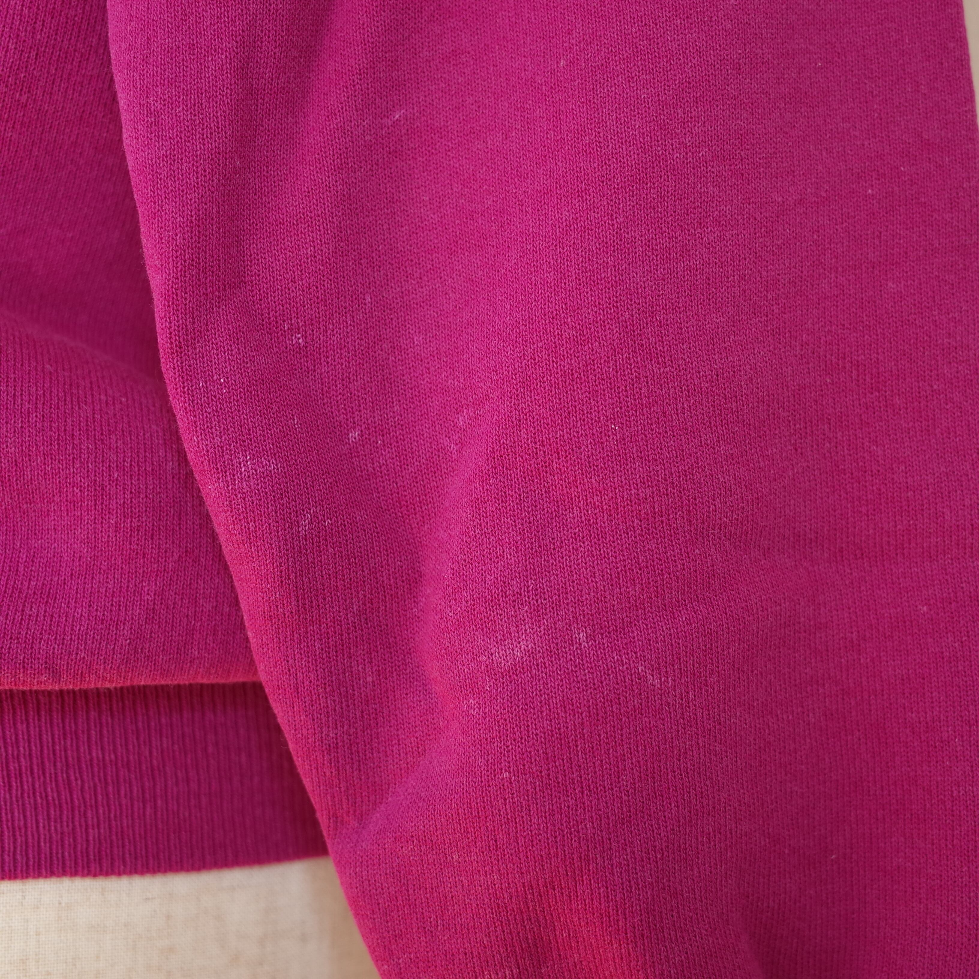 80年代アメリカ製Hanesの無地スウェットです。着込まれてクタクタ生地のヴィンテージならではな一枚。明るく鮮やかなピンクとパープルの中間色、マゼンダがグッドカラーなスウェット。差し色としても使える無地のスウェットはカラーバリエーションを持っておきたいアイテムのひとつです。
