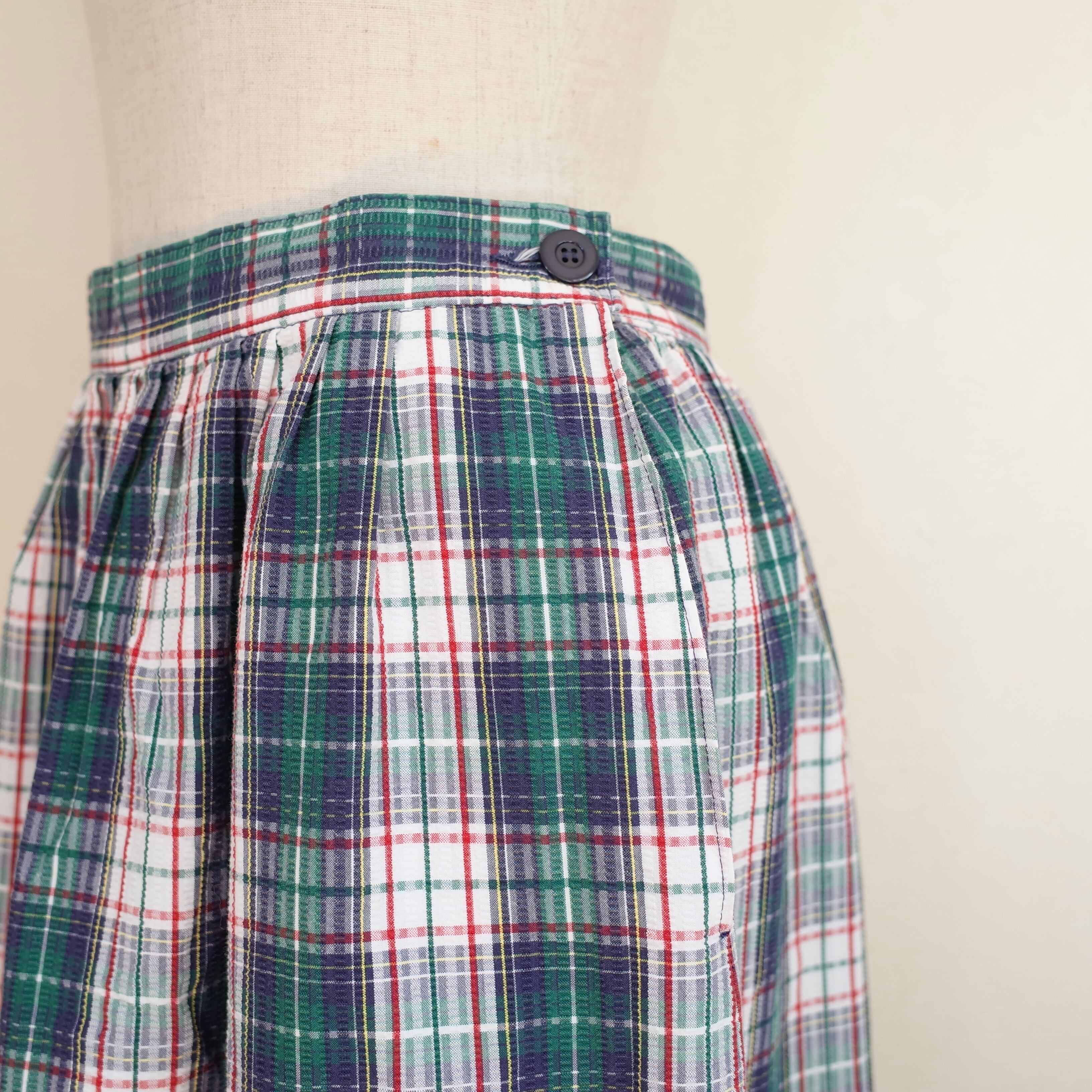 70〜80年代アメリカ製MISS SOPHISTICATES by PENDLETONのチェックスカート。張りのあるコットン100%の生地。爽やかなチェックの配色も抜群です。プリントTシャツと合わせてポップな雰囲気あるスタイルに◎