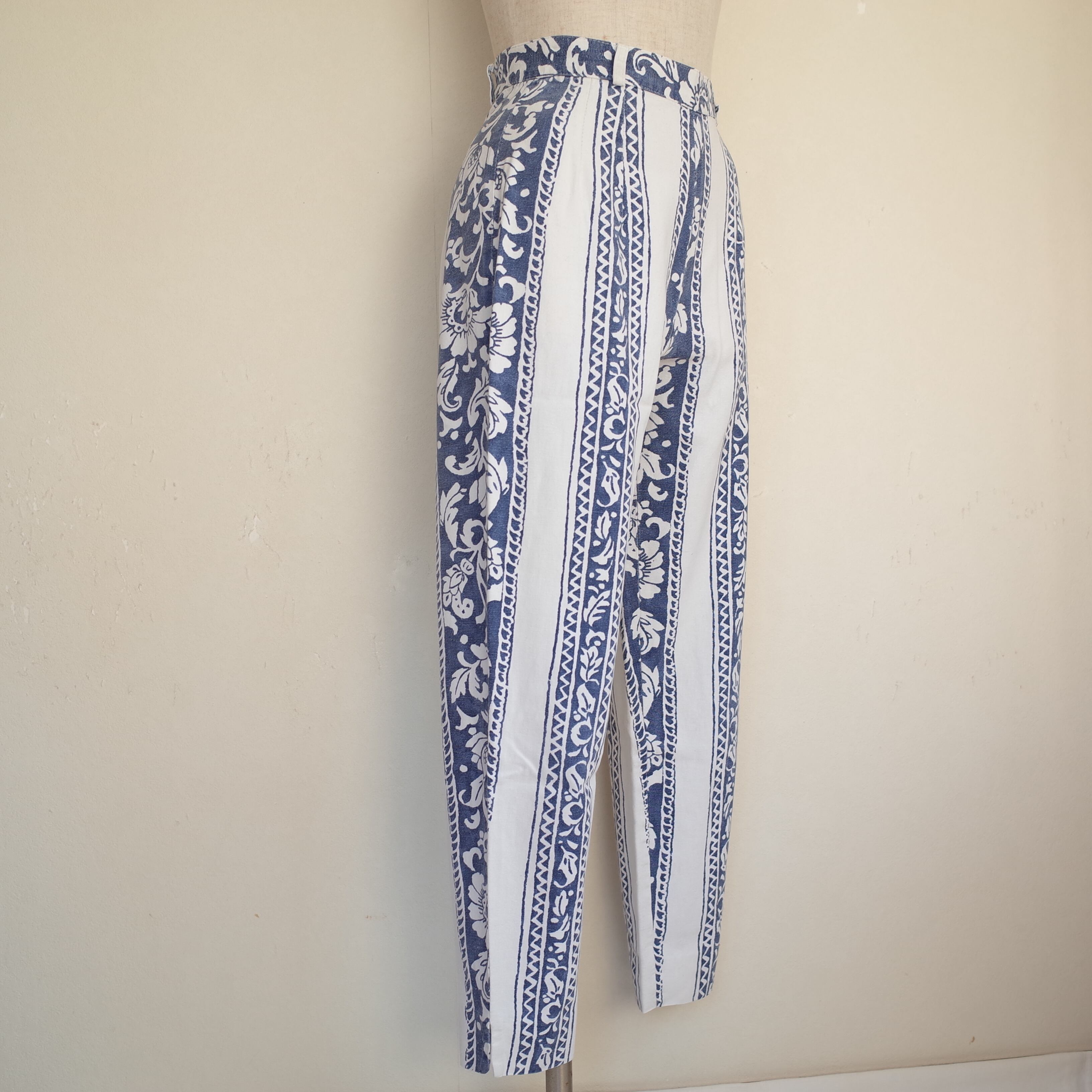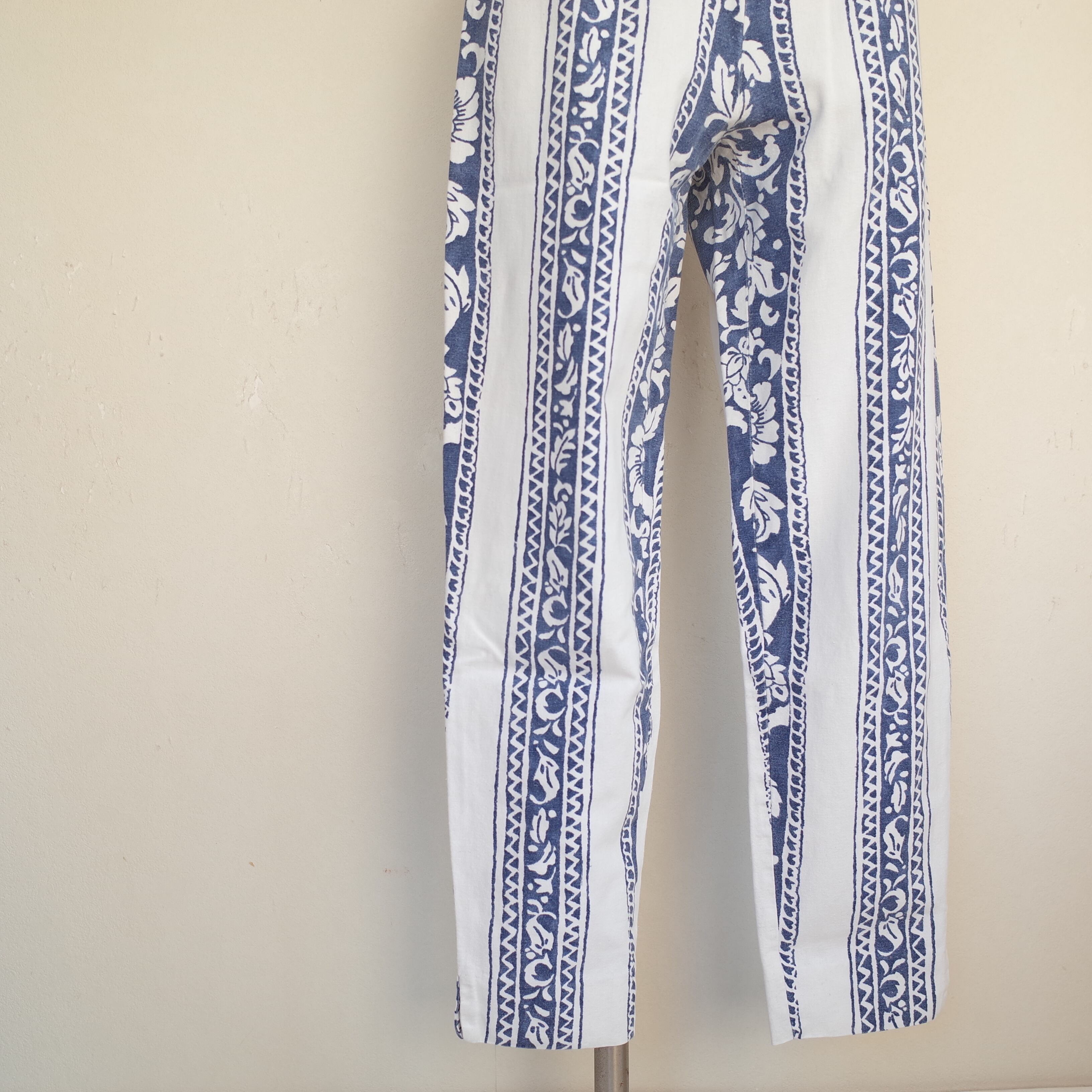 フランス製のボタニカル柄パンツ。コットンリネンの天然素材が気持ち良い肌触り。ジップがサイドに付いたシンプルなデザインです。オーバーサイズのシャツと合わせたり、ワンピースの下に履いても◎