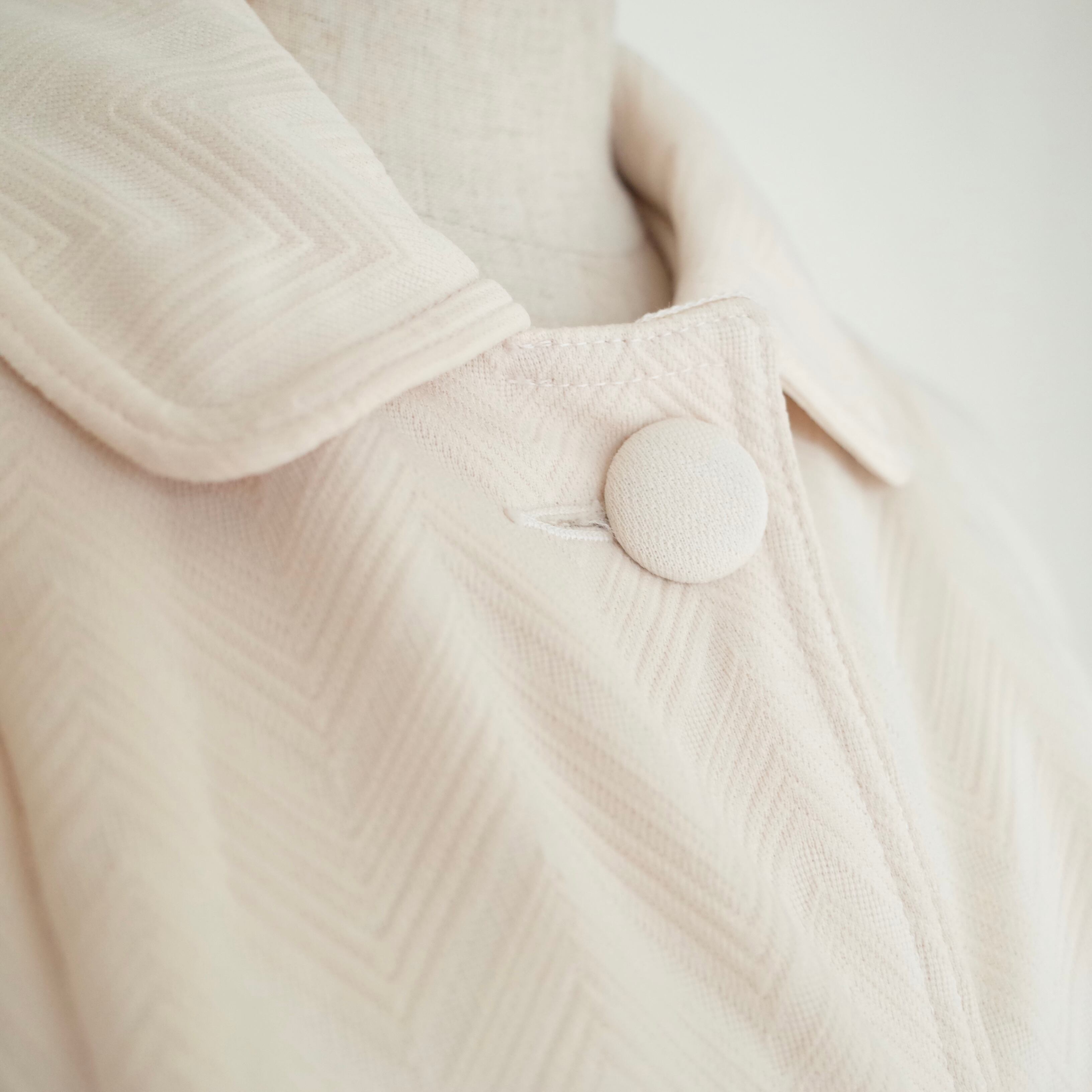 サラッとしたヘリンボーン生地が魅力的なヴィンテージのオールウェザーコート。その名前の通りにどんな天気にも適した万能なアイテムです。同生地のくるみボタンもレトロな雰囲気が漂います。ワードローブに一着あると便利な一枚です。