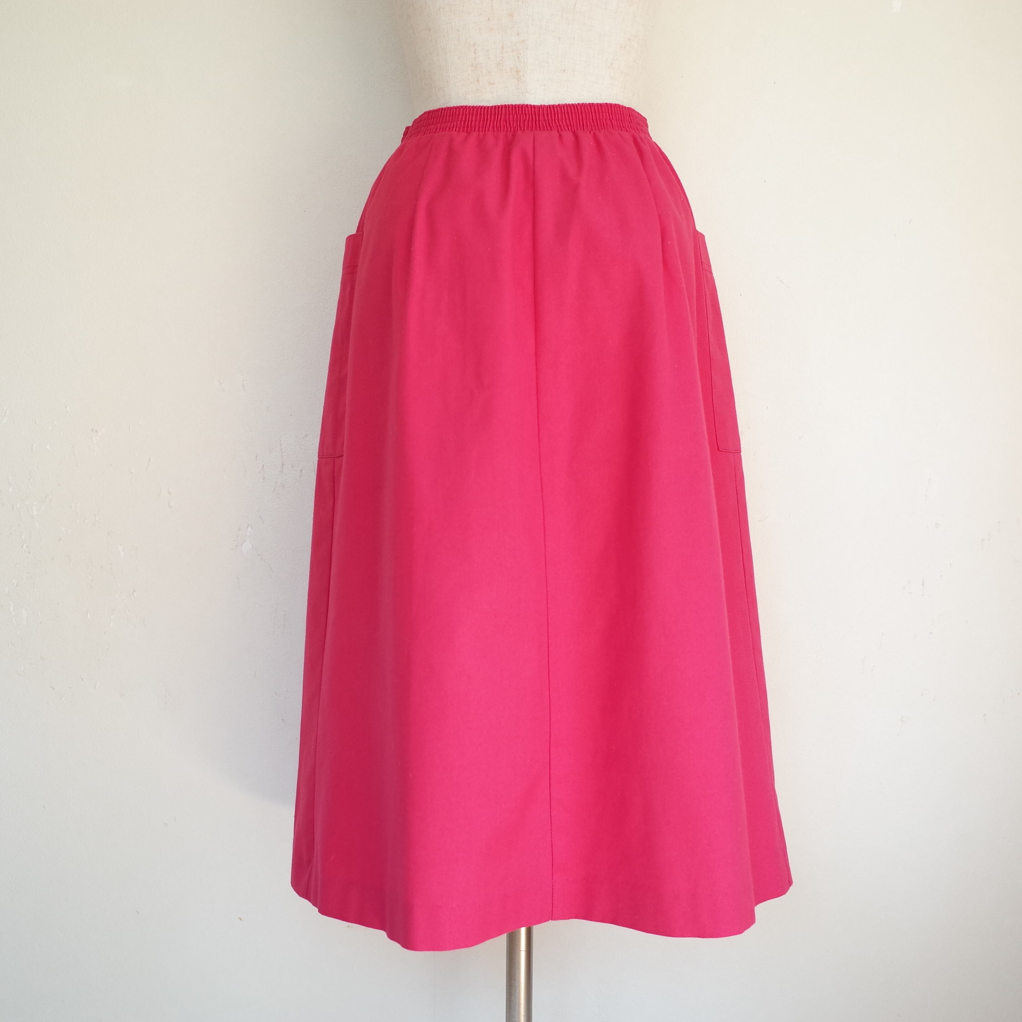 80年代アメリカ製のロングスカート。ビビットなピンクカラーと、ホワイトのスナップボタンのバランスがかわいい一枚。大きな両サイドのポケットも80sらしいレトロな雰囲気が漂うディテールです。