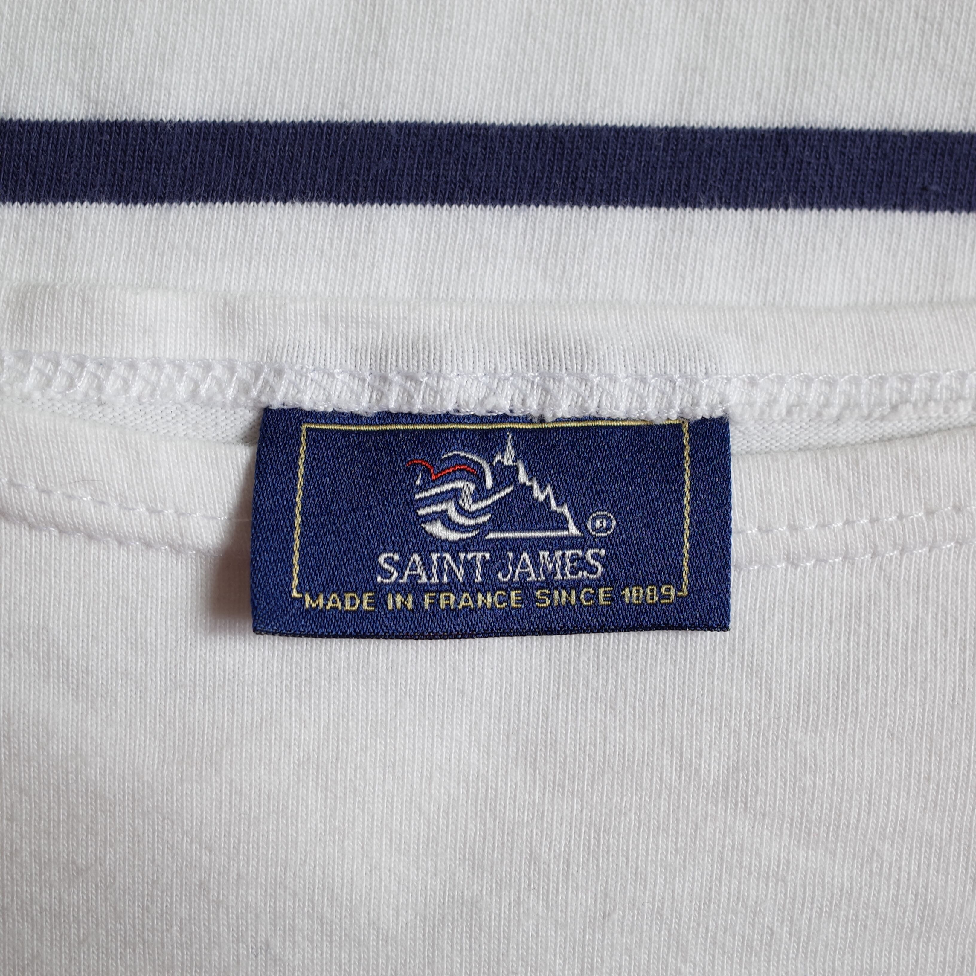 80年代フランス製Saint Jamesのボーダーカットソー。薄手の生地に、部分的なボーダー使いがアクセントとなりフレンチカジュアルを思わせる爽やかな印象。上品に着こなしたいデザインです。ユニセックスで着用頂けるサイズ感で、女性が着用するとオーバーサイズがかわいいです。肩が落ちている感じがより抜け感を演出してくれます。