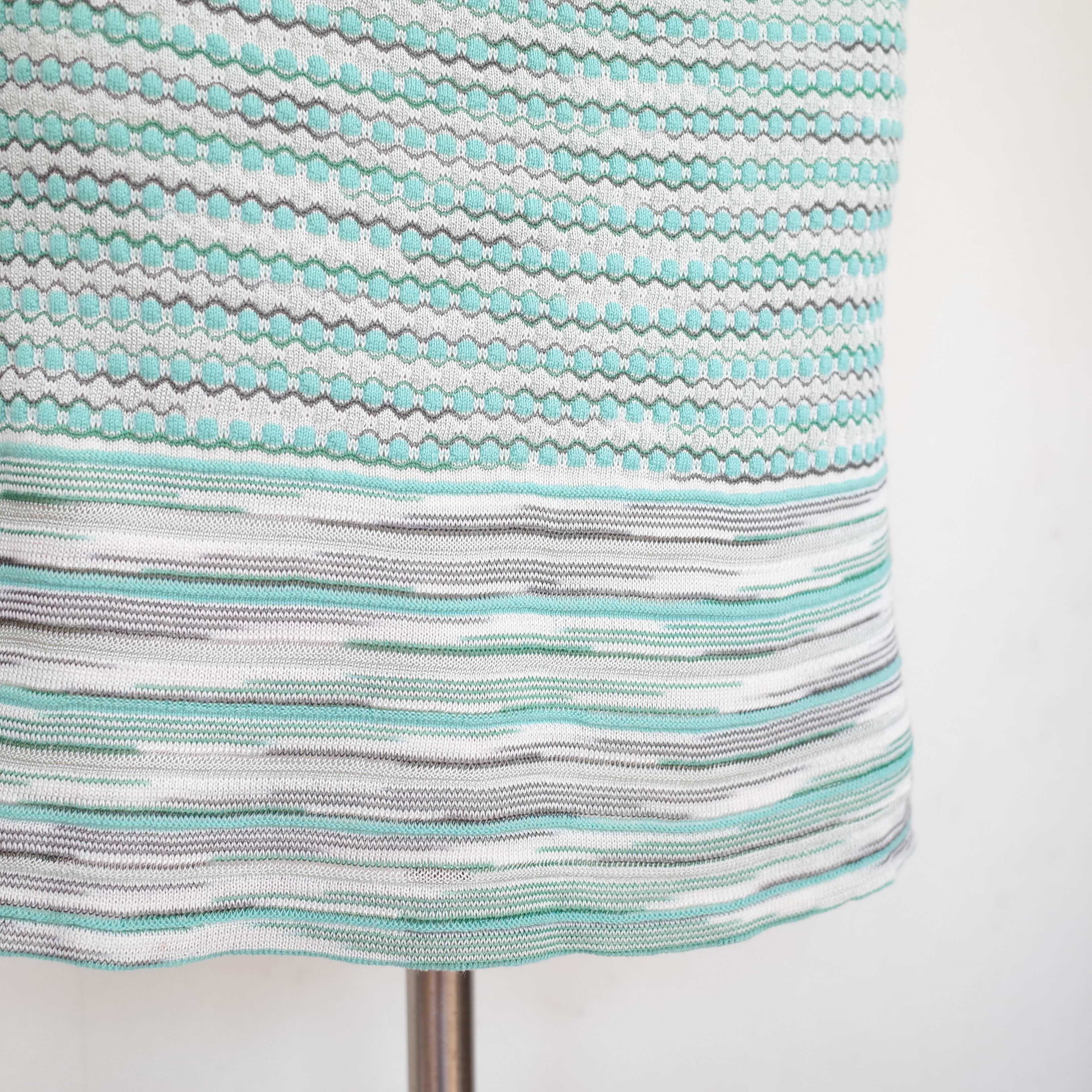 MISSONIのニットスカート。膝丈でMISSONIらしい柄と配色がかわいいスカート。裏地付きなので一枚で着用頂けます。デニムなどボトムにレイヤードしても◎夏に向けて、Tシャツとサンダルのラフなスタイリングもおすすめです。