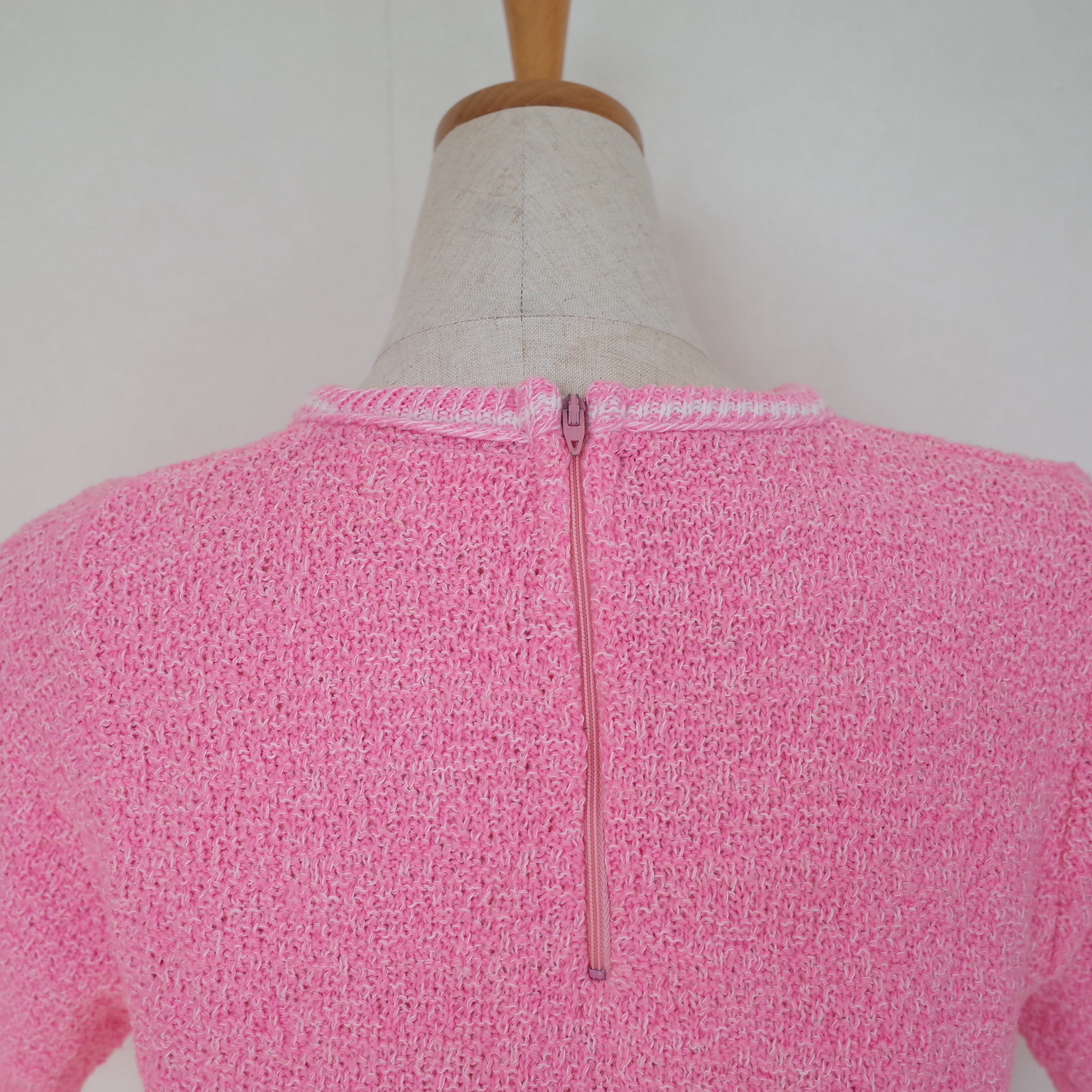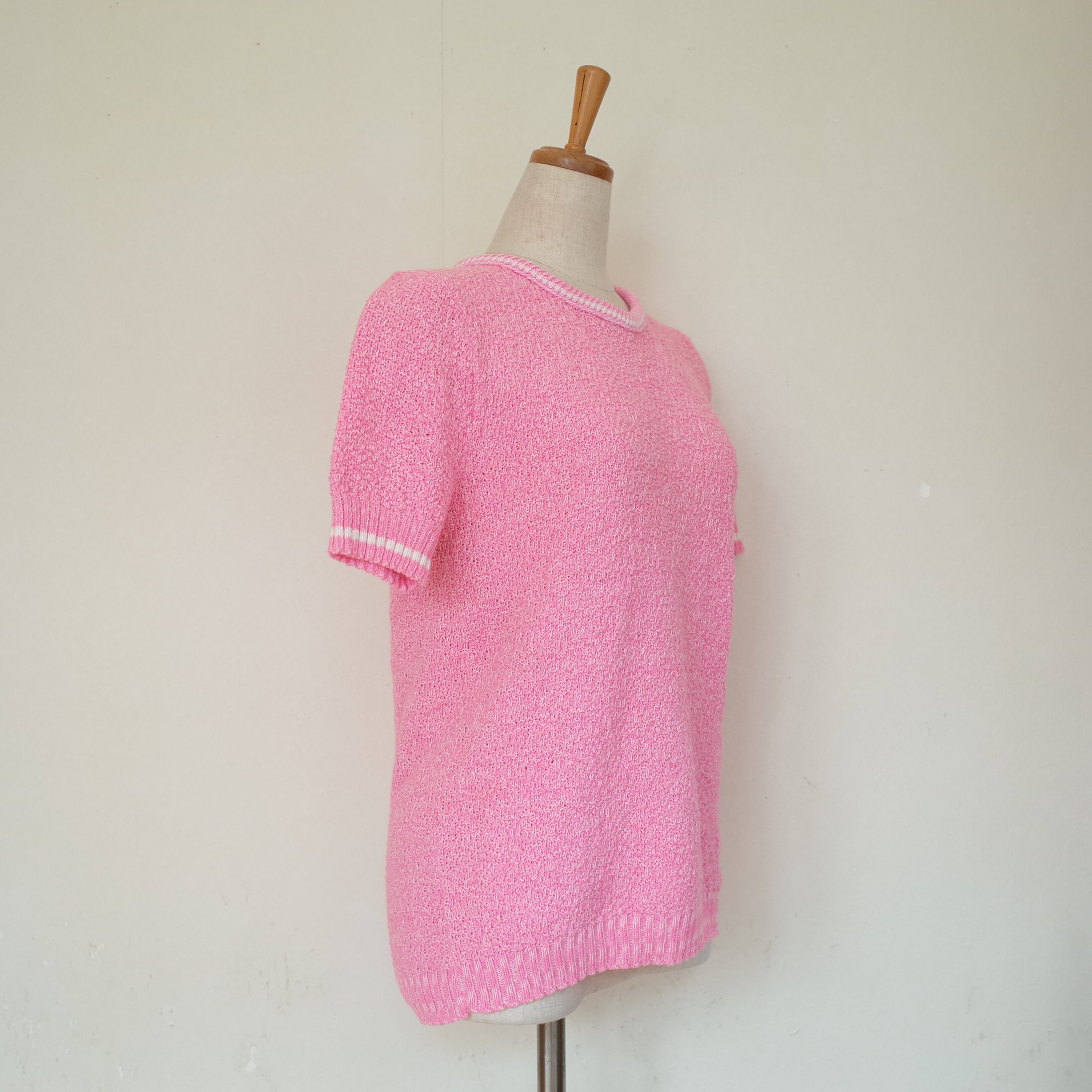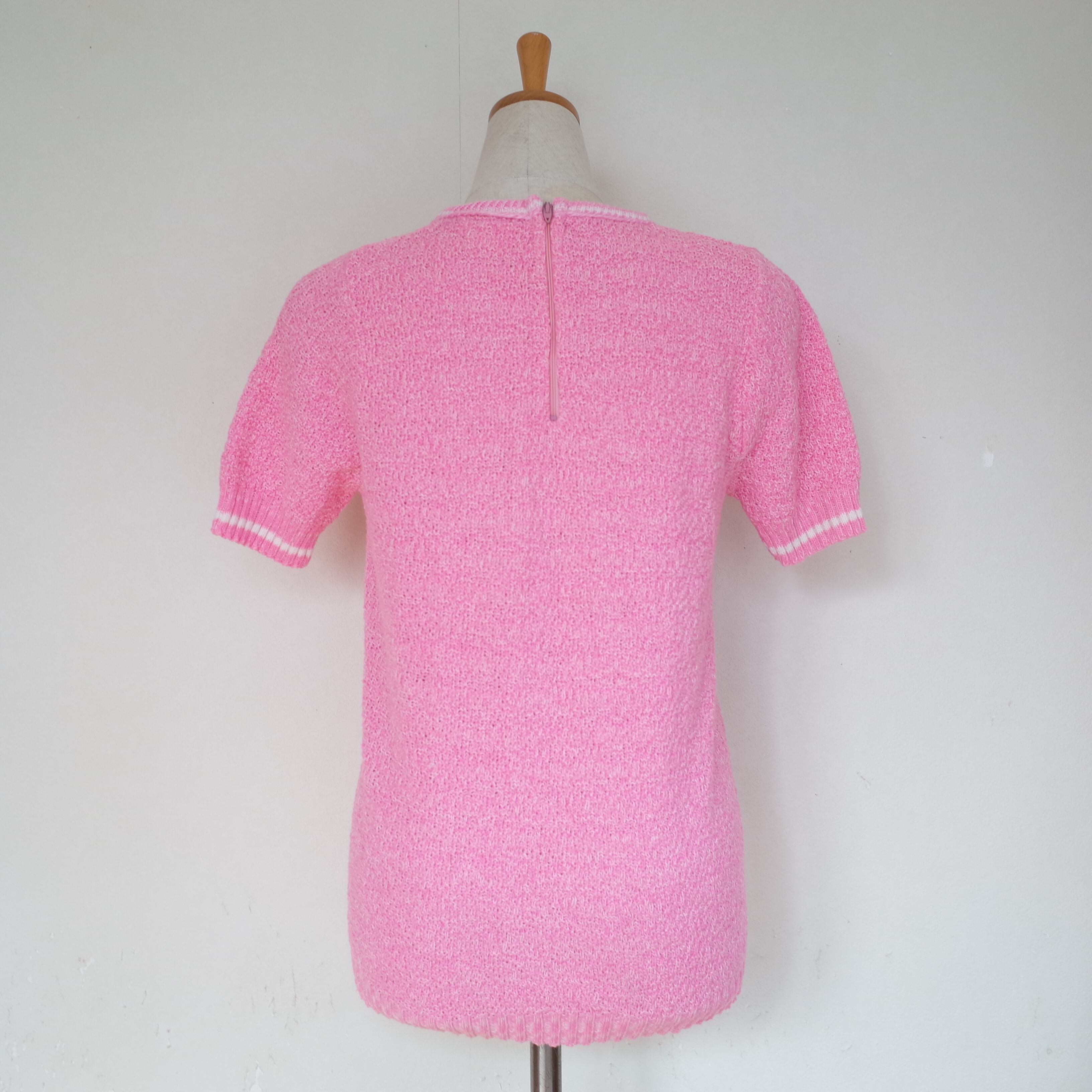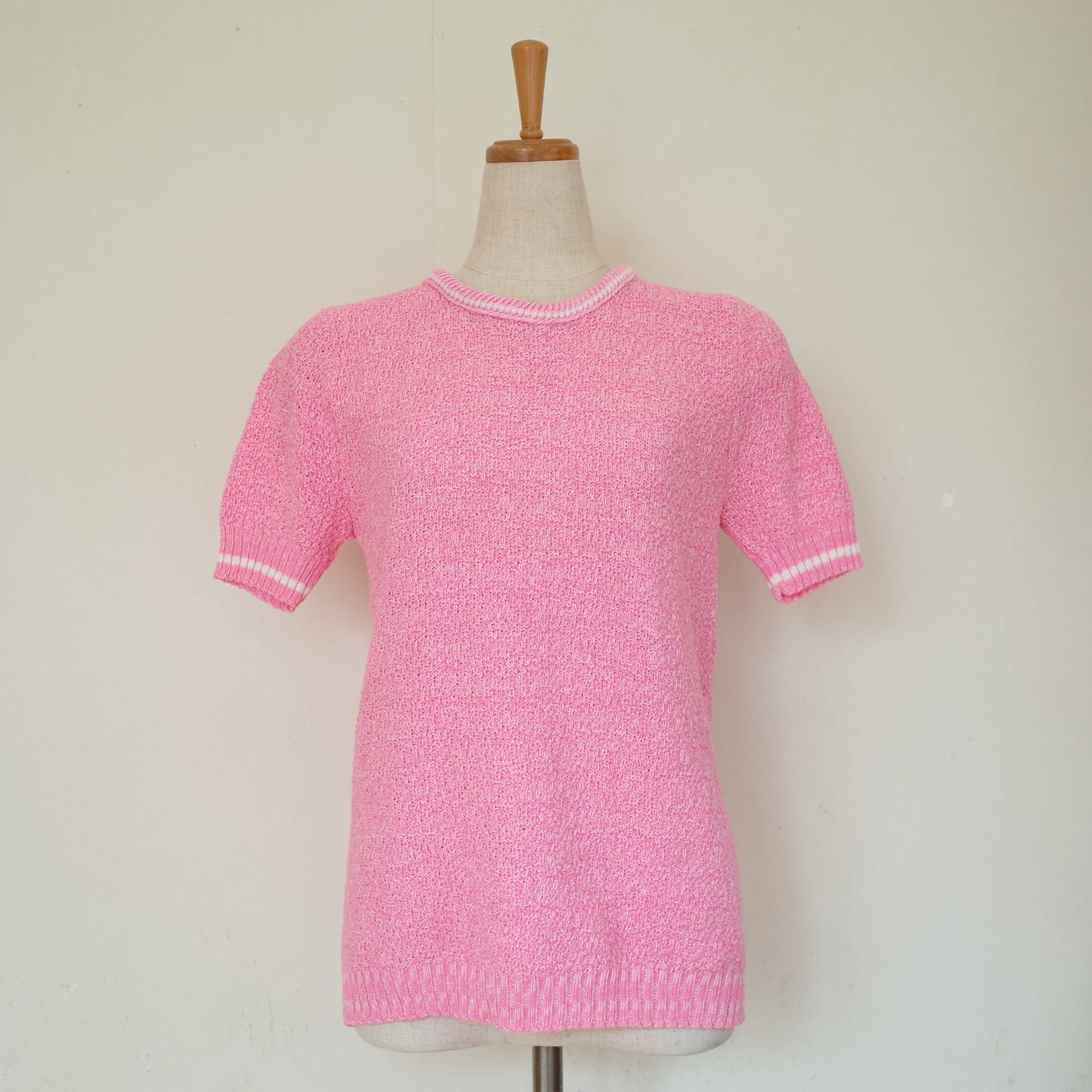 ビビットなピンクが目を惹くサマーニット。レトロな雰囲気のカラーが着こなしのアクセントになります。コーディネートの差し色にもピッタリな一着です。