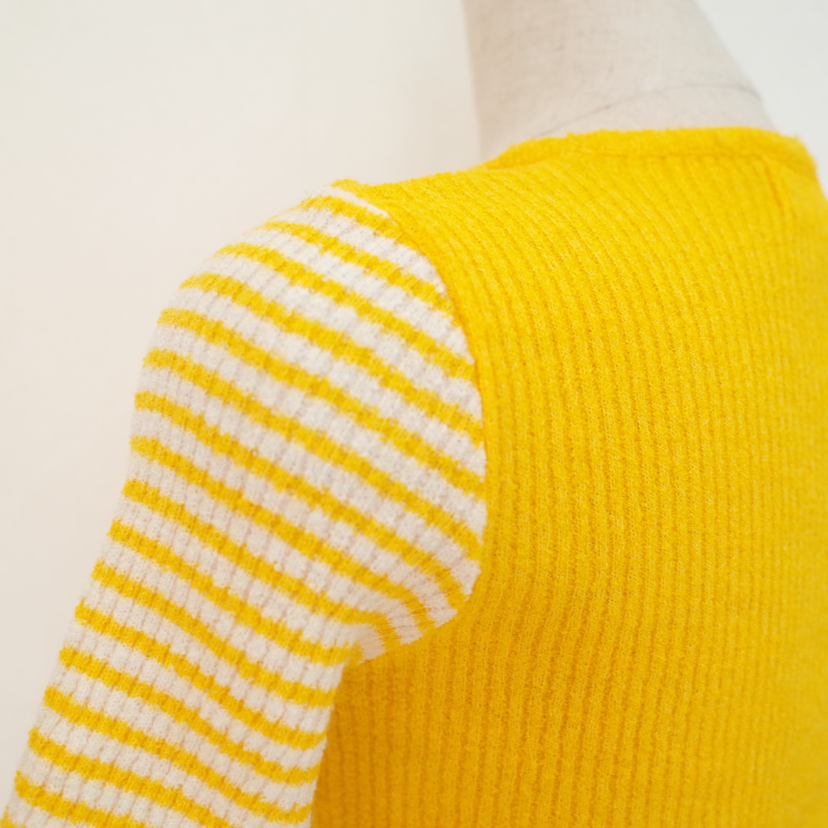 ビビットなイエローが目を惹くサマーニット。レトロな雰囲気のカラーが着こなしのアクセントになります。コーディネートの差し色にもピッタリな一着です。