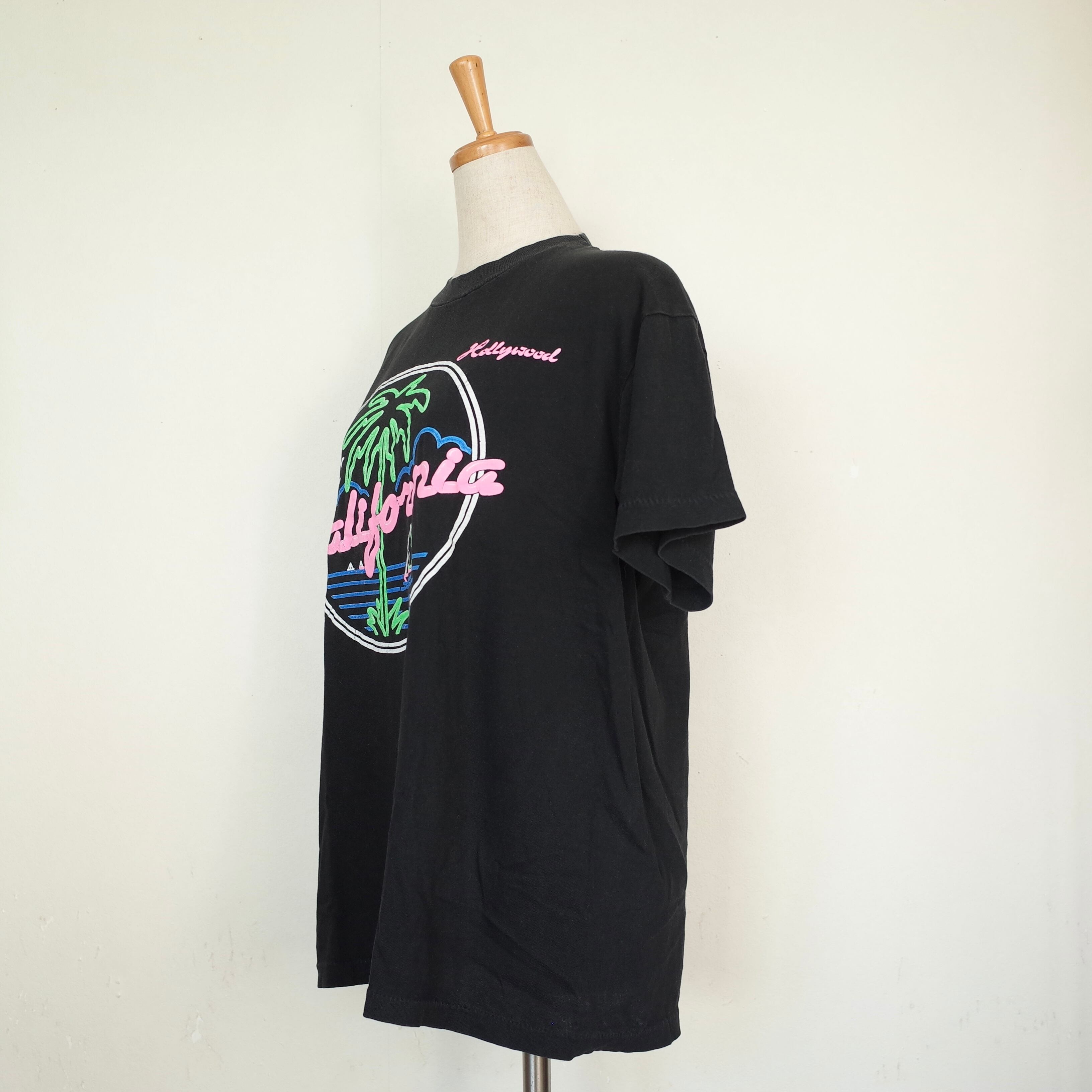 黒地に、遊び心のあるネオン管のプリント。ゆったりサイズで、目を惹く一枚。