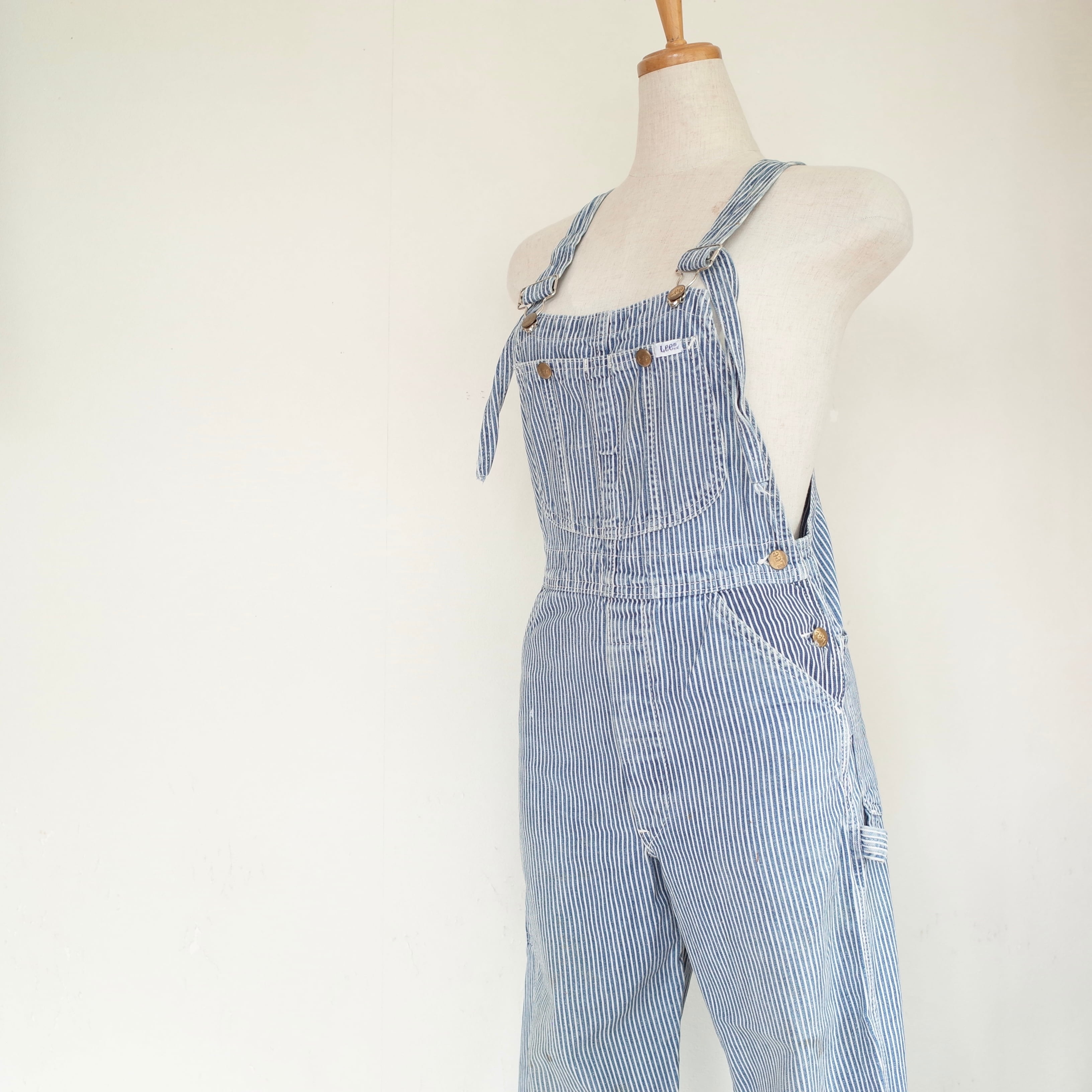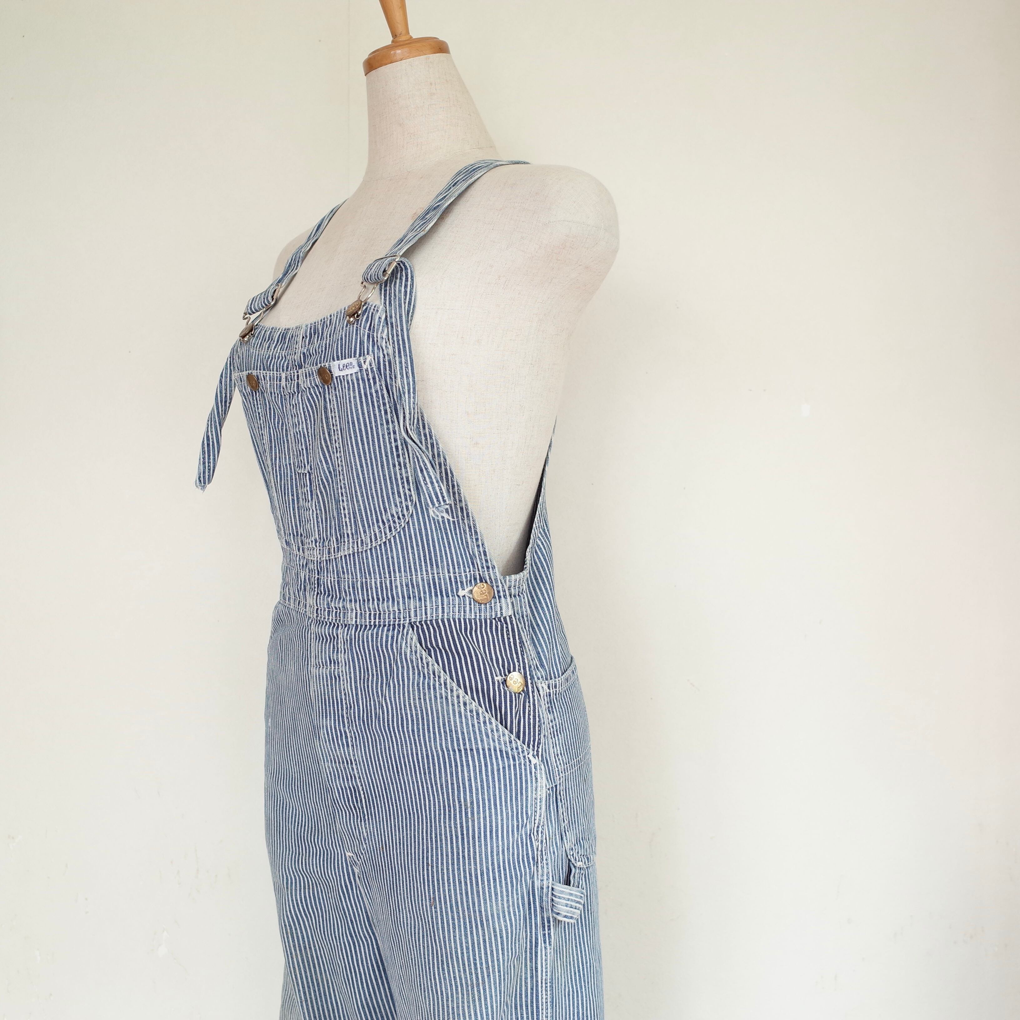 アメリカ製Leeのオーバーオール。ヒッコリーです。やぼったくならない小さめグッドサイズ。ブラウスを合わせたり、ジャケットを羽織ったり。大人のオーバーオールスタイルを楽しんで頂ける一着です。丈が長い為、ロールアップや丈詰めをしてご着用ください。