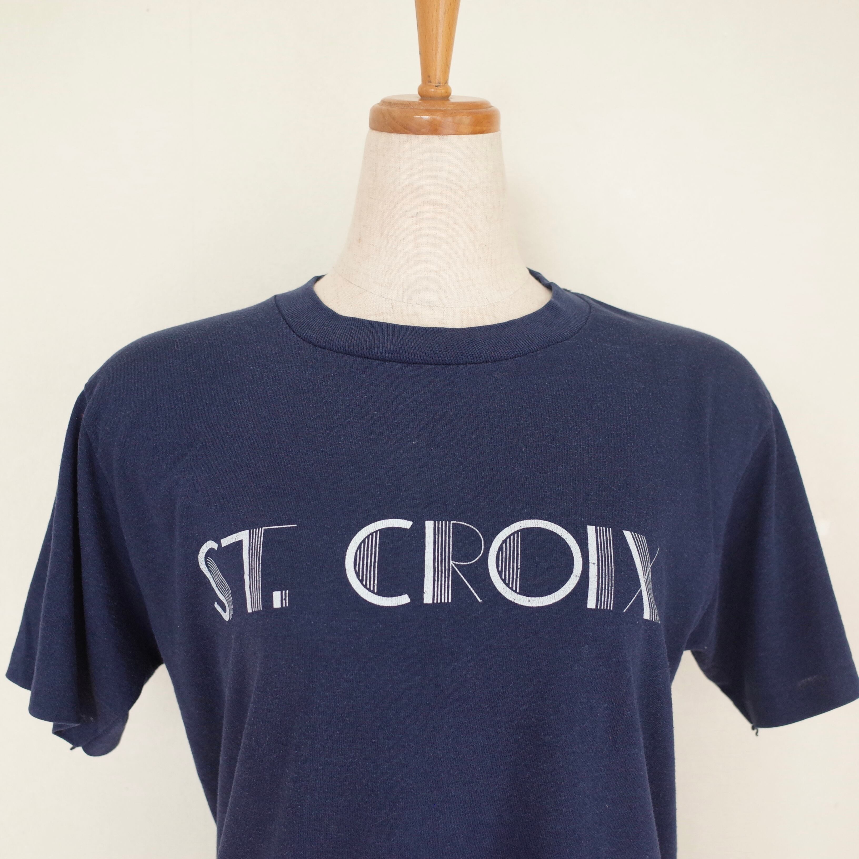80年代アメリカ製のプリントTシャツ。ボディはsports wearです。ネイビー地に、ホワイトの"ST.CROIX"の字体がかっこいい一枚。コーディネートに取り入れやすいデザインのヴィンテージTシャツです。