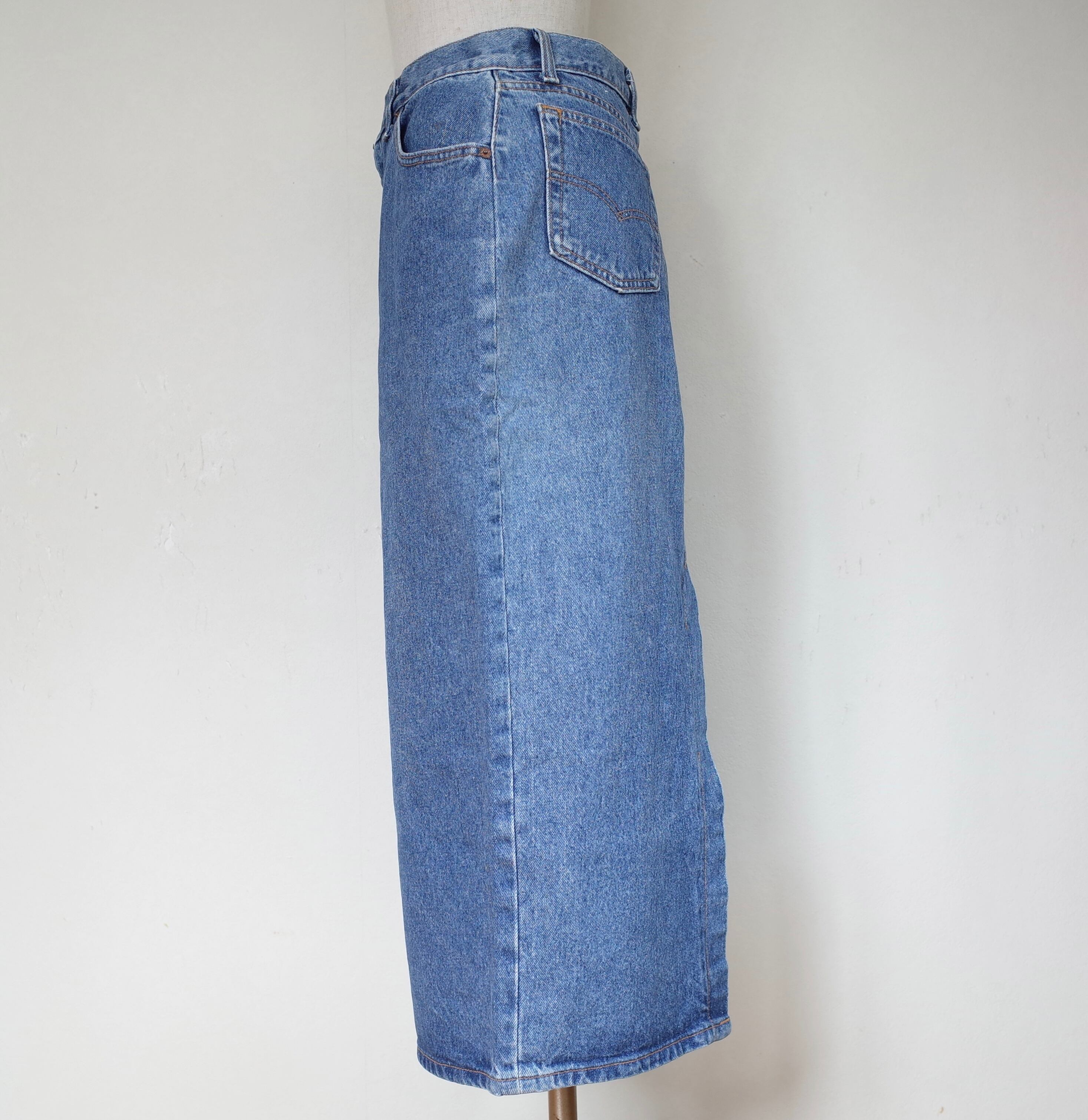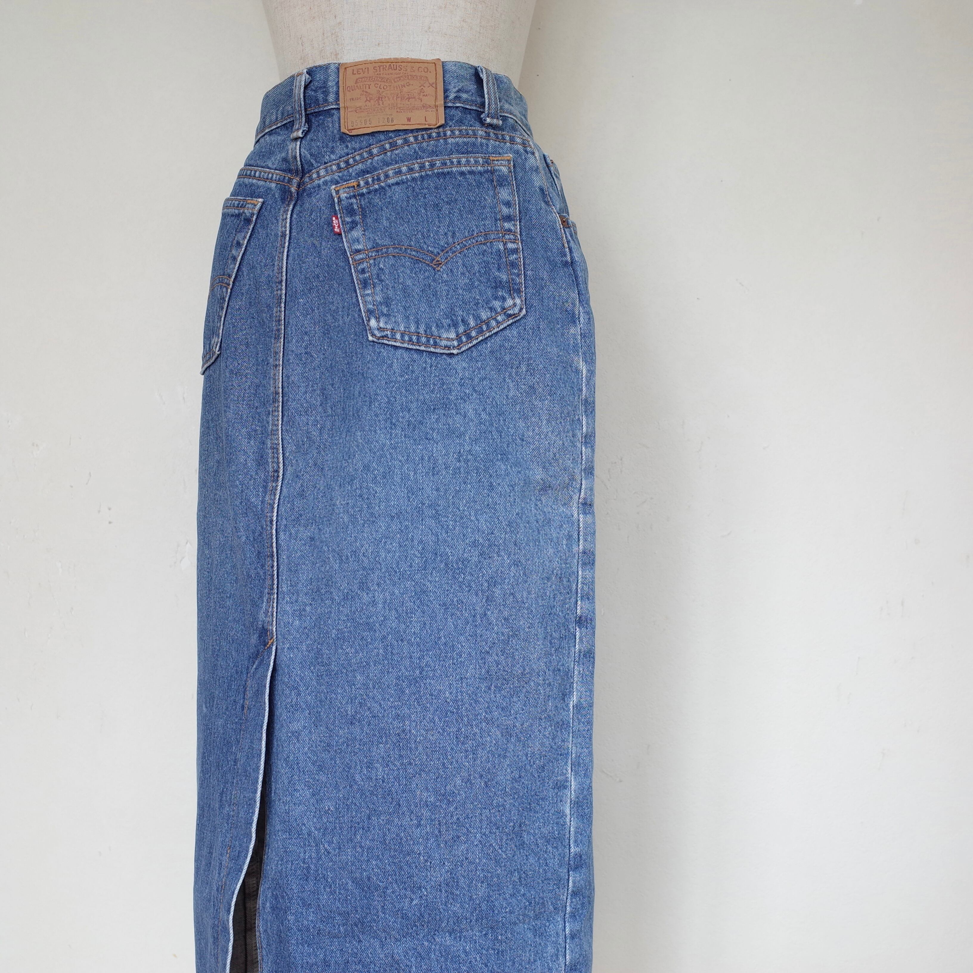90年代アメリカ製Levi'sのデニムスカートです。通年通して使い勝手のいいロング丈です。