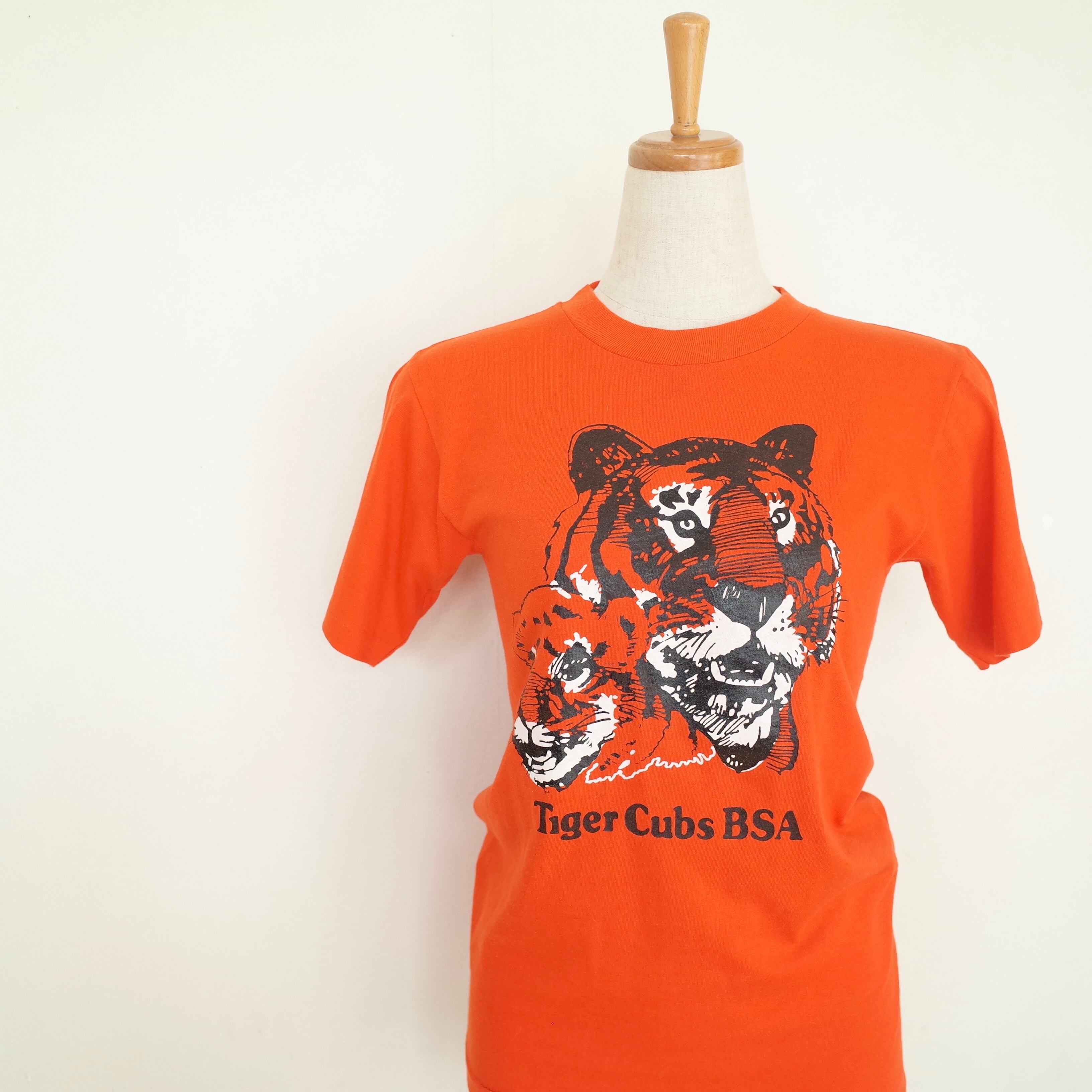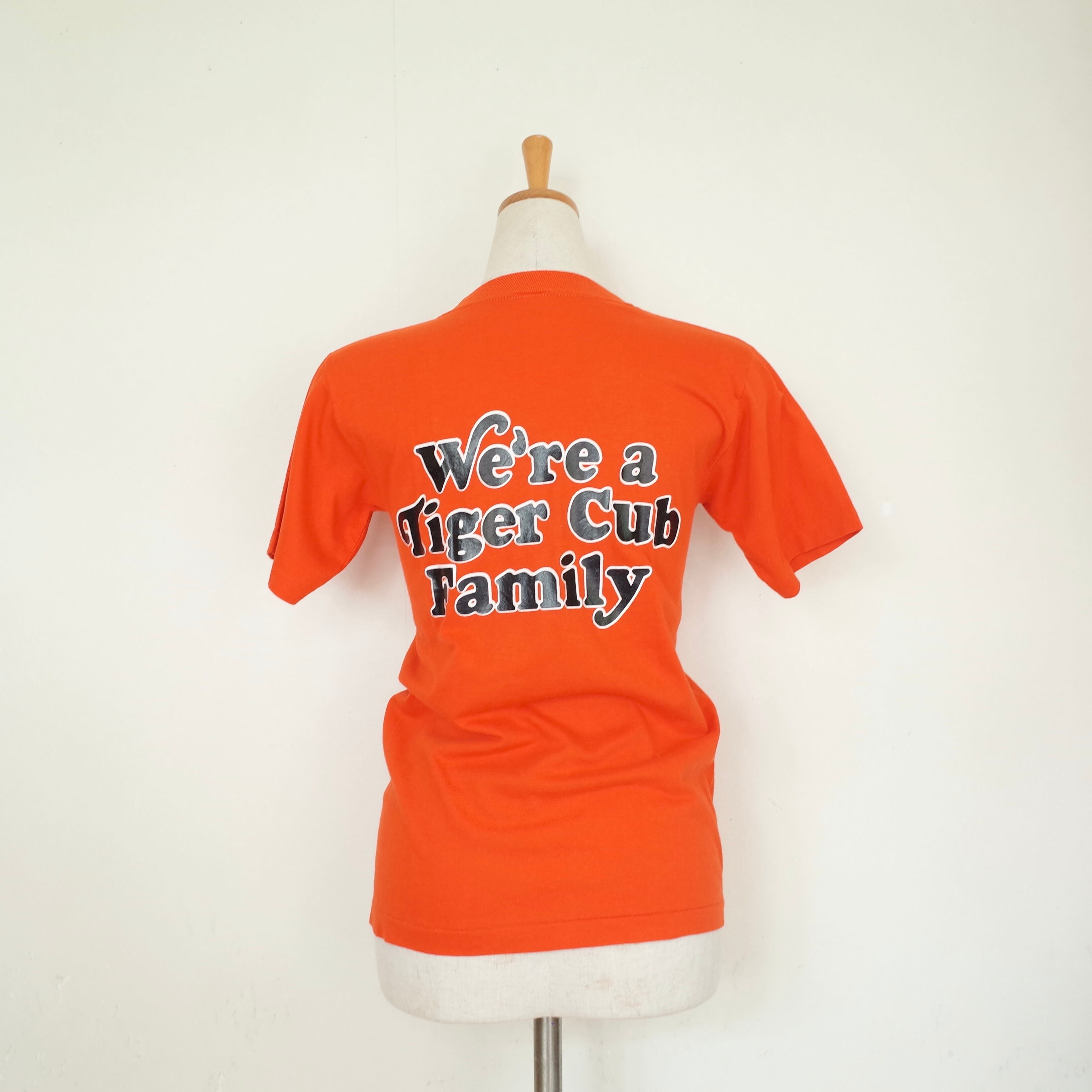 70〜80年代アメリカ製sportswearのTシャツ。フロントに大きくプリントされたタイガーとバックプリントの字体がかわいい一枚。コンディションもgoodなTシャツです。