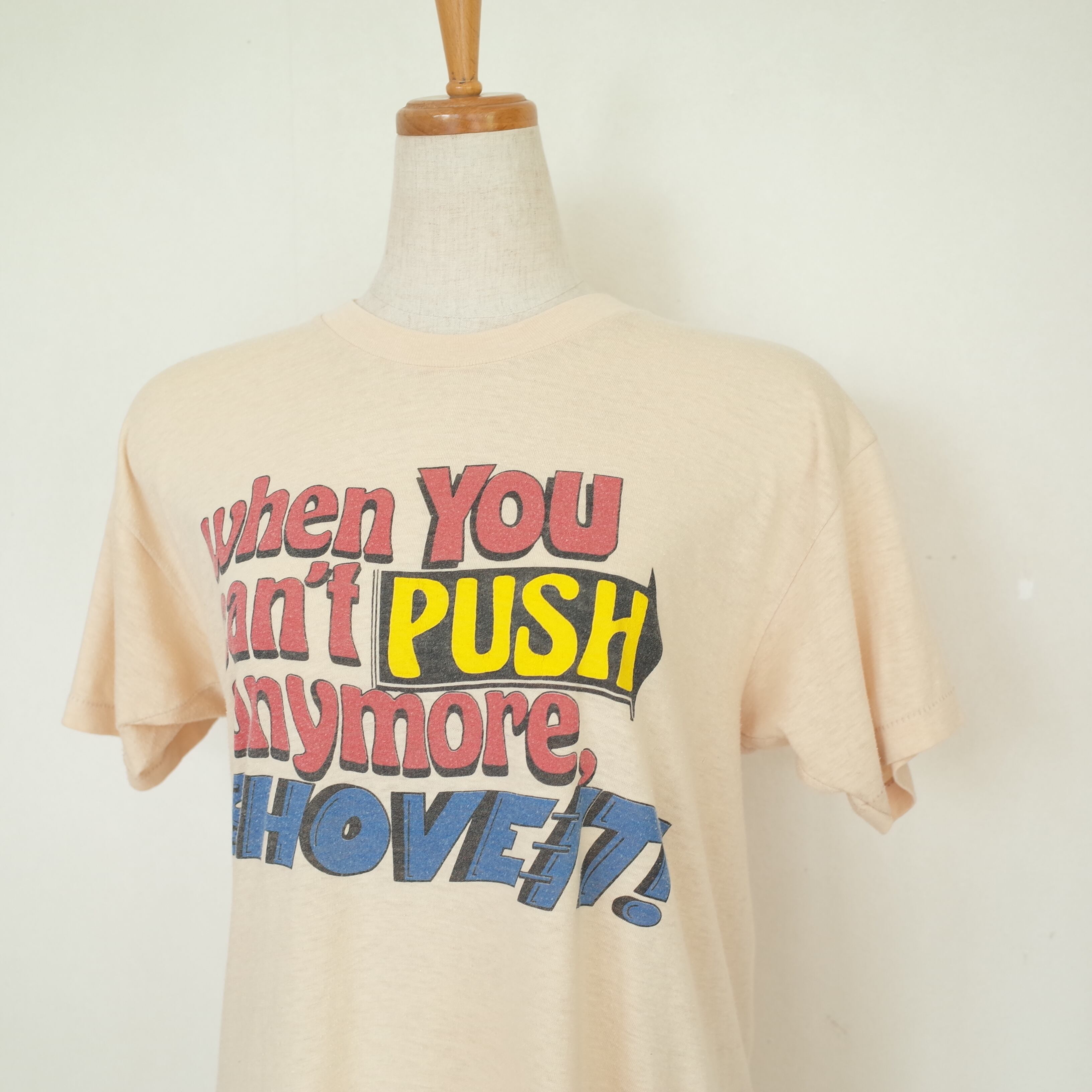 80年代アメリカ製5050ボディのプリントTシャツ。テキストプリントの字体とカラーリングがかわいい一枚。
