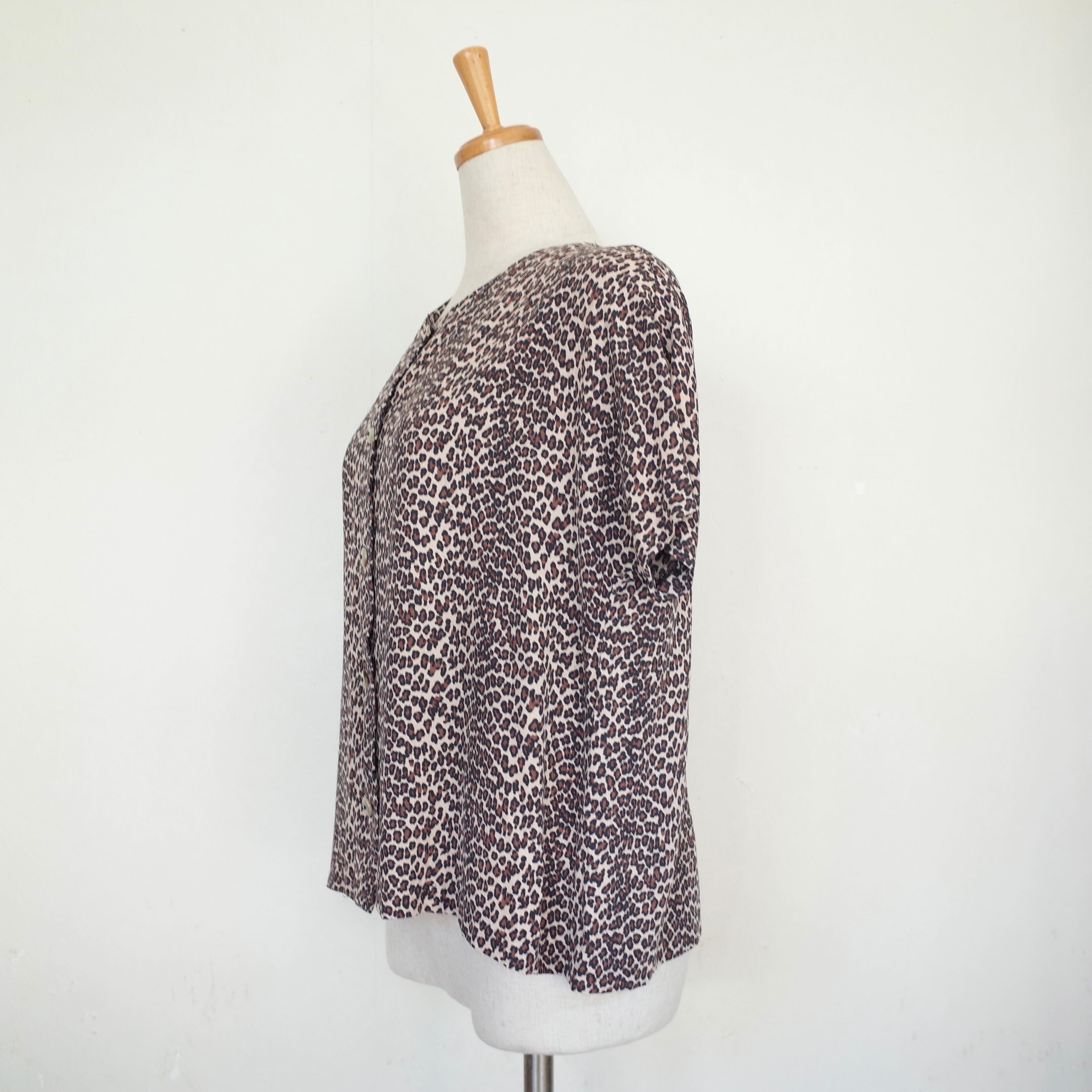 アメリカ製のレオパード柄ノーカラーブラウス。レーヨン素材でとろっとした質感。コーディネートのポイントとしても取り入れやすい一枚です。